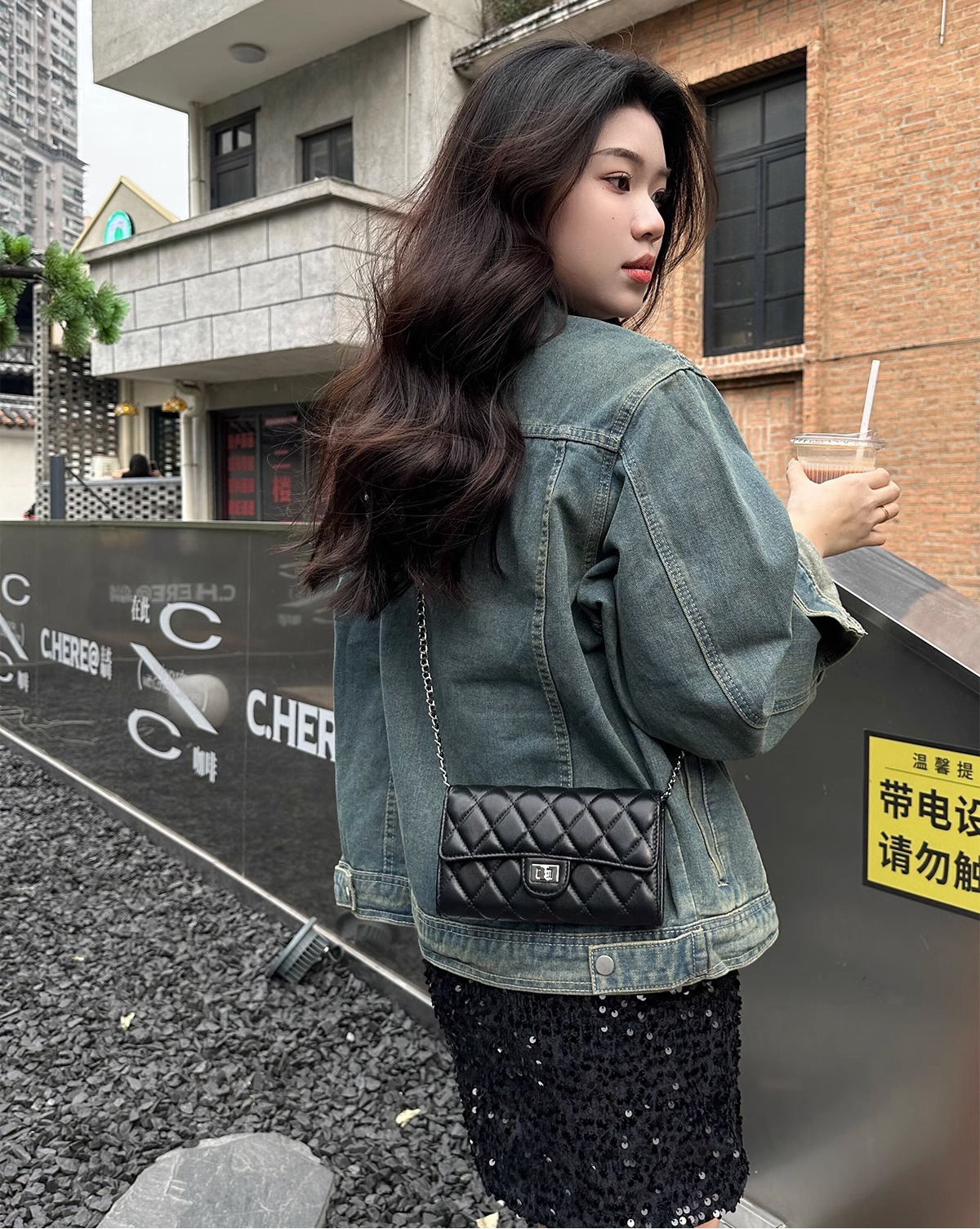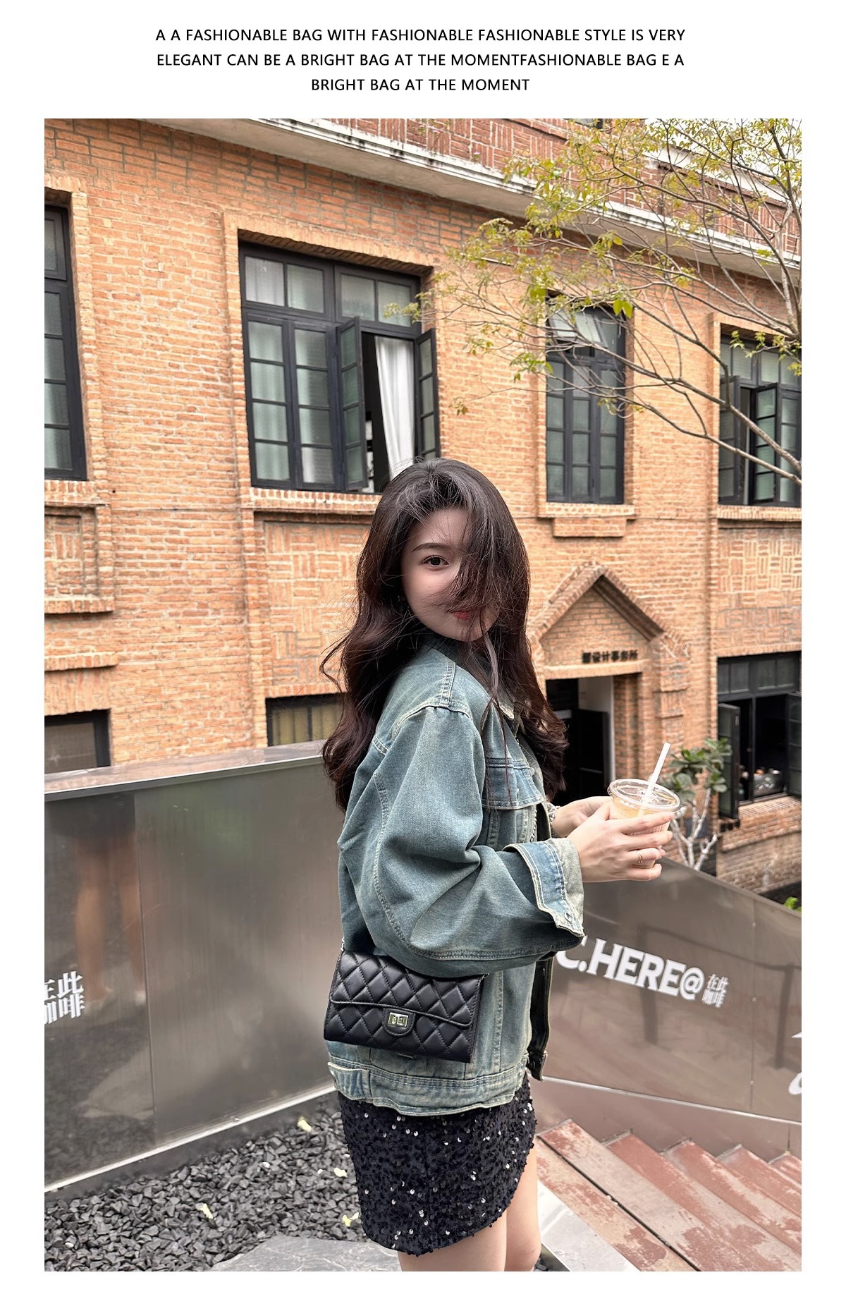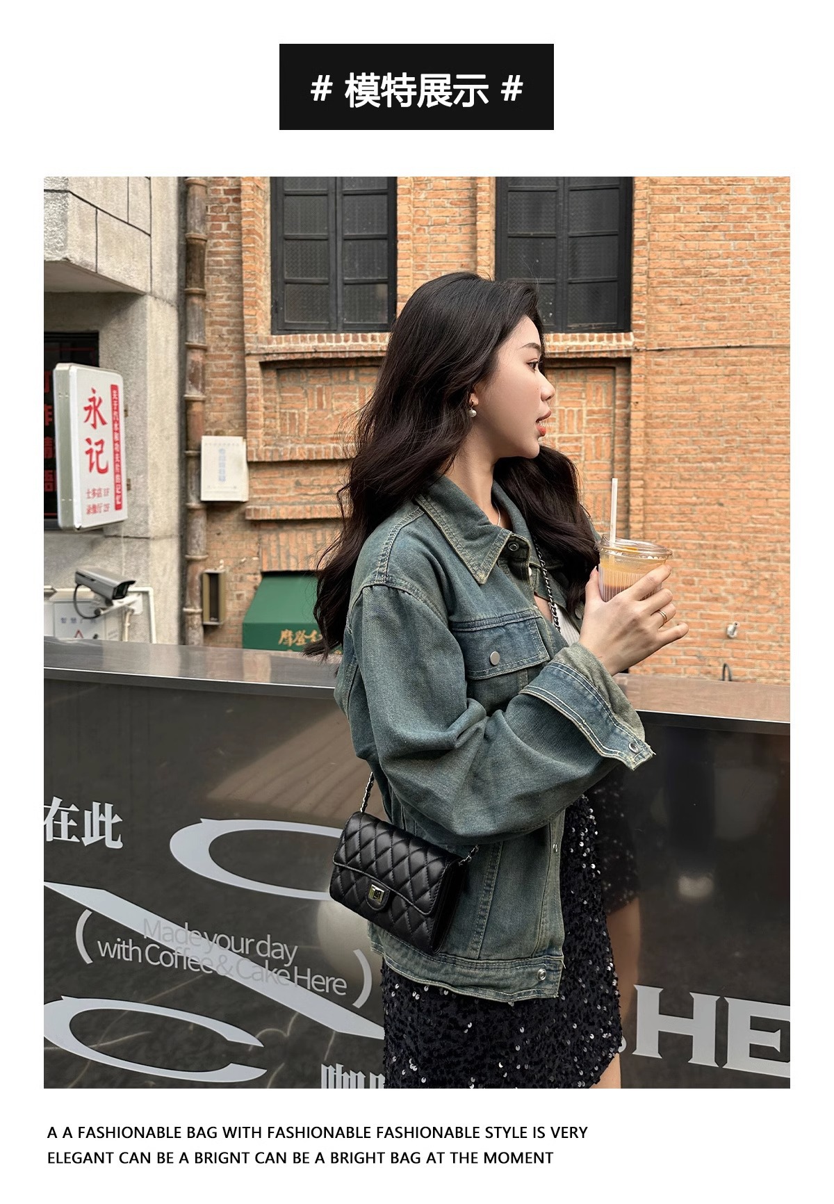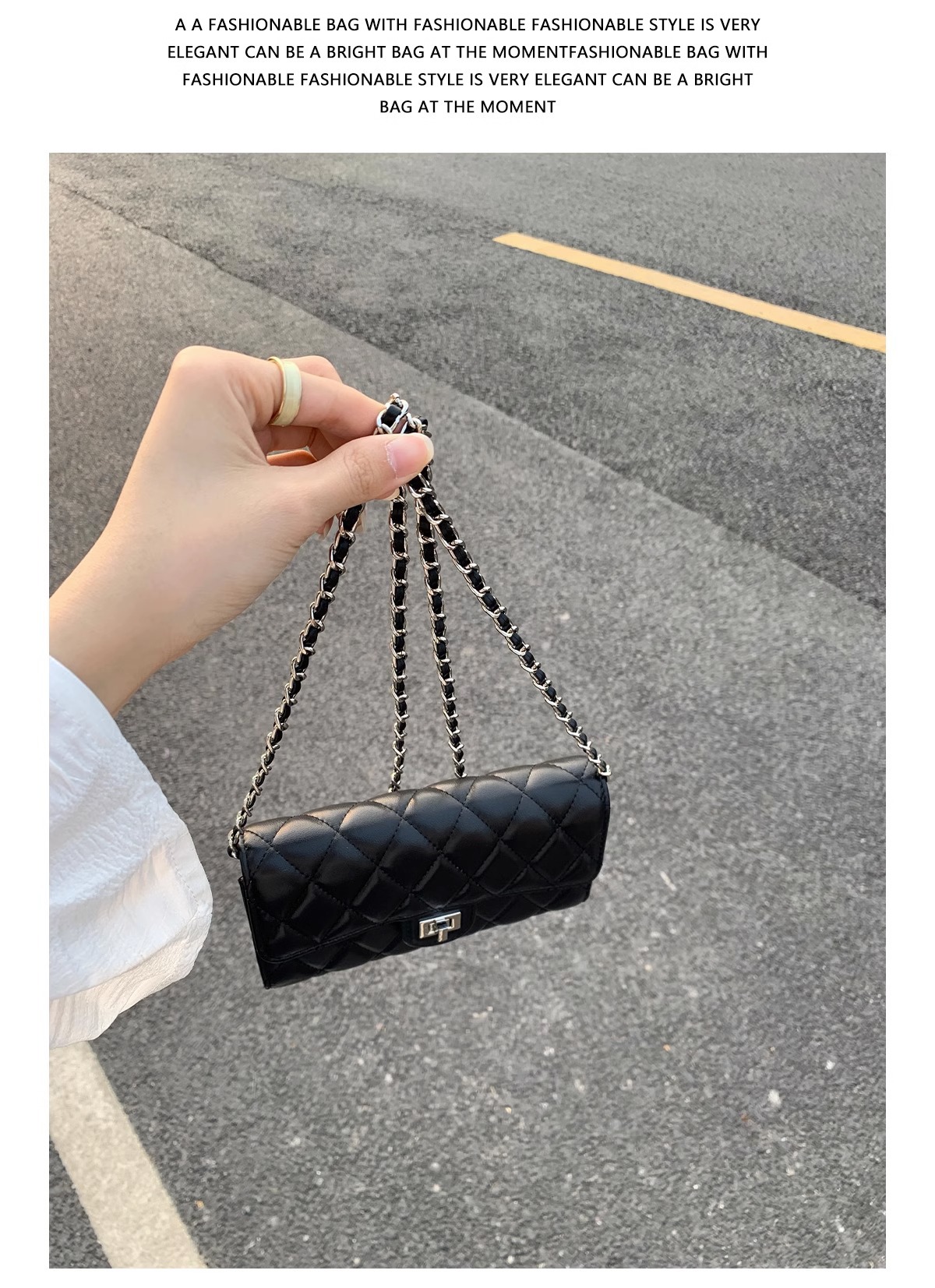大牌品牌 小香风零钱包迷你小方包黑色手机包单肩斜挎菱格链条包
