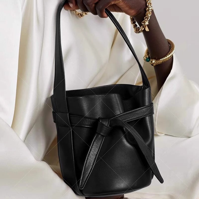 大牌女包蝴蝶结水桶包抽绳手提包打结束口简约通勤大容量托特包
