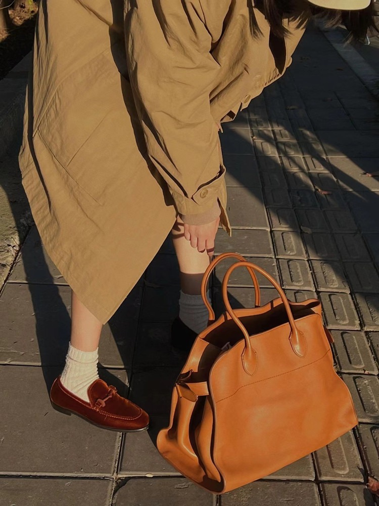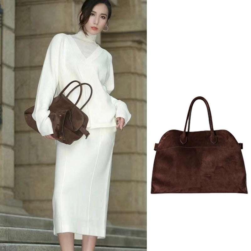 大牌The*Ro手提包真皮大容量通勤包牛皮麂皮董洁同款大牌品牌包批