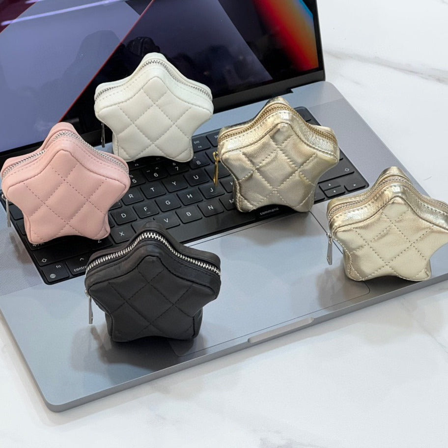 头层牛皮星星配饰包腰包链条包挂饰装饰真皮银色小包包单肩斜挎包