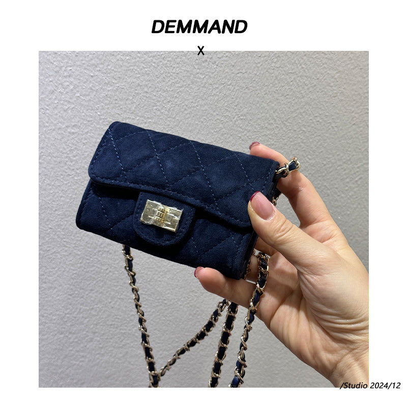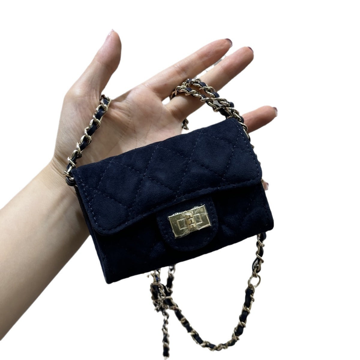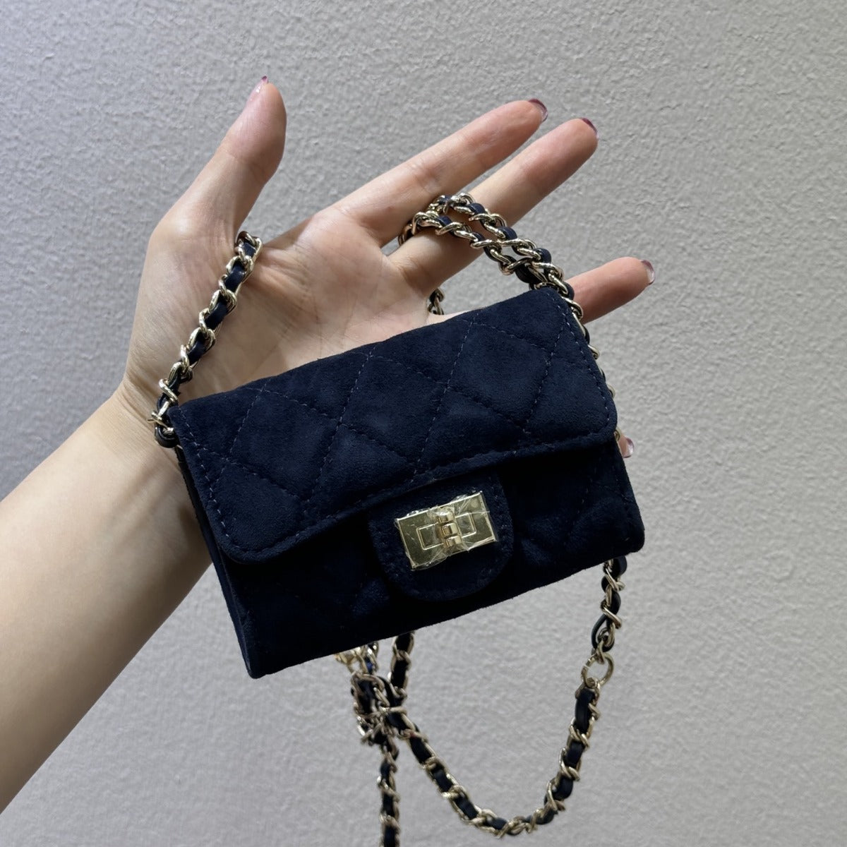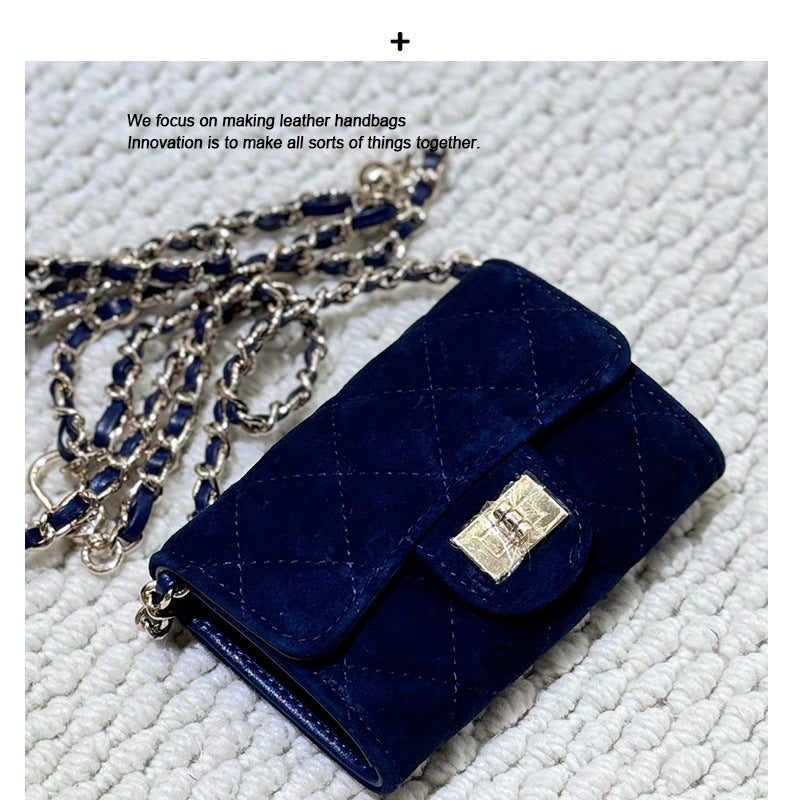头层牛皮磨砂mini小方包卡包钱包腰包多功能菱格链条包迷你口红包