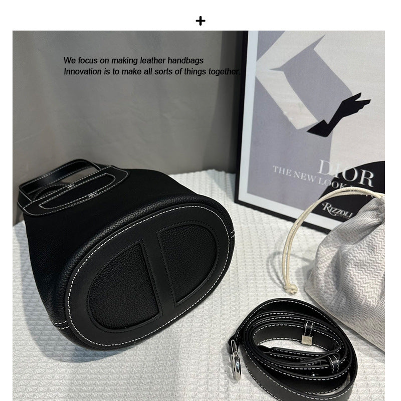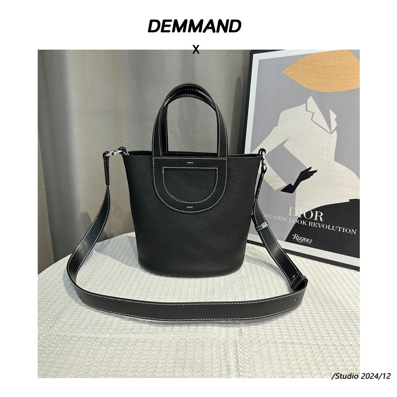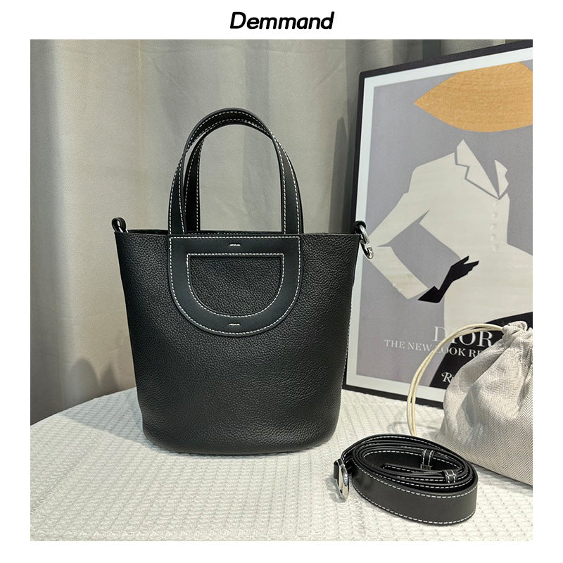 头层牛皮菜篮子手提包宽肩带包包女包高级简约百搭感单肩斜挎包