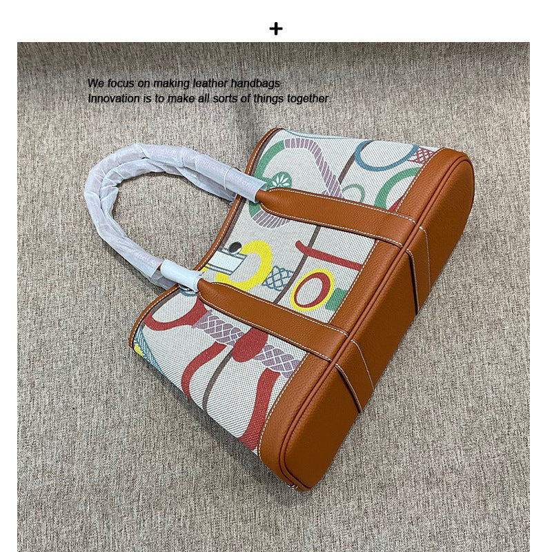 女包彩色腋下菜篮子牛皮拼帆布托特大容量撞色单肩双肩斜挎花园