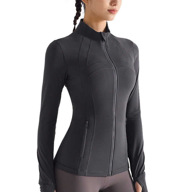 女士运动夹克立领拉链健身服饰跑步修身磨毛裸感lulu瑜伽服外套