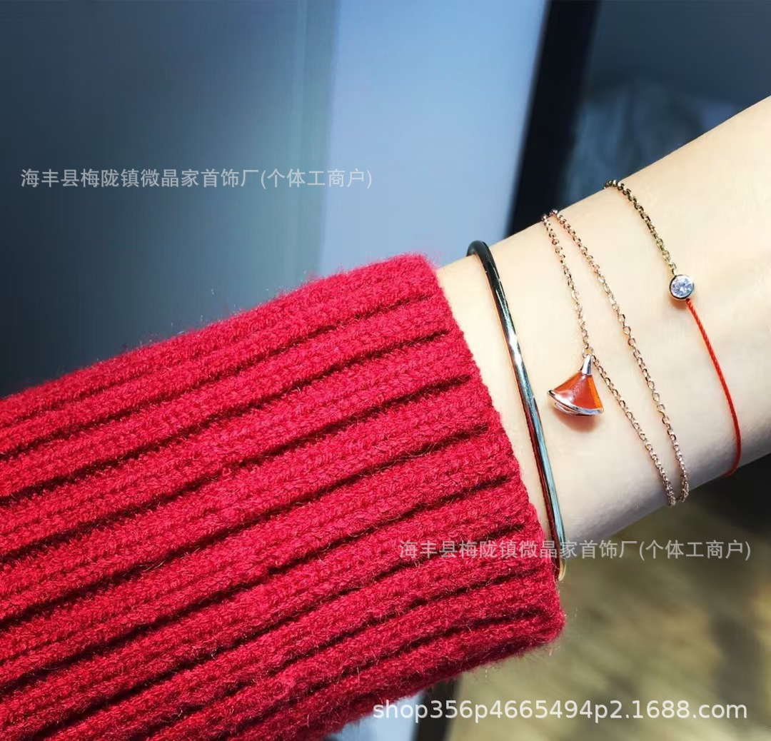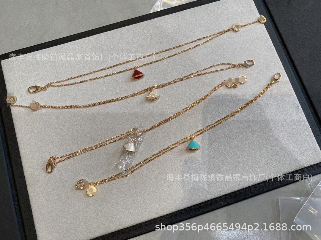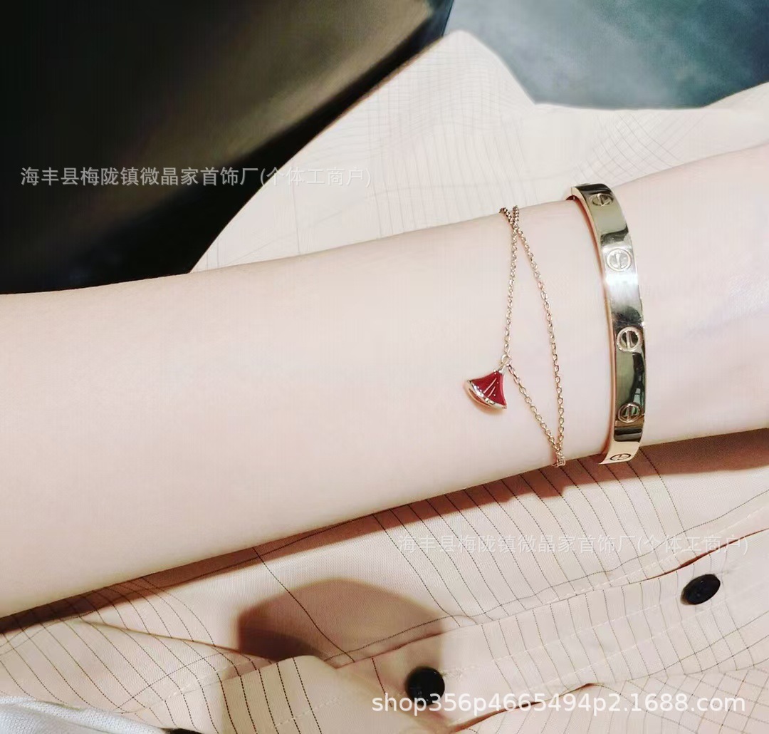 宝家扇子手链精工版裙子手链厚金电镀18k双链天然玛瑙工厂直销