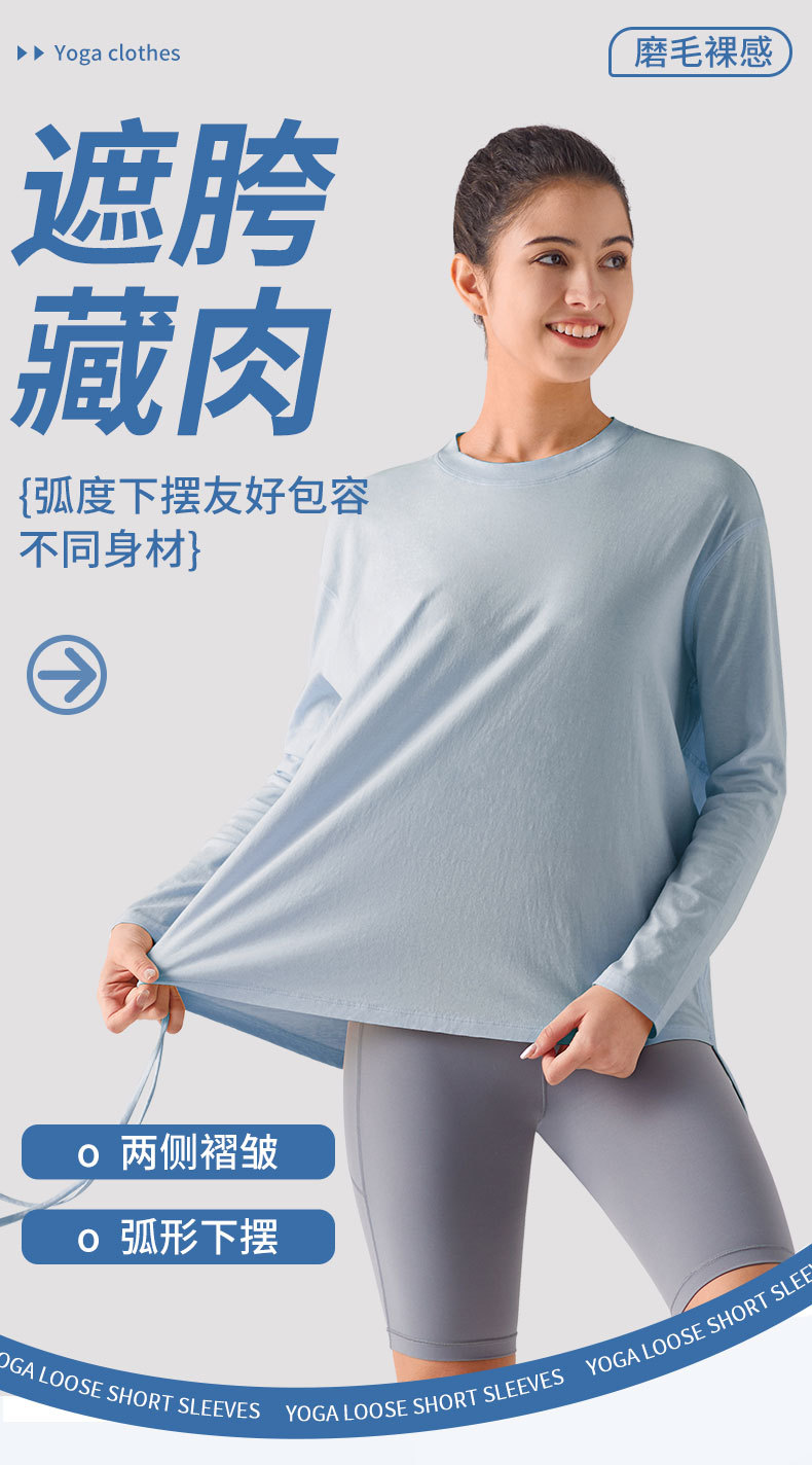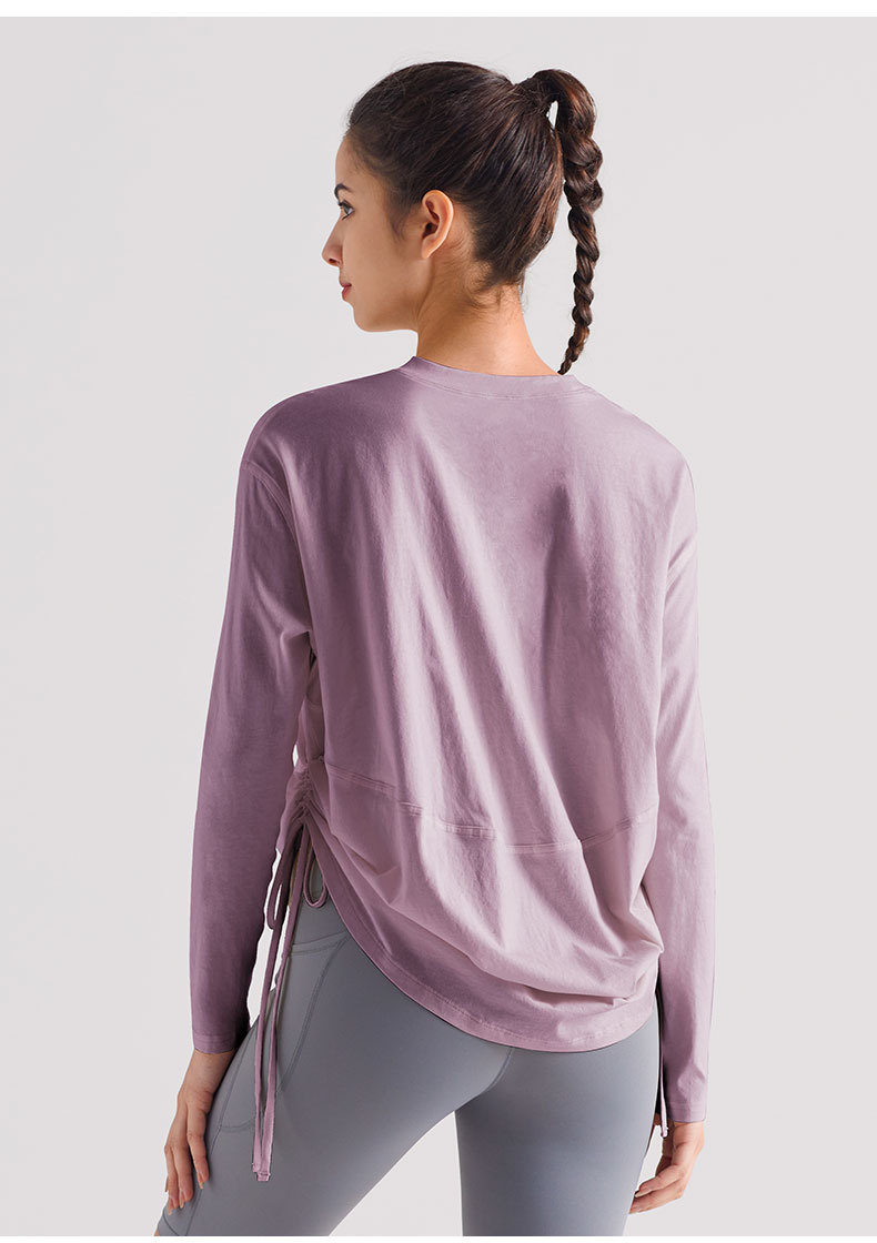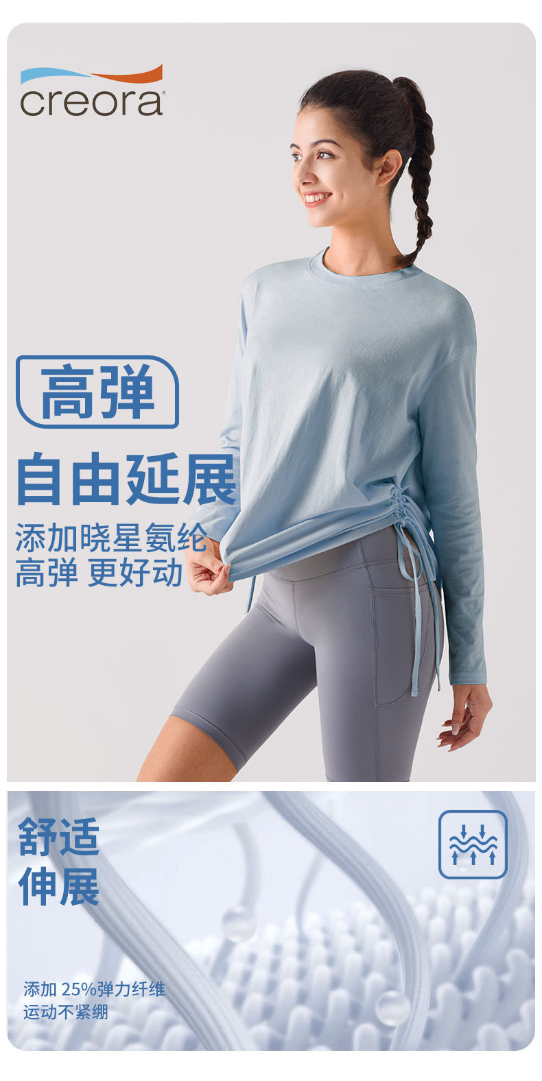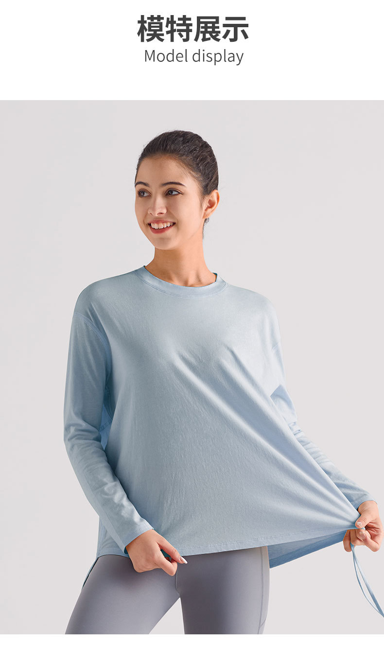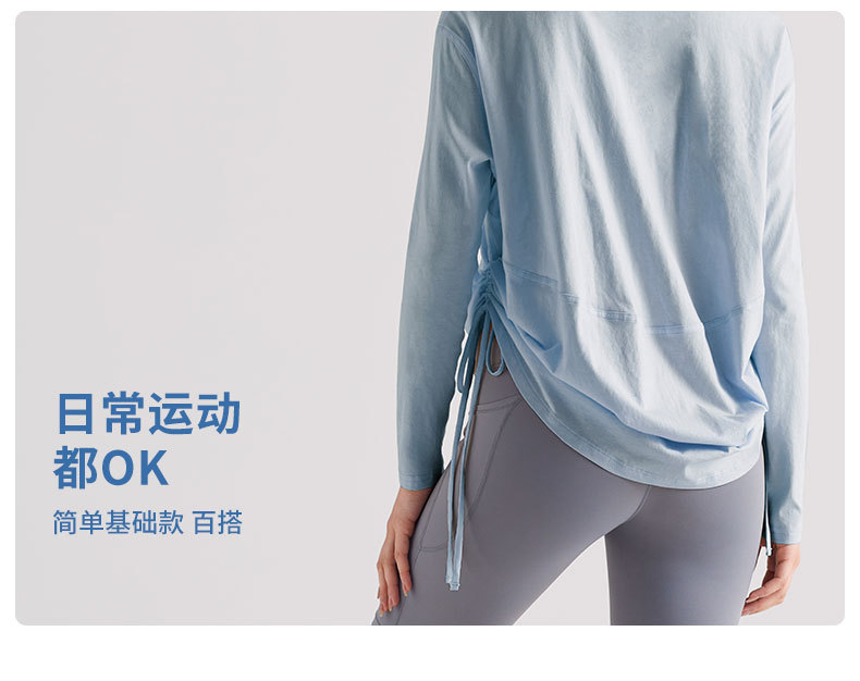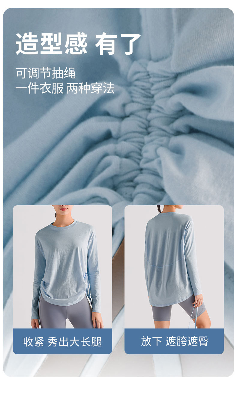 宽松抽绳运动上衣女透气速干健身T恤防晒跑步瑜伽服长袖休闲罩衫