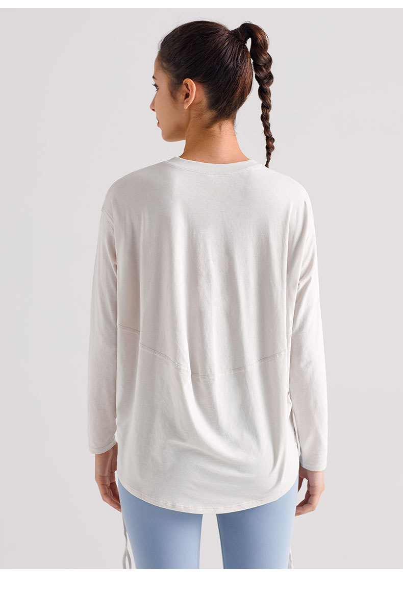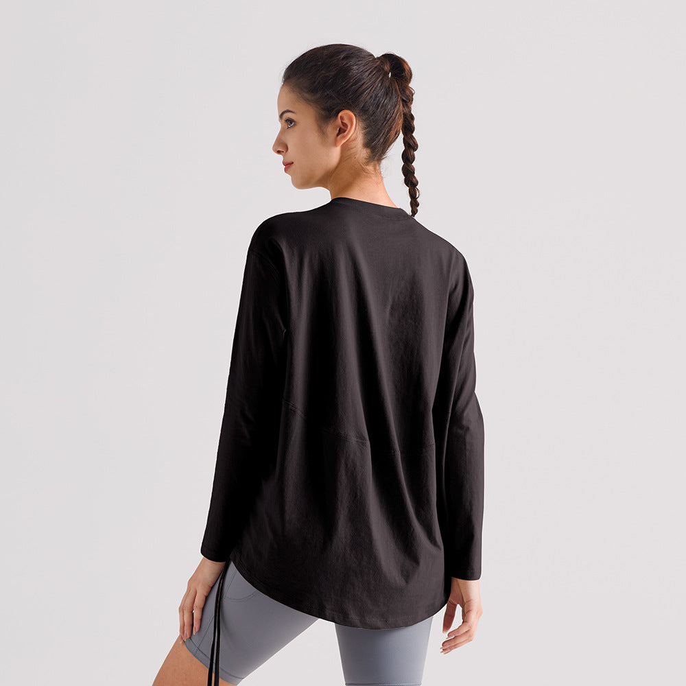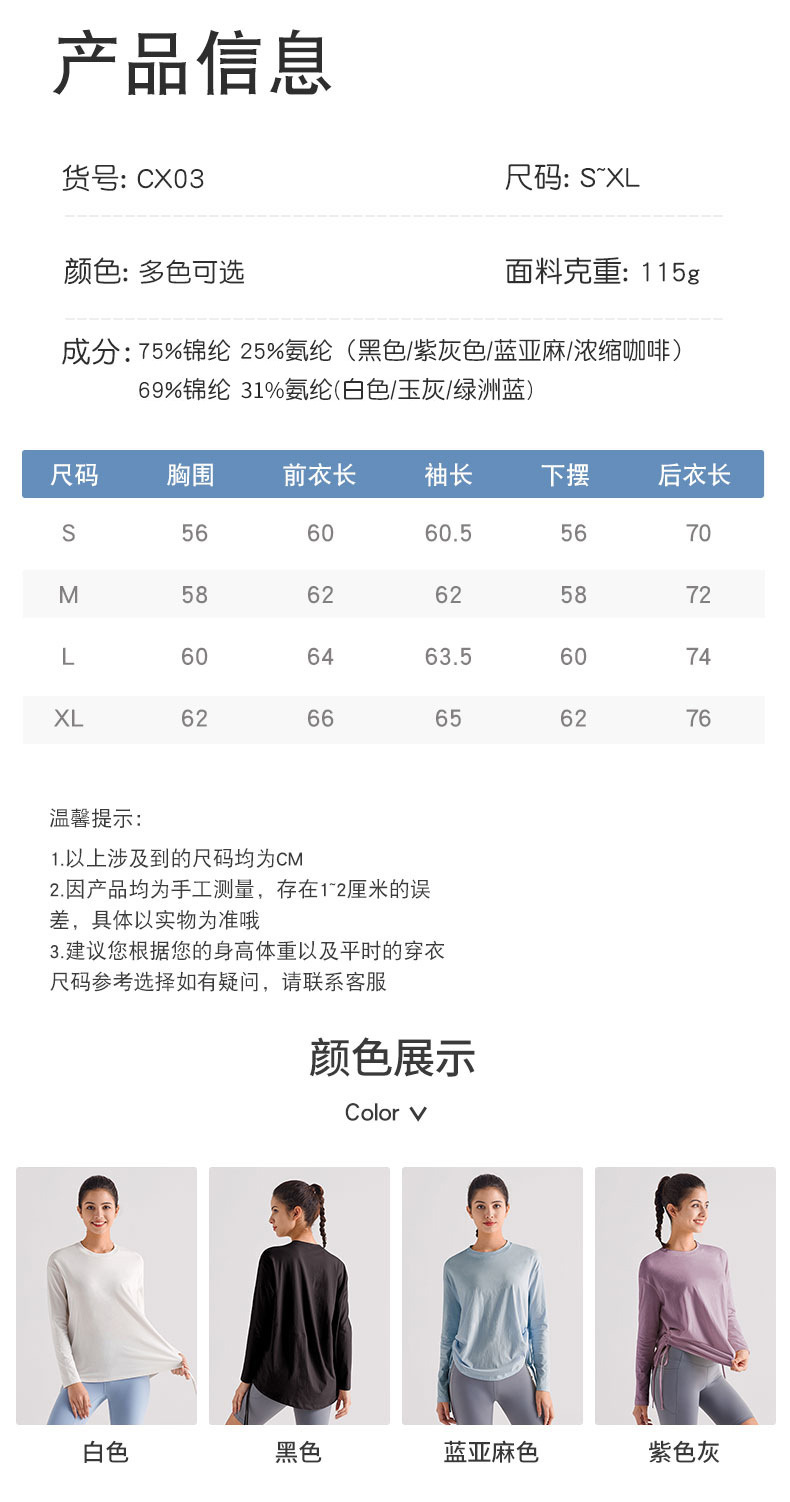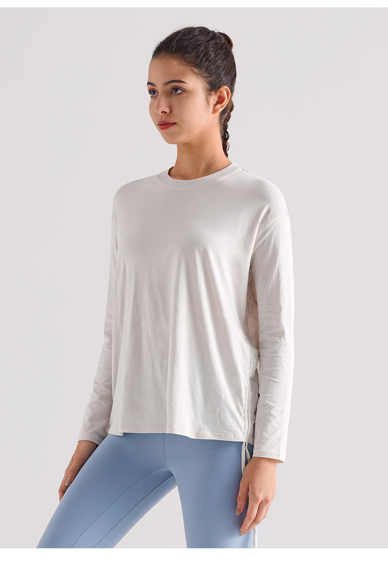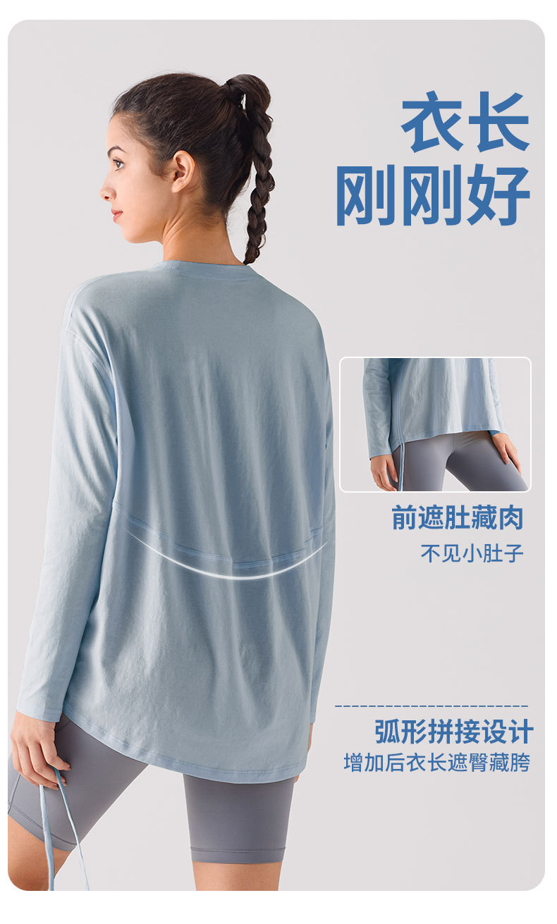 宽松抽绳运动上衣女透气速干健身T恤防晒跑步瑜伽服长袖休闲罩衫