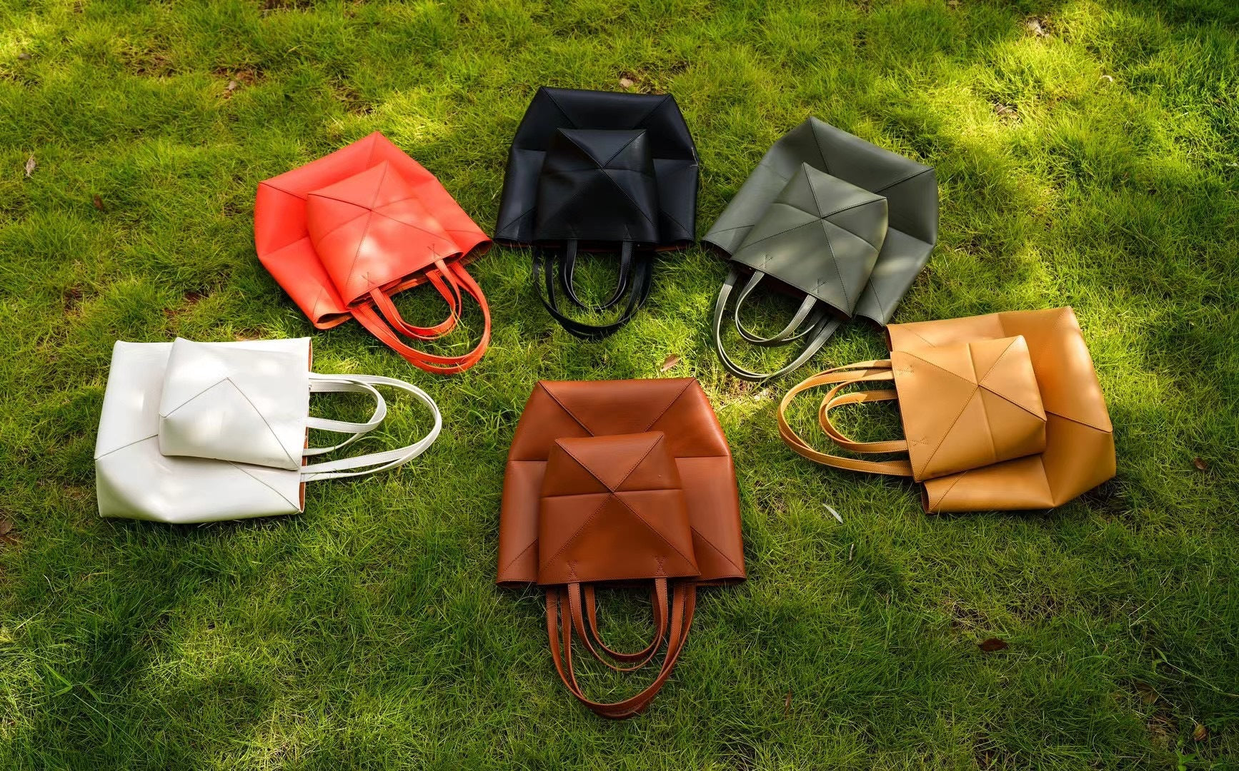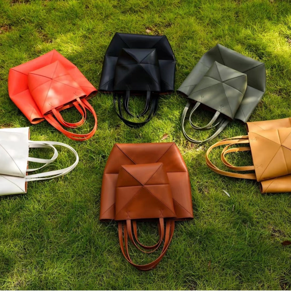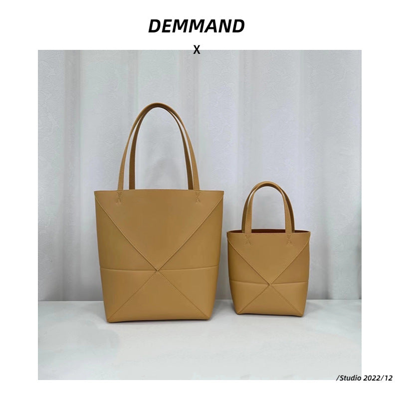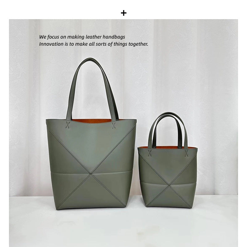 小众新款真皮折叠托特包时尚大容量简约休闲单肩斜挎手提水桶包女