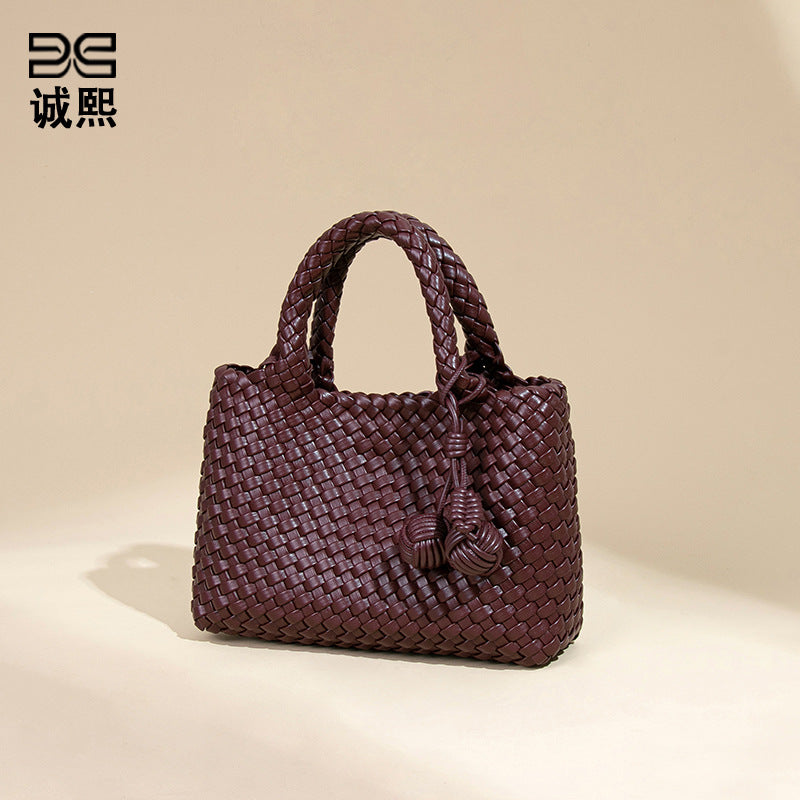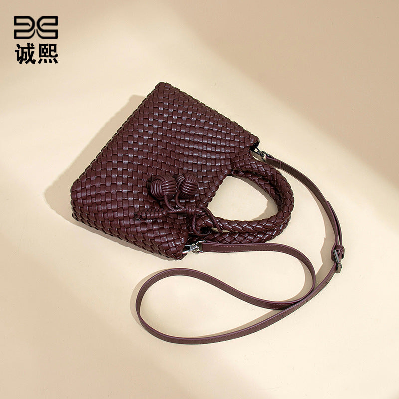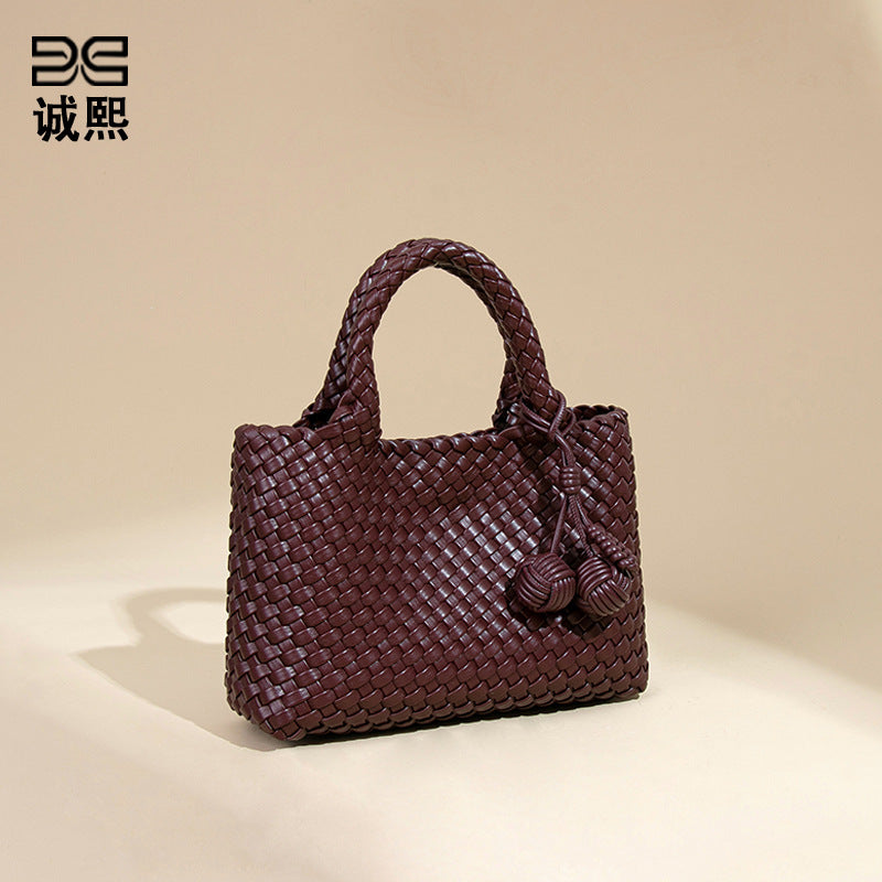 小众编织手提女包新款软皮休闲单肩斜挎包时尚百搭手拎小托特包包