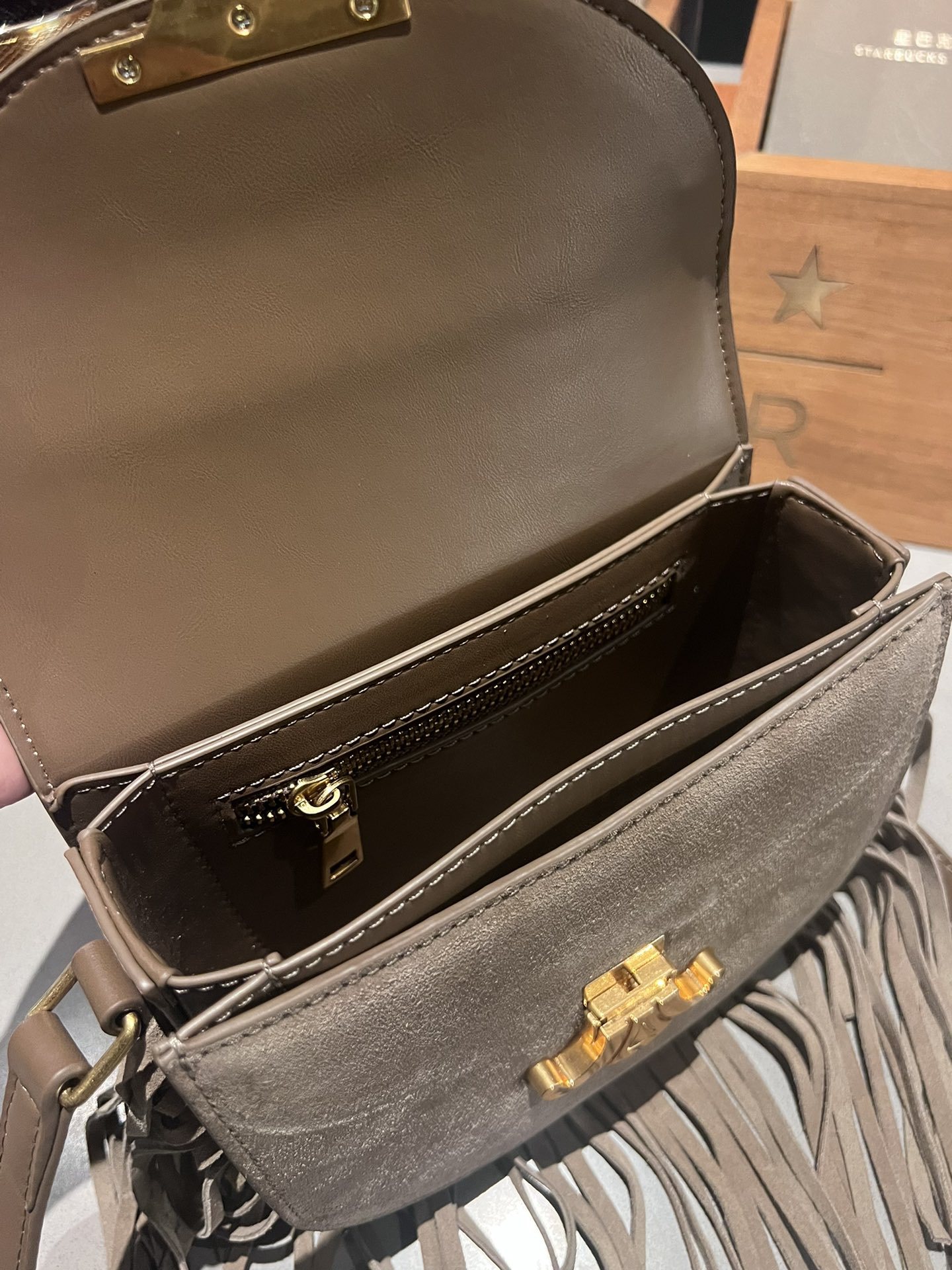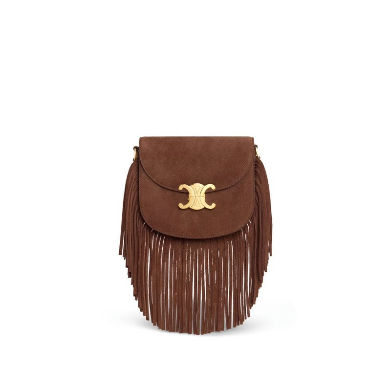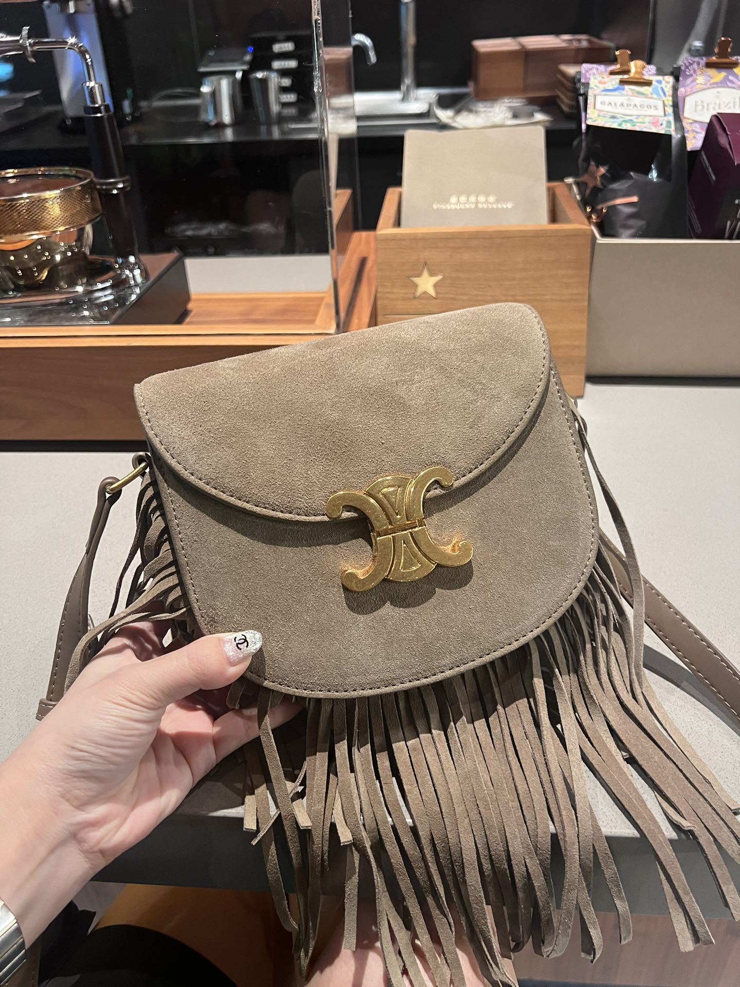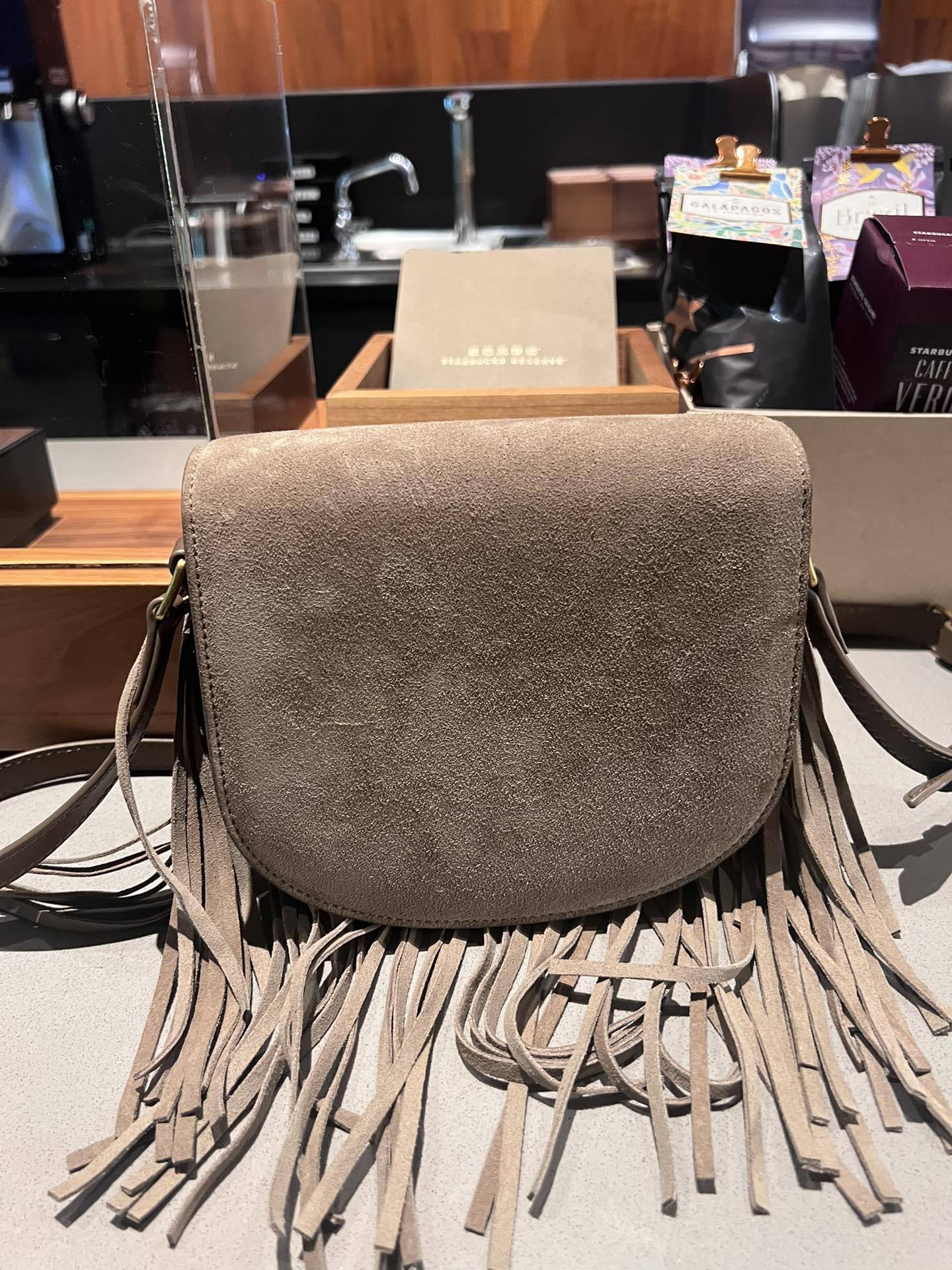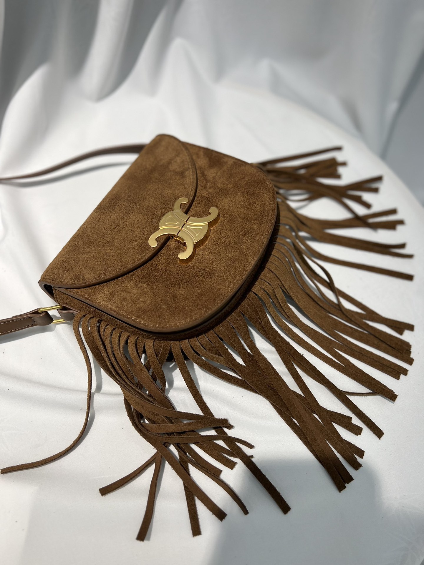 小众设计凯旋门流苏马鞍包2023新款美拉德复古麂皮绒链条斜跨小包
