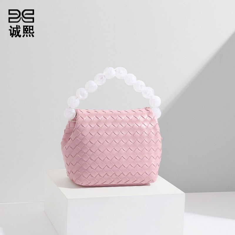 小众设计包包女小清新马卡龙色文艺淑女珍珠提把饭盒包单肩斜挎包