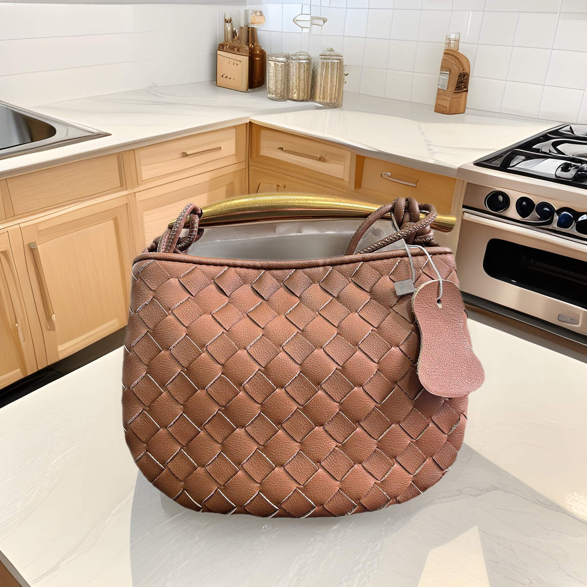 小众设计师编织新款金属手拎高级饺子包真皮牛皮休闲手提女士包包