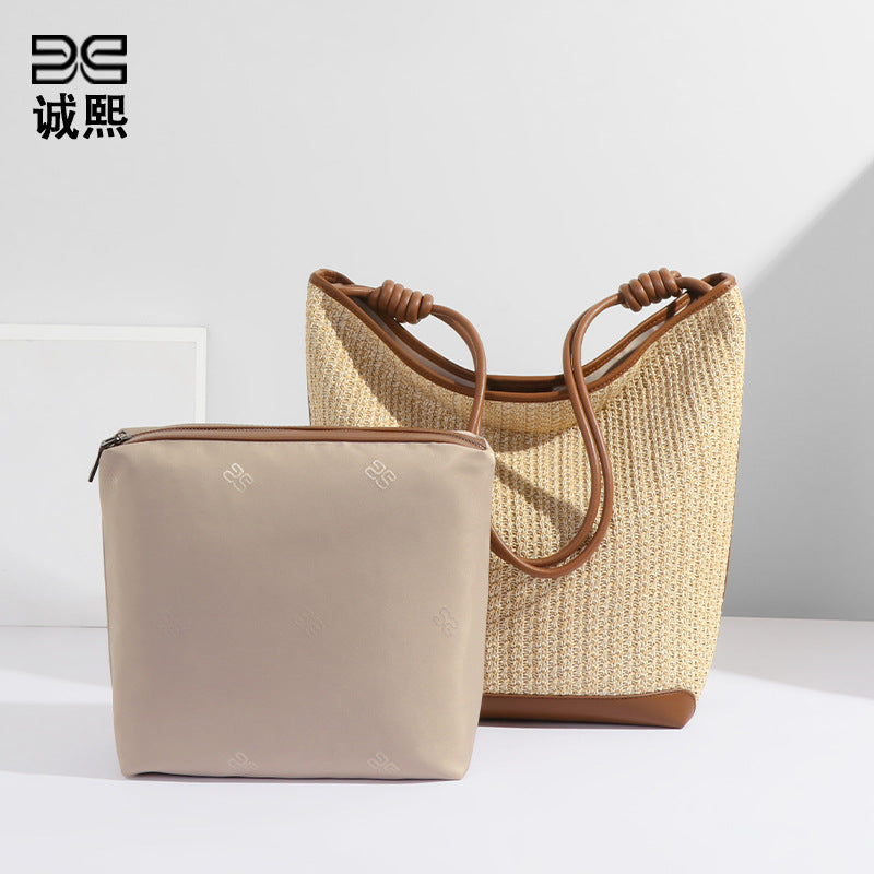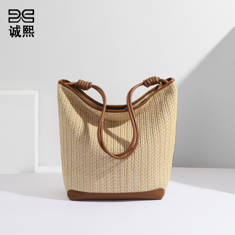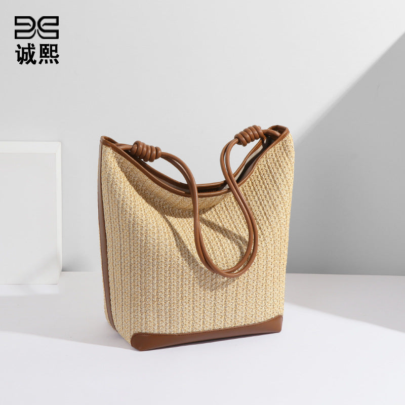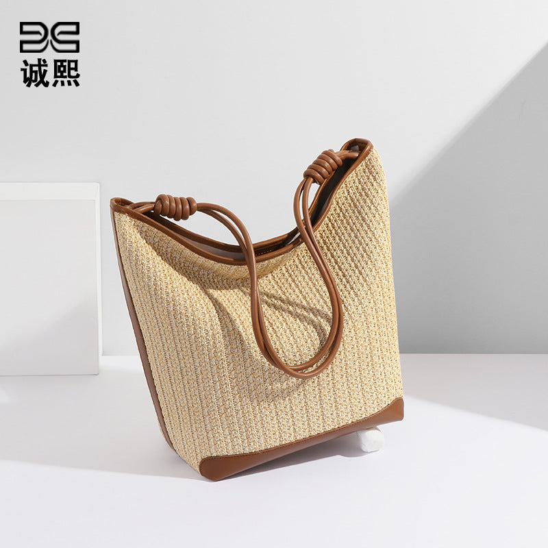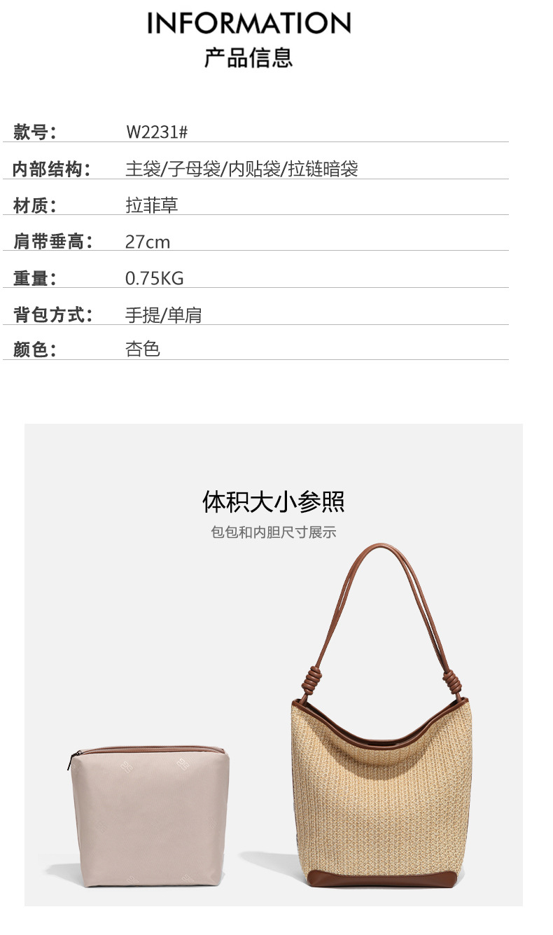小众设计新款包包女简约拉菲草旅行海边草编包沙滩包单肩包托特包