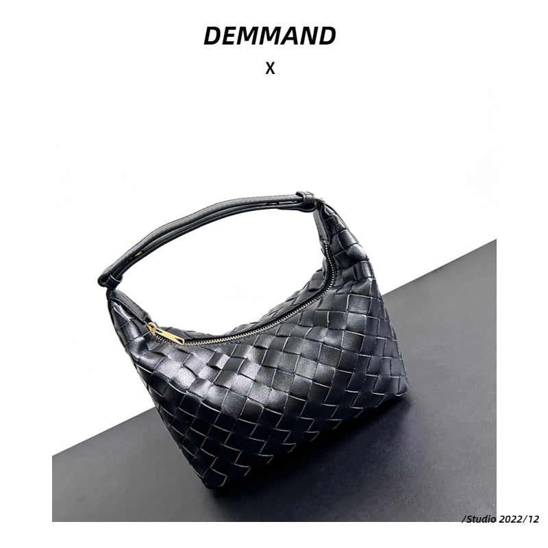 小众设计真皮编织包饭盒小包2023新款手提斜挎包高级感单肩腋下包