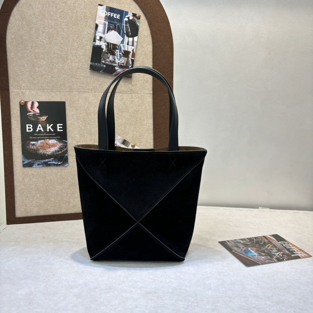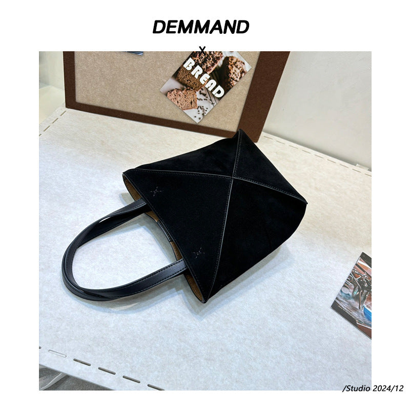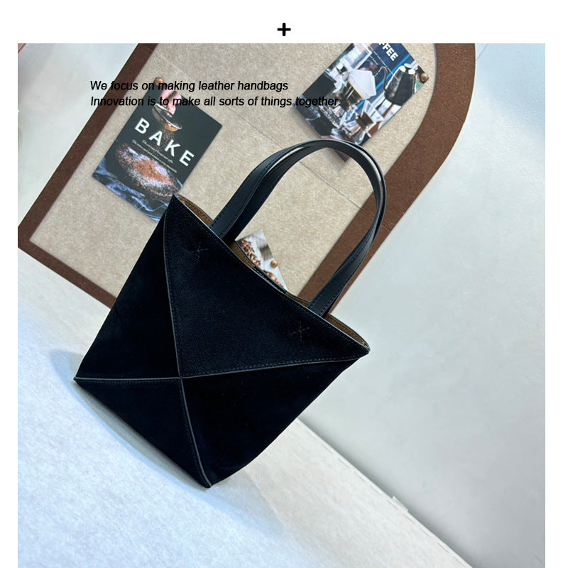 小众高级感磨砂牛皮手提包2024秋冬复古几何托特包单肩包斜挎包潮