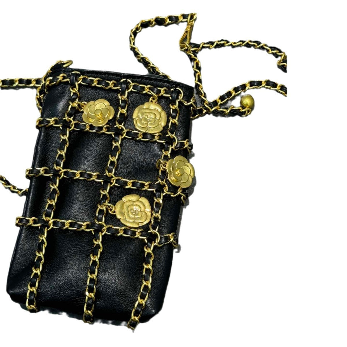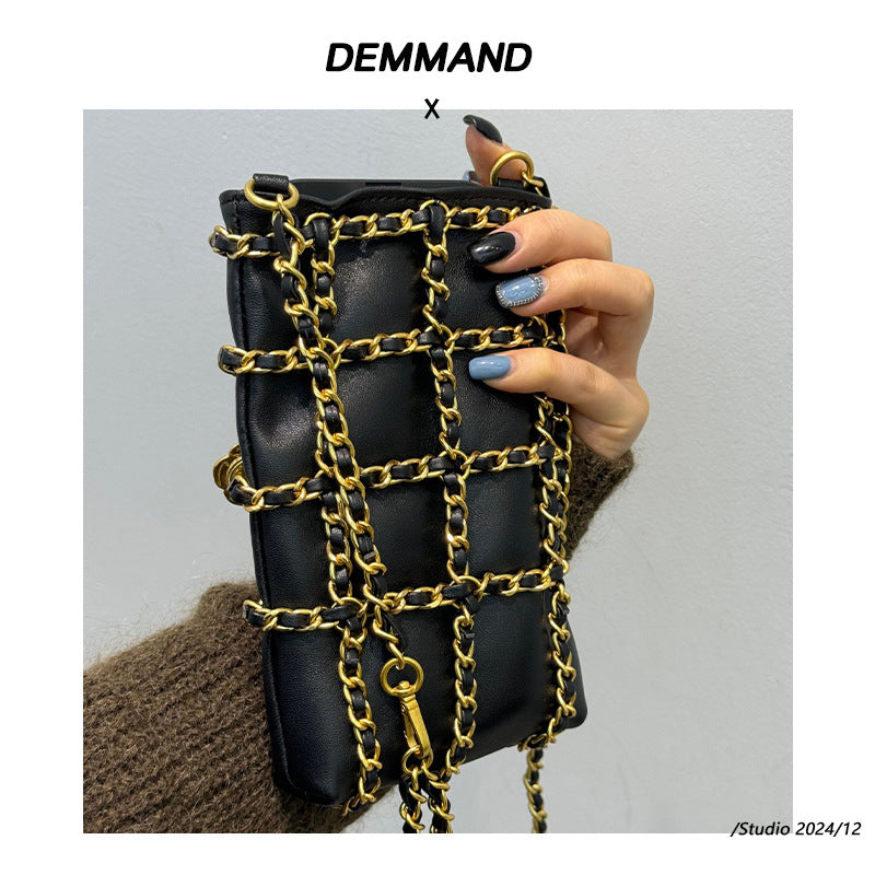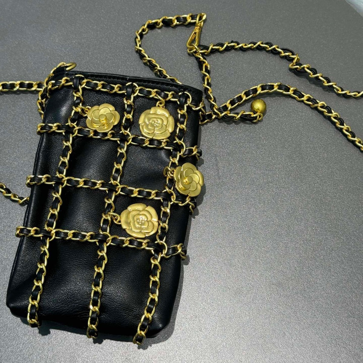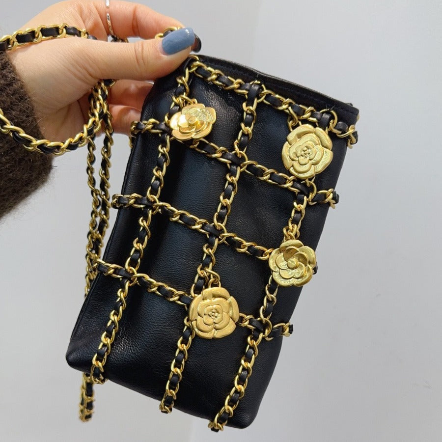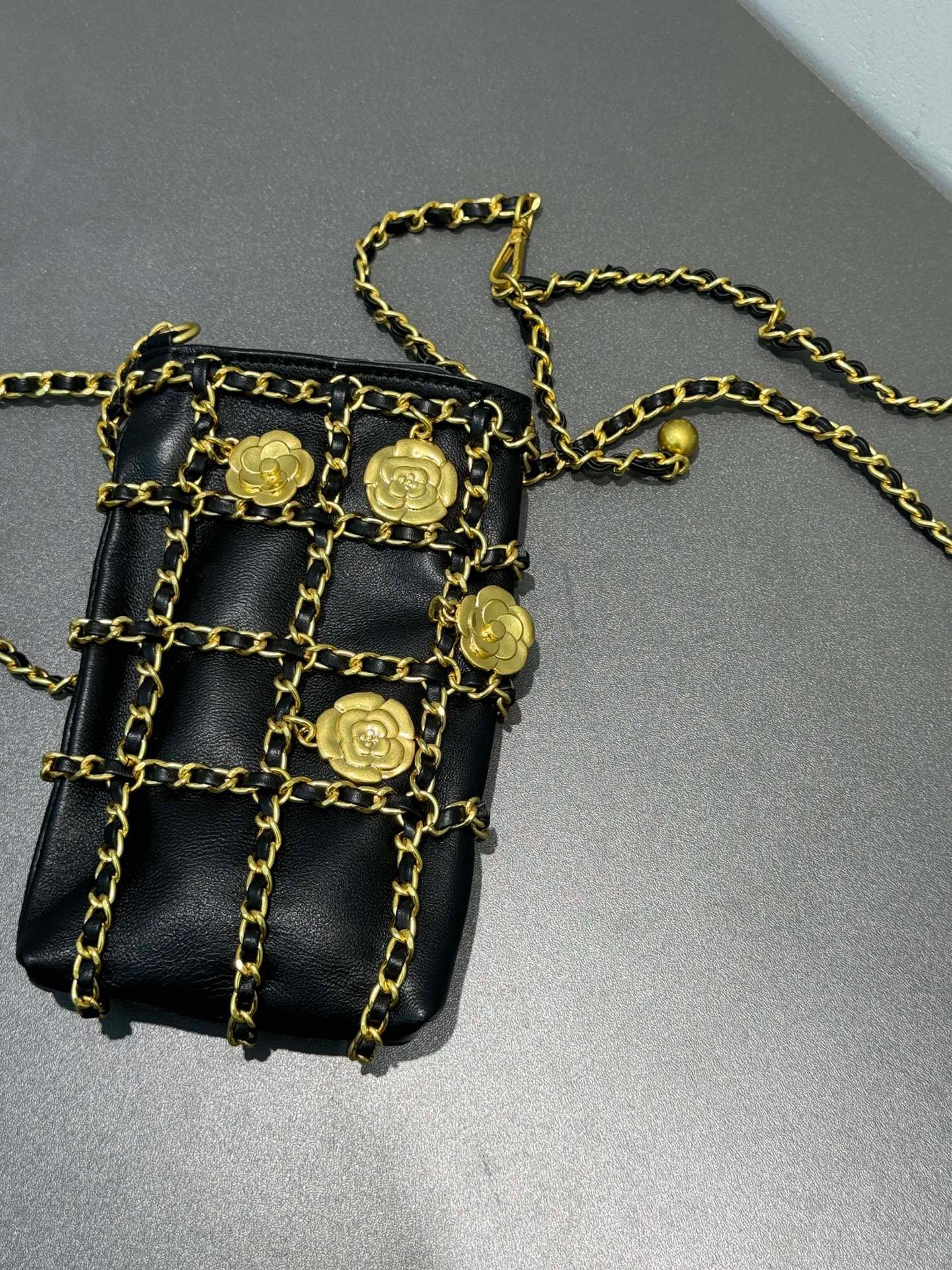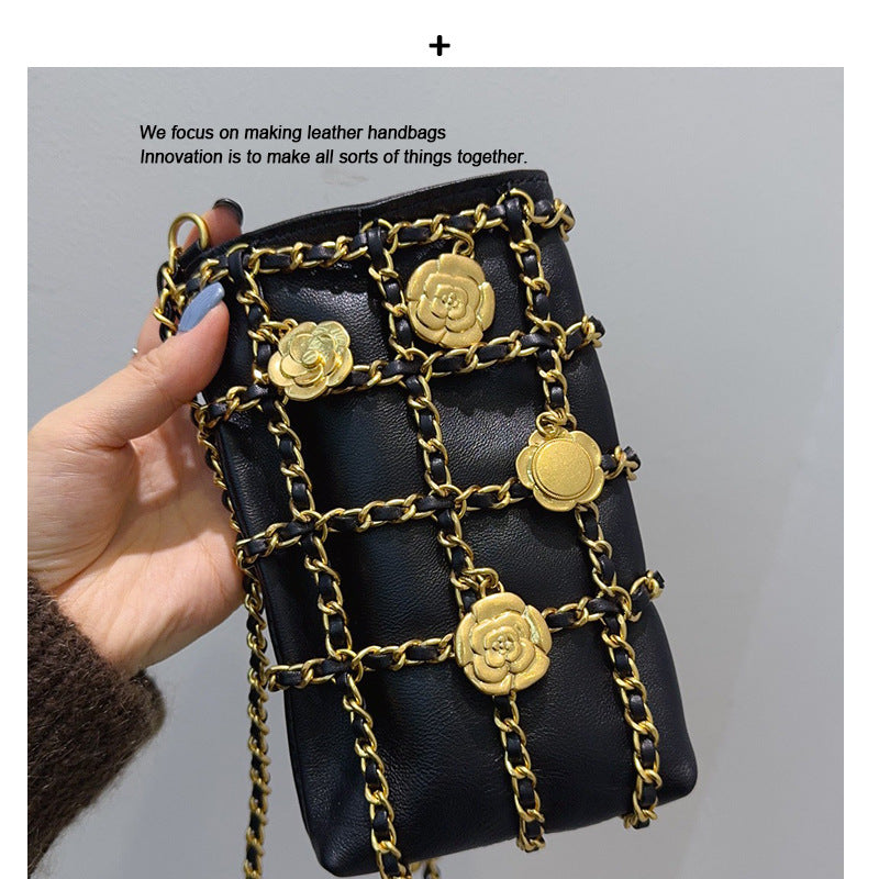 小香风山茶花真皮手机包女2024夏新款迷你菱格链条小包包斜挎包潮