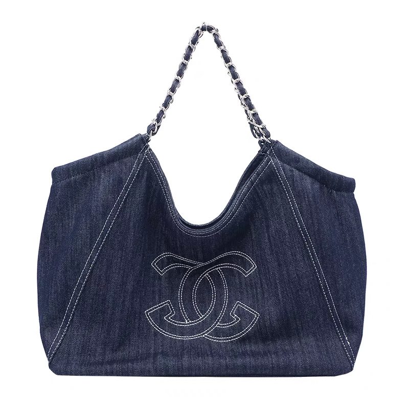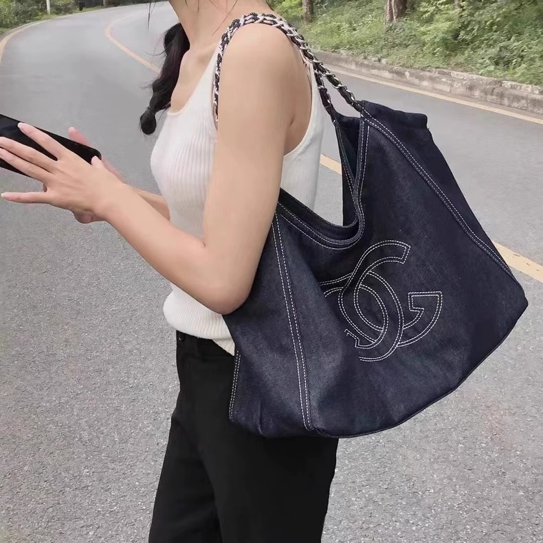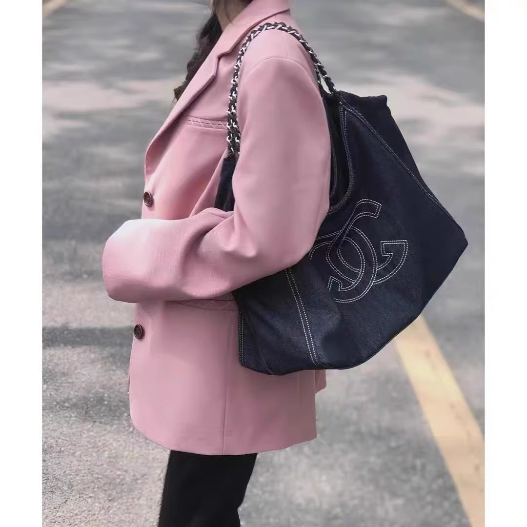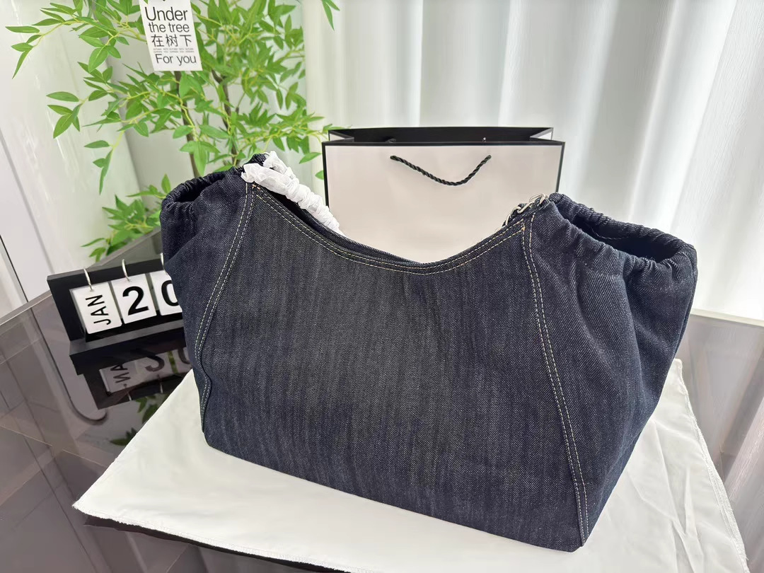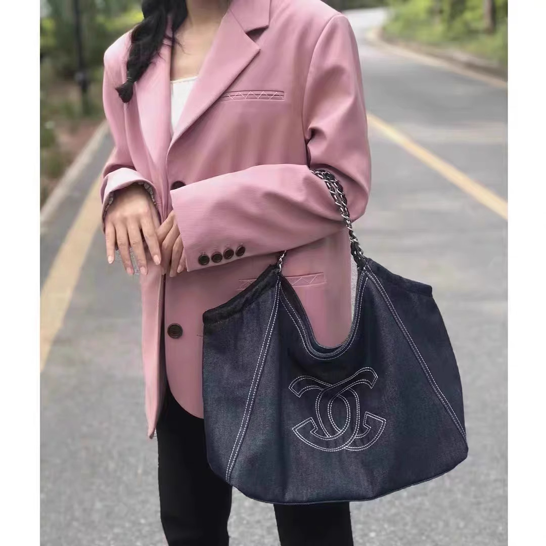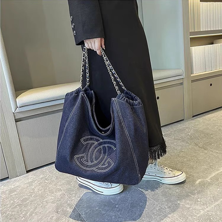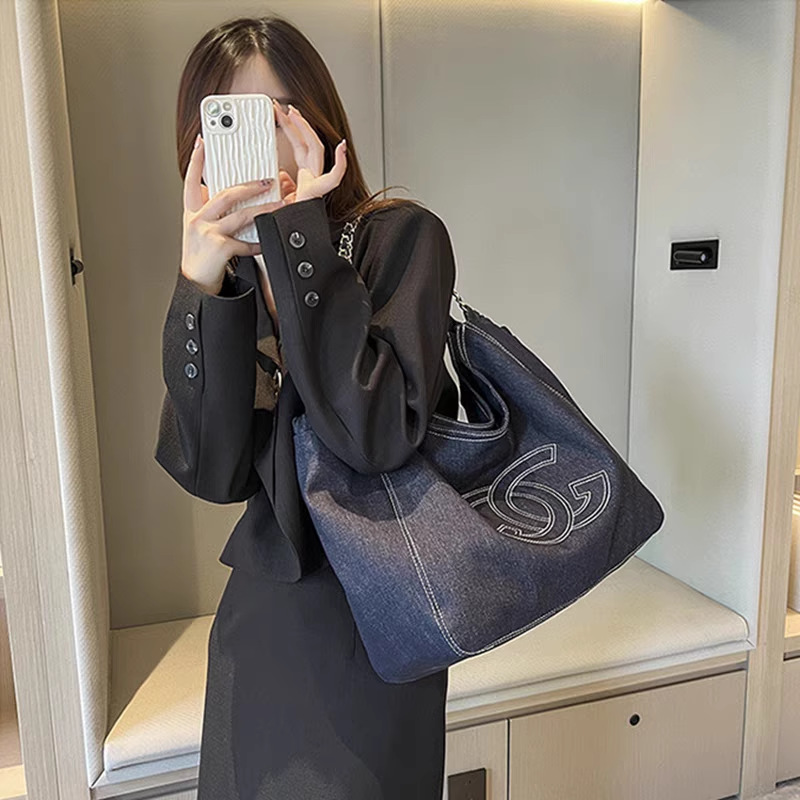 小香风牛仔布单肩包帆布大包包Vintage中古腋下包大容量托特包女