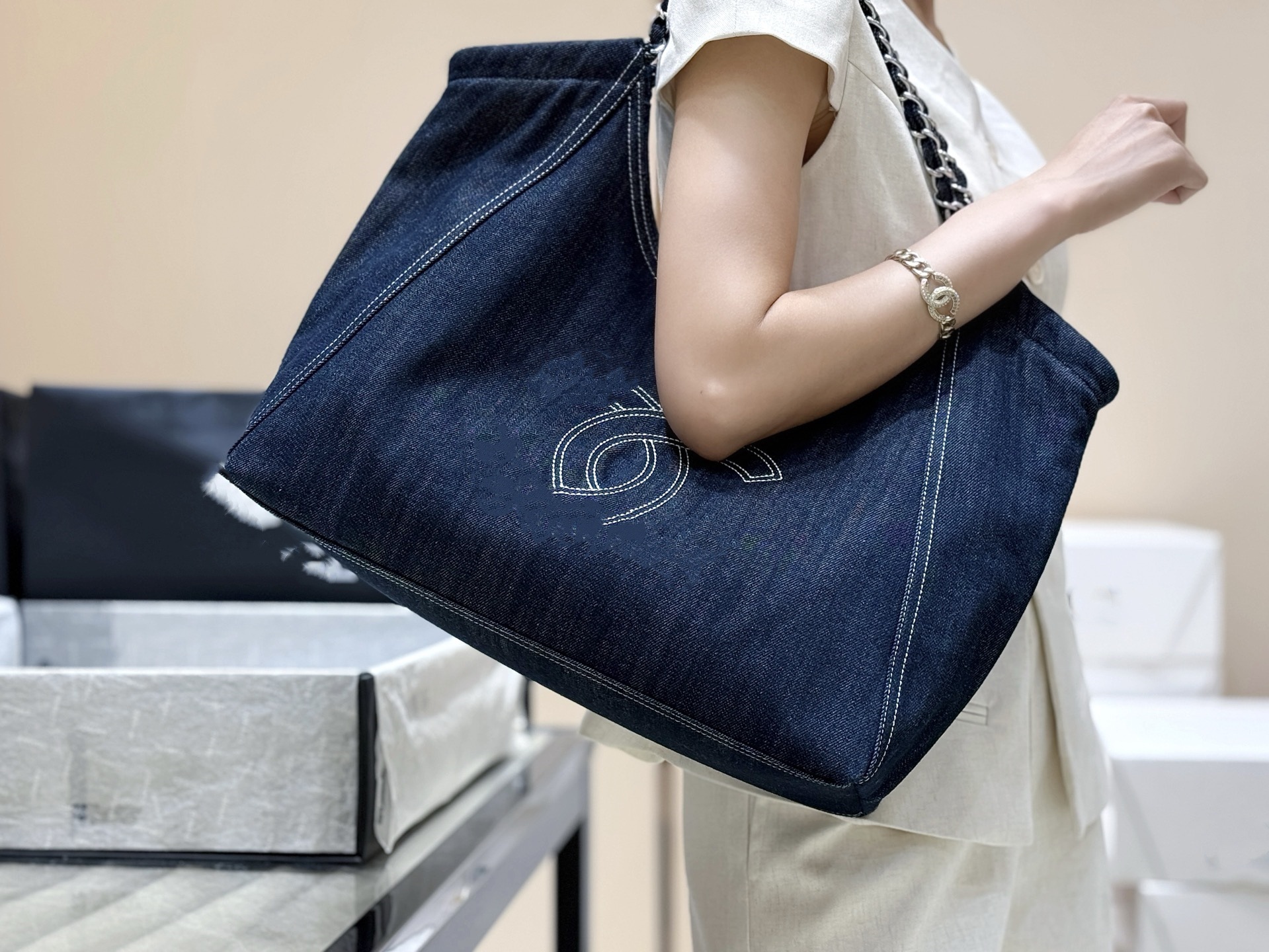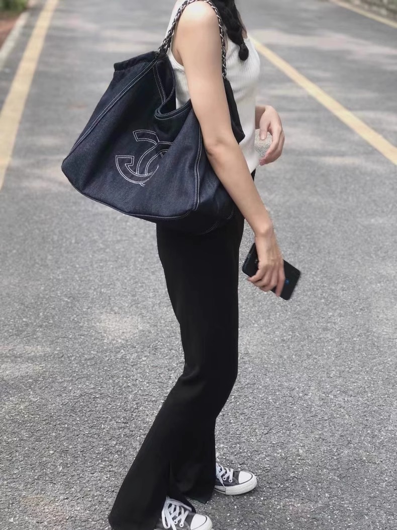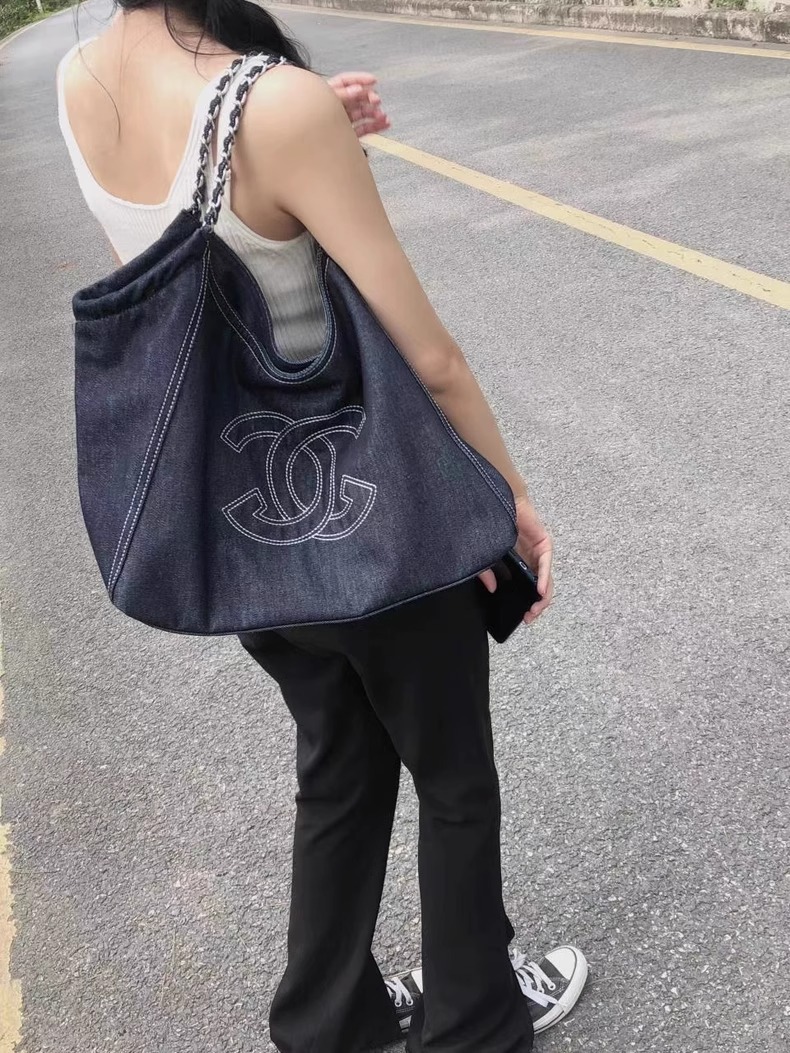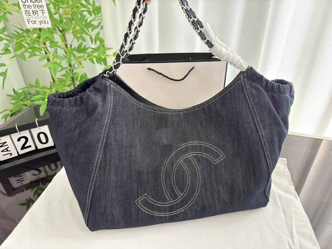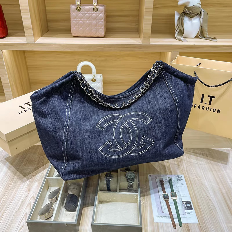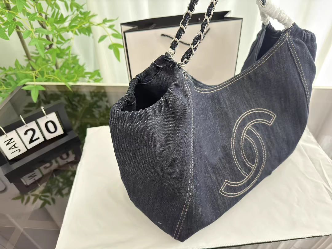 小香风牛仔布单肩包帆布大包包Vintage中古腋下包大容量托特包女
