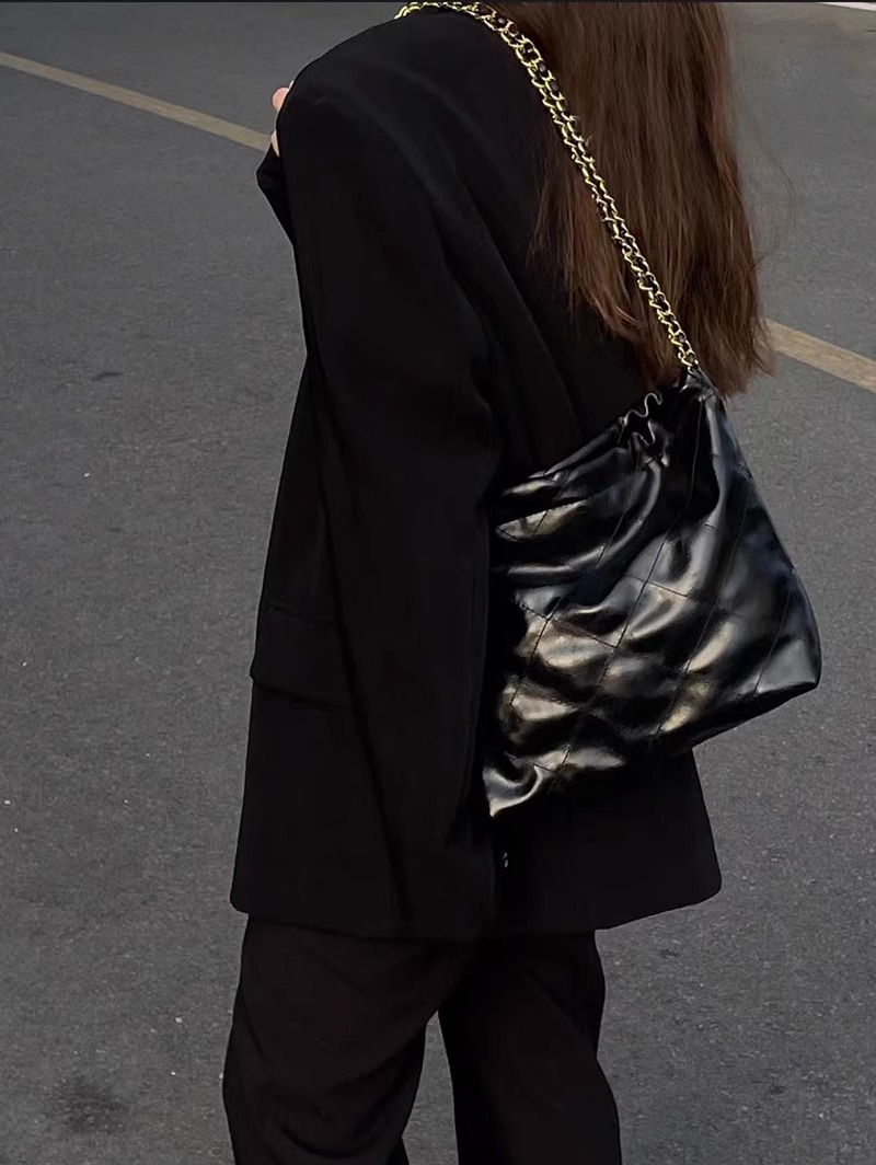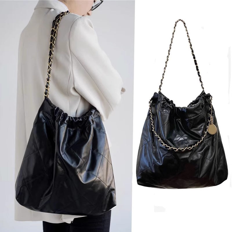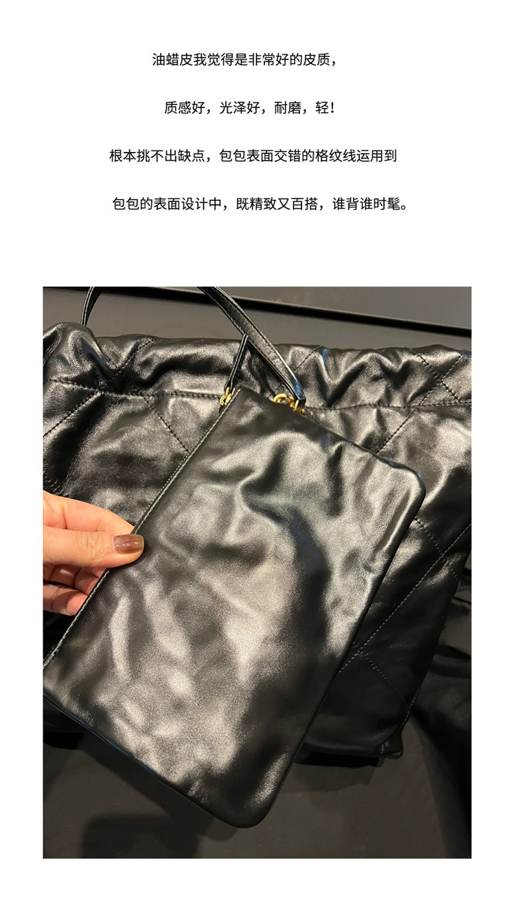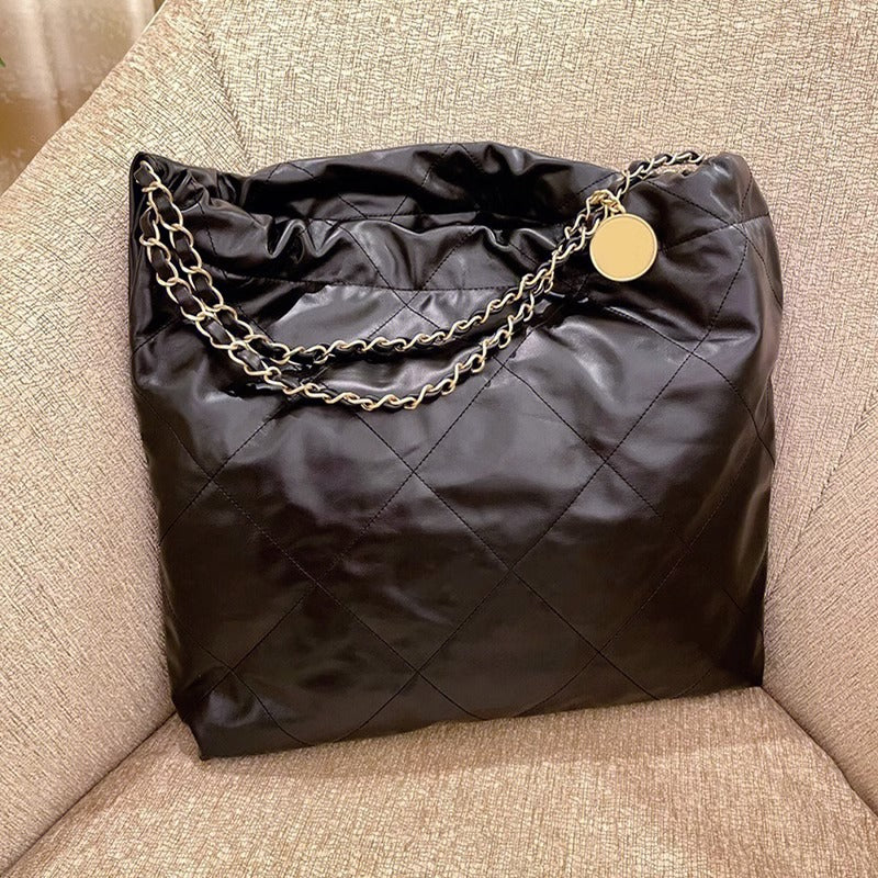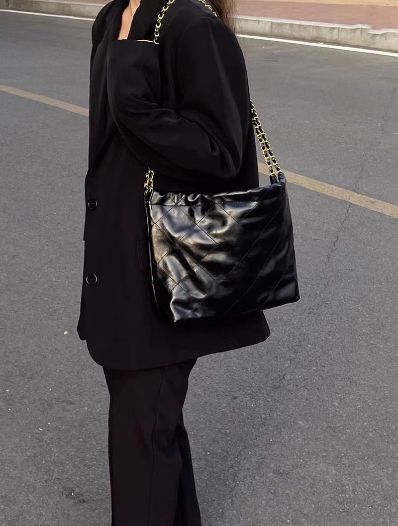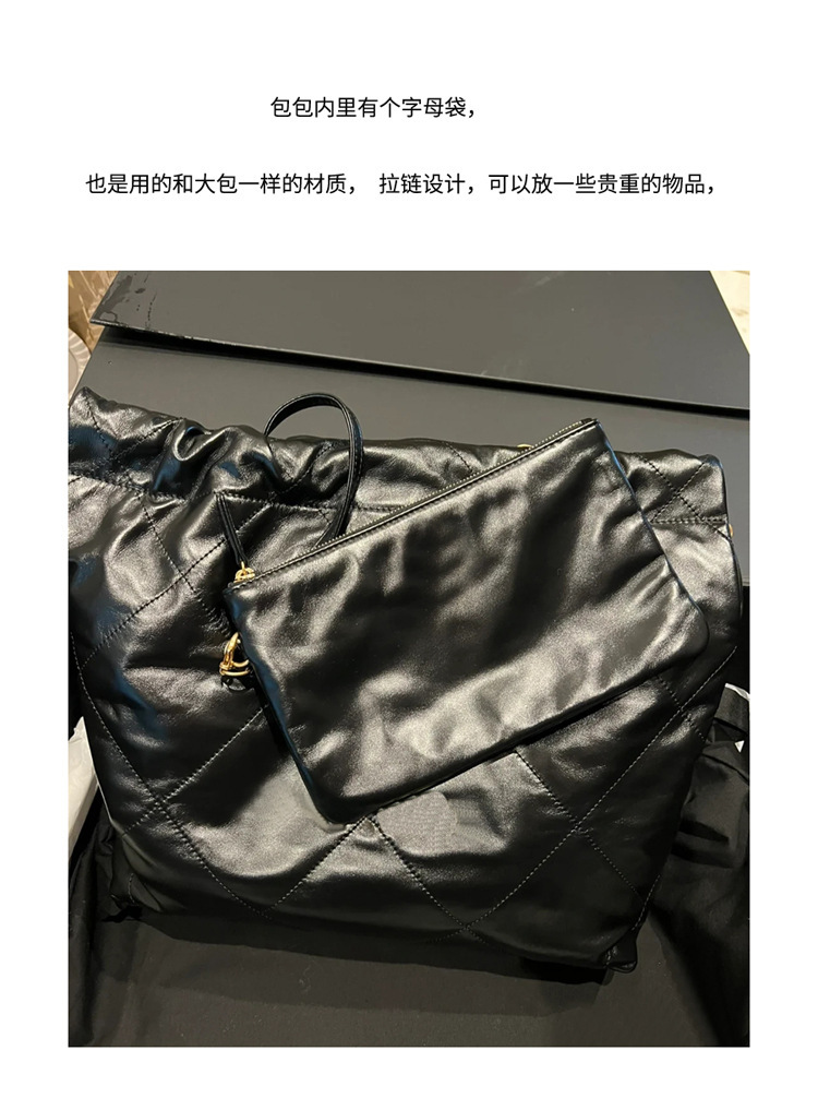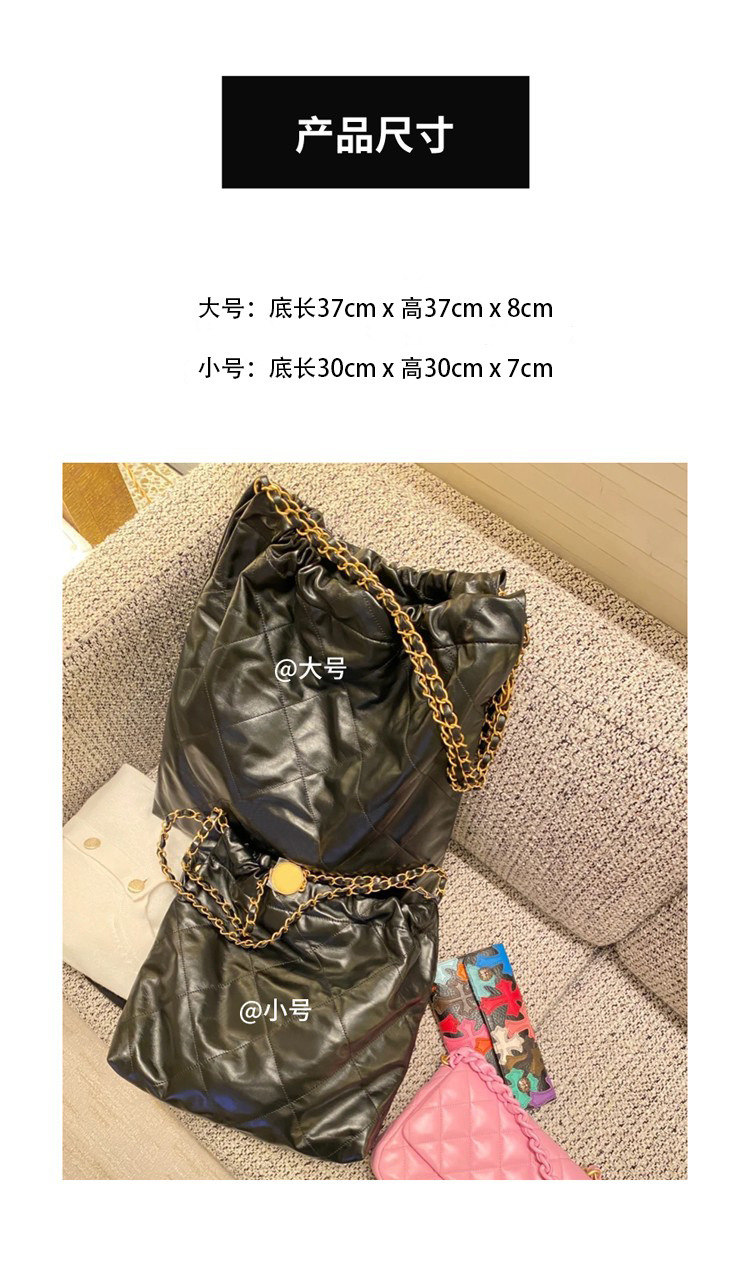 小香风ins潮慵懒风垃圾袋女包22bag大容量托特包真皮菱格包 代发