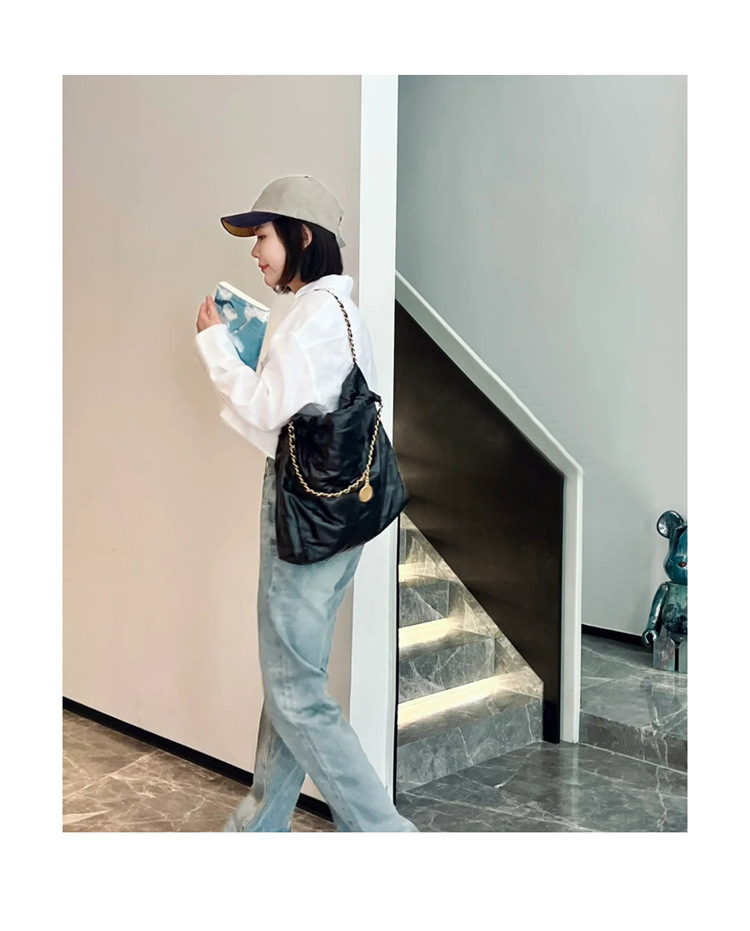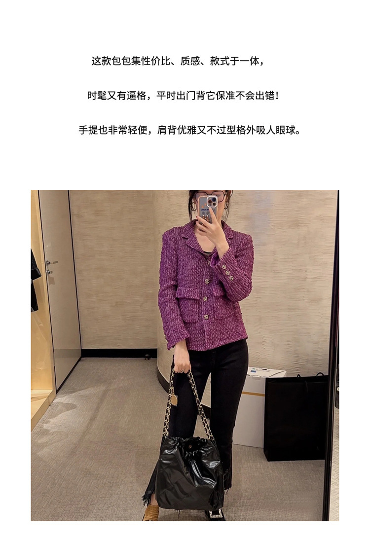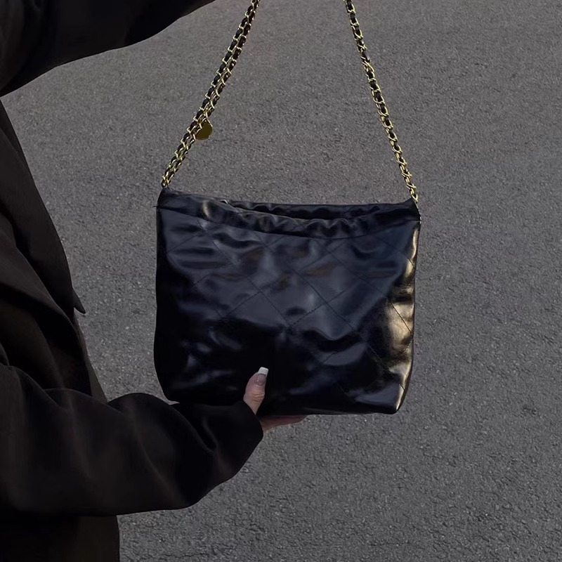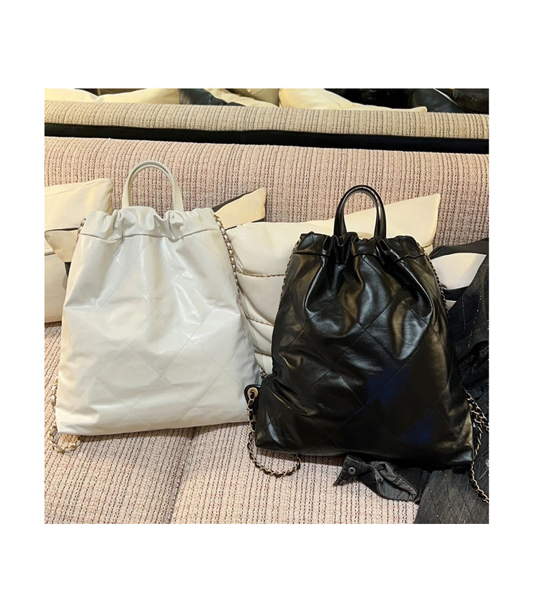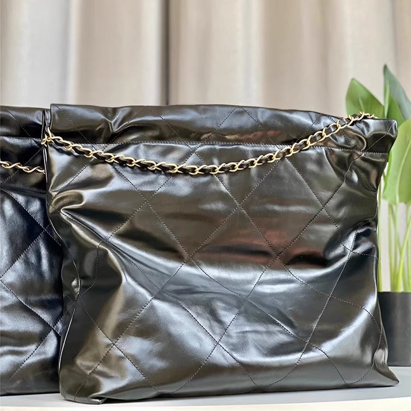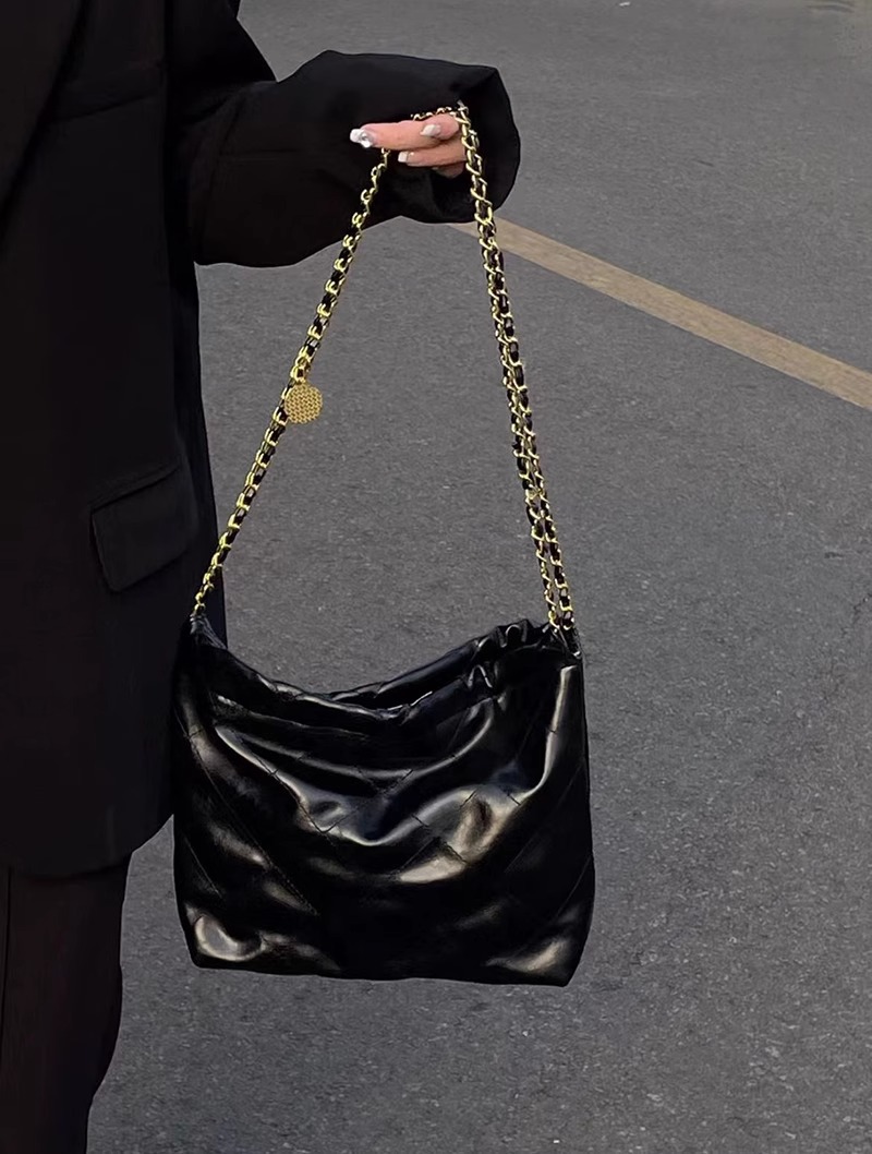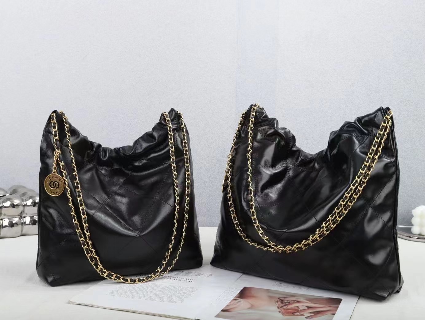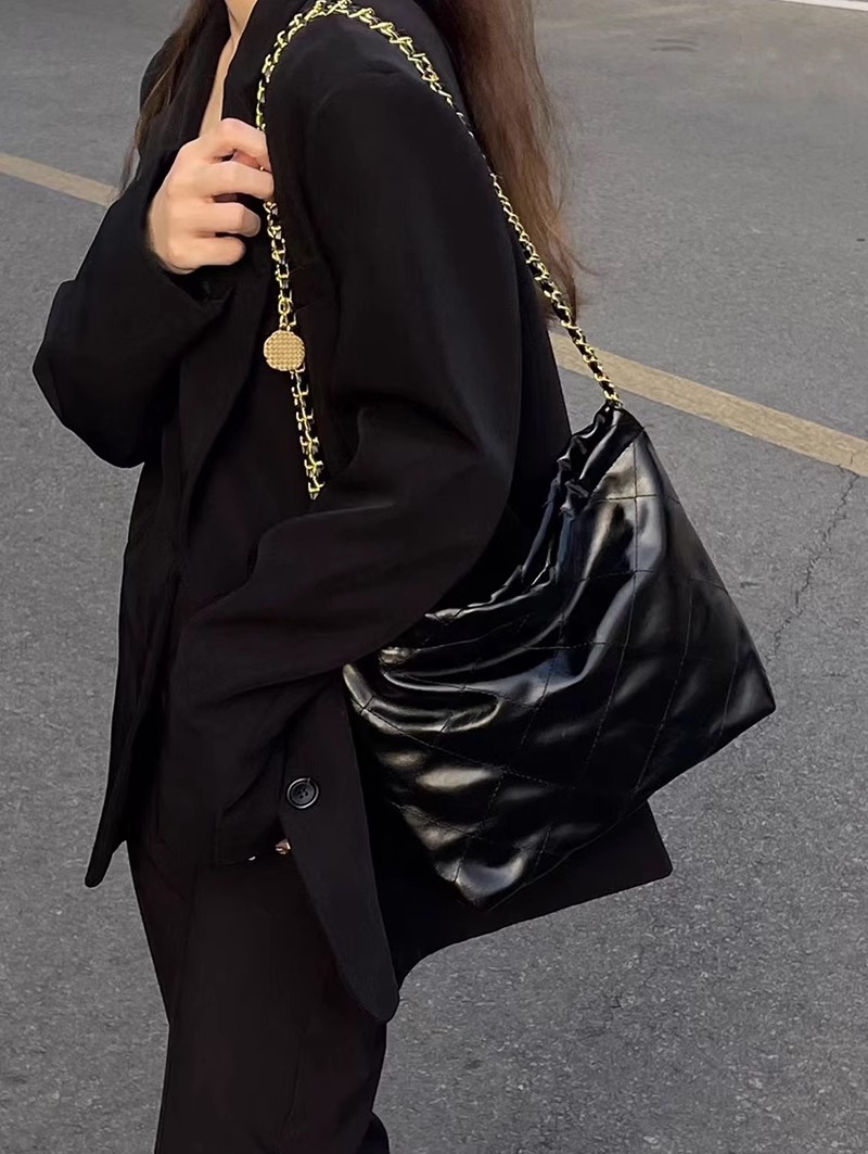 小香风ins潮慵懒风垃圾袋女包22bag大容量托特包真皮菱格包 代发