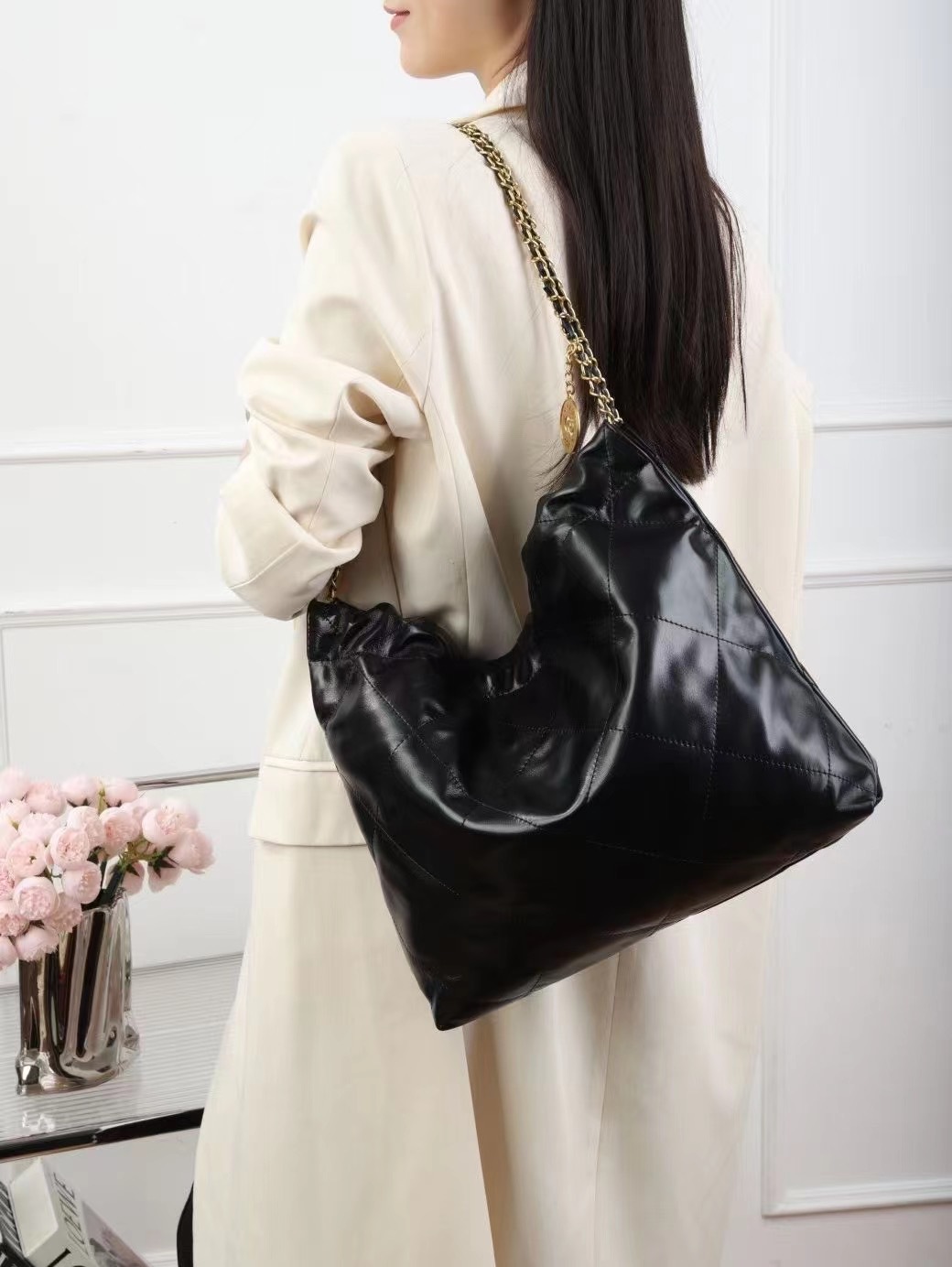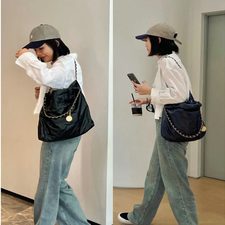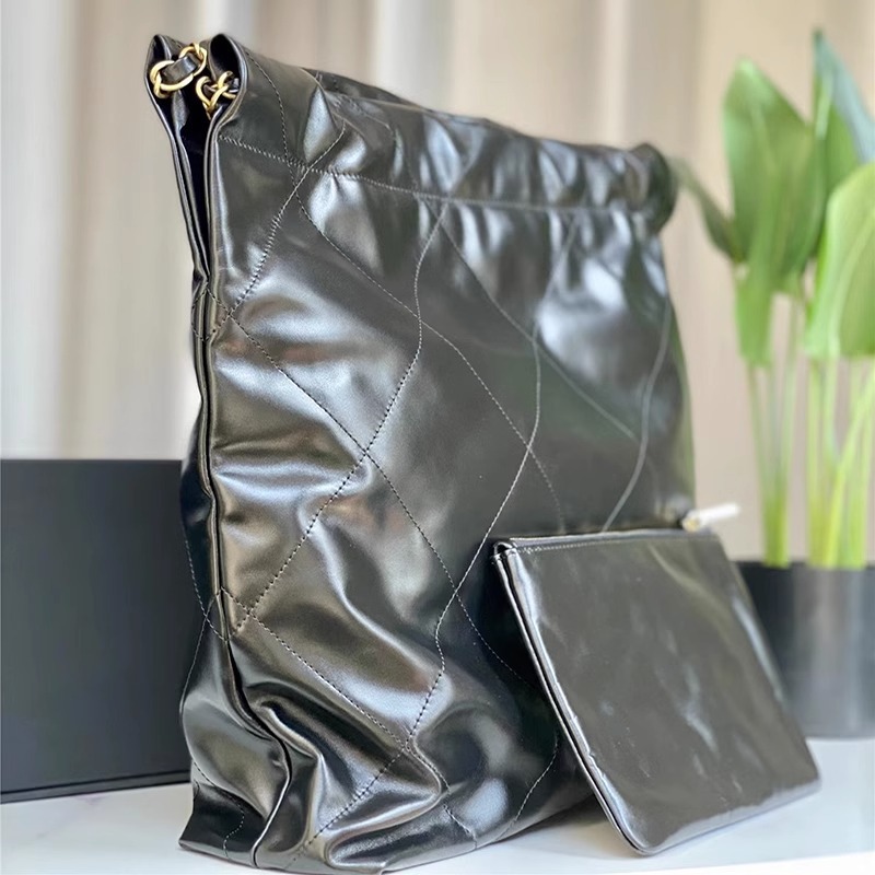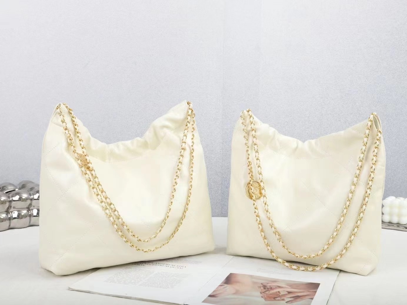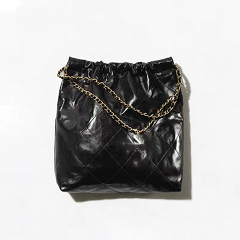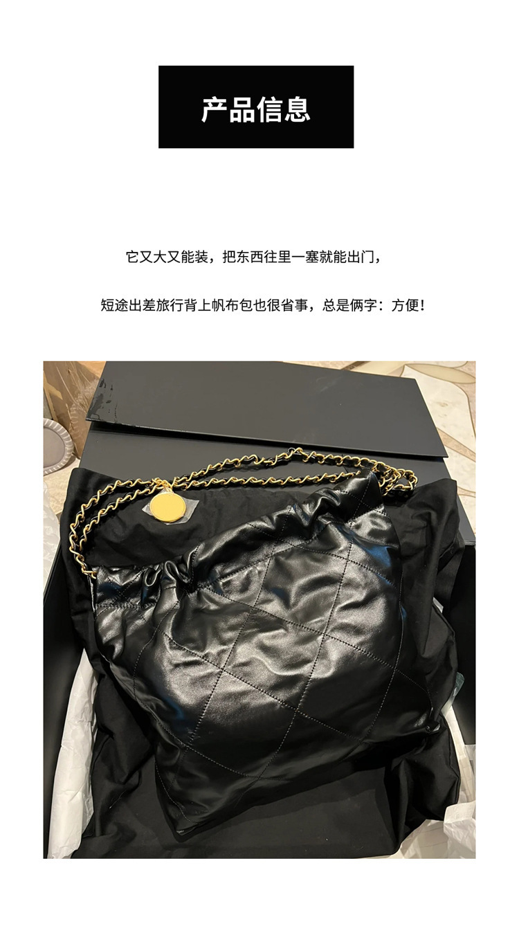 小香风ins潮慵懒风垃圾袋女包22bag大容量托特包真皮菱格包 代发