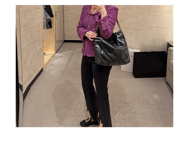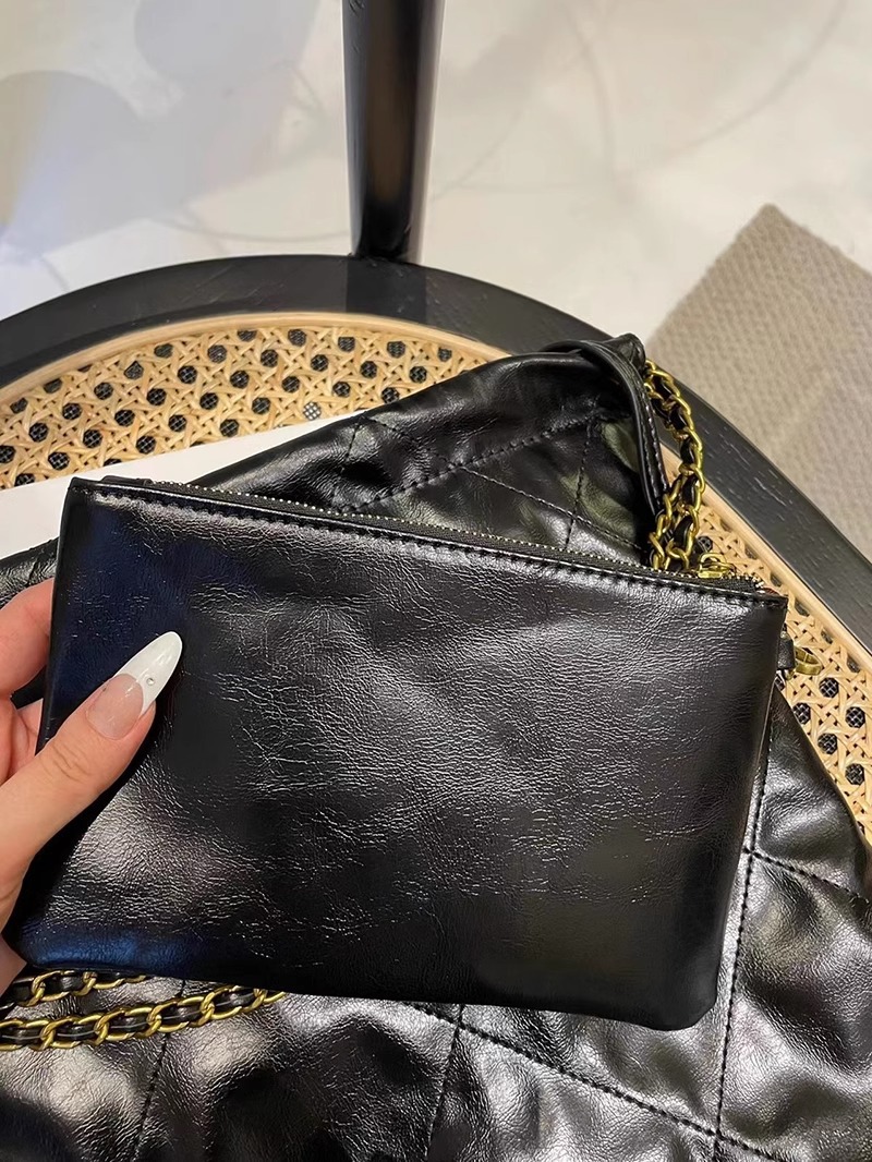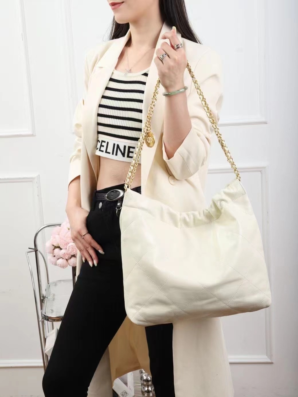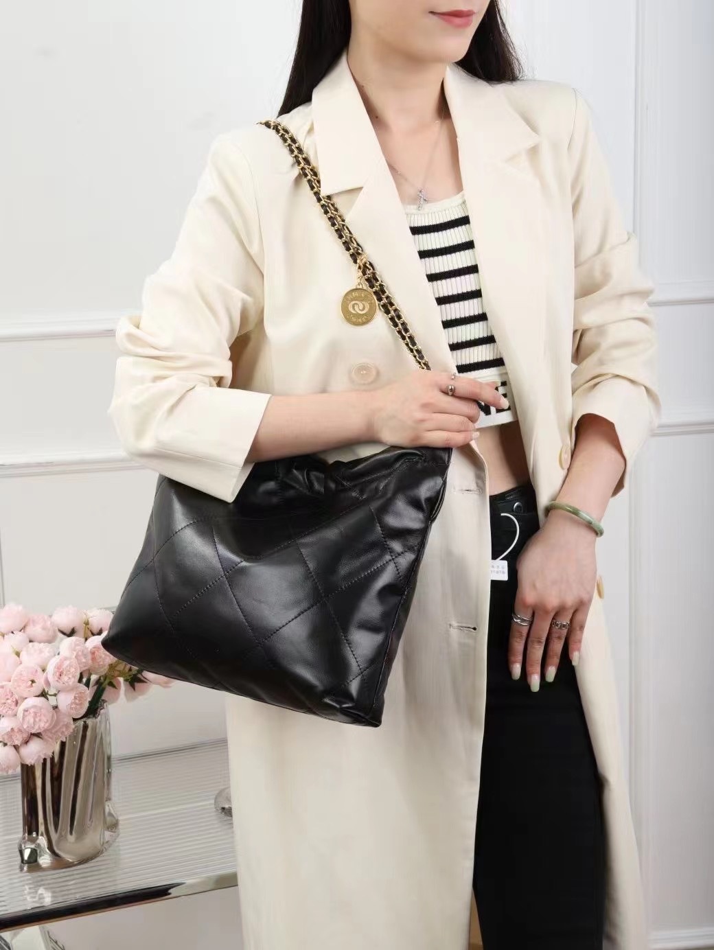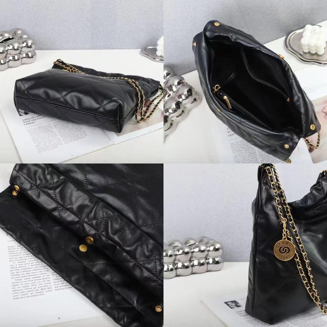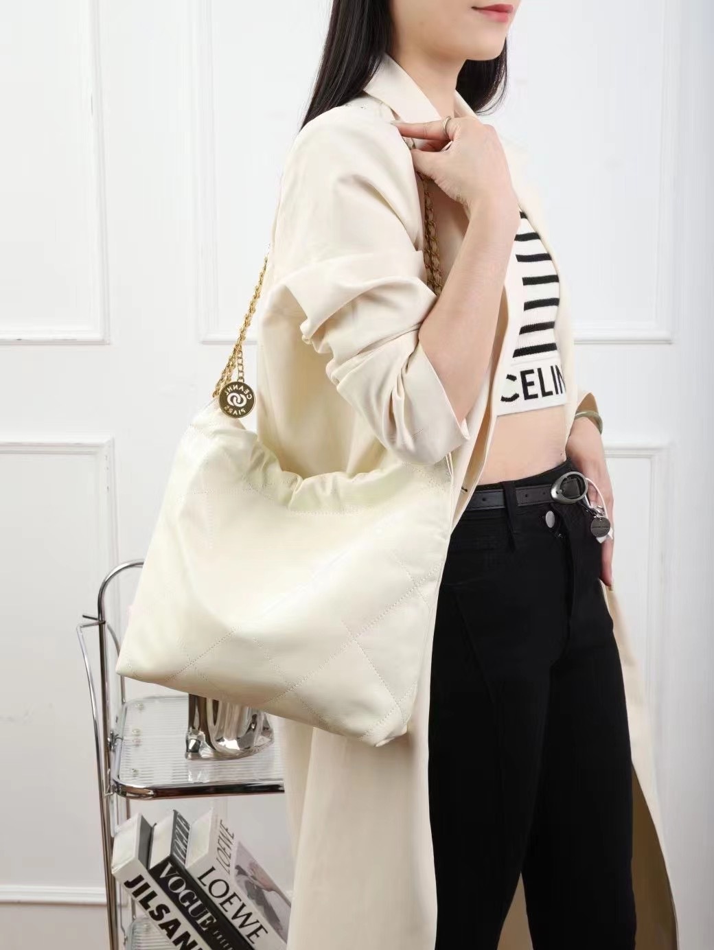 小香风ins潮慵懒风垃圾袋女包22bag大容量托特包真皮菱格包 代发