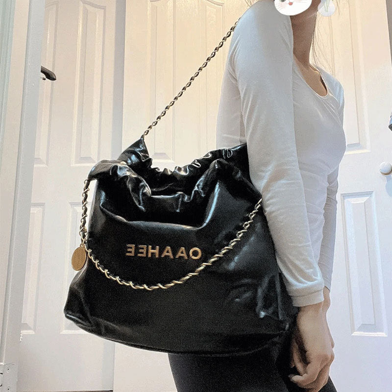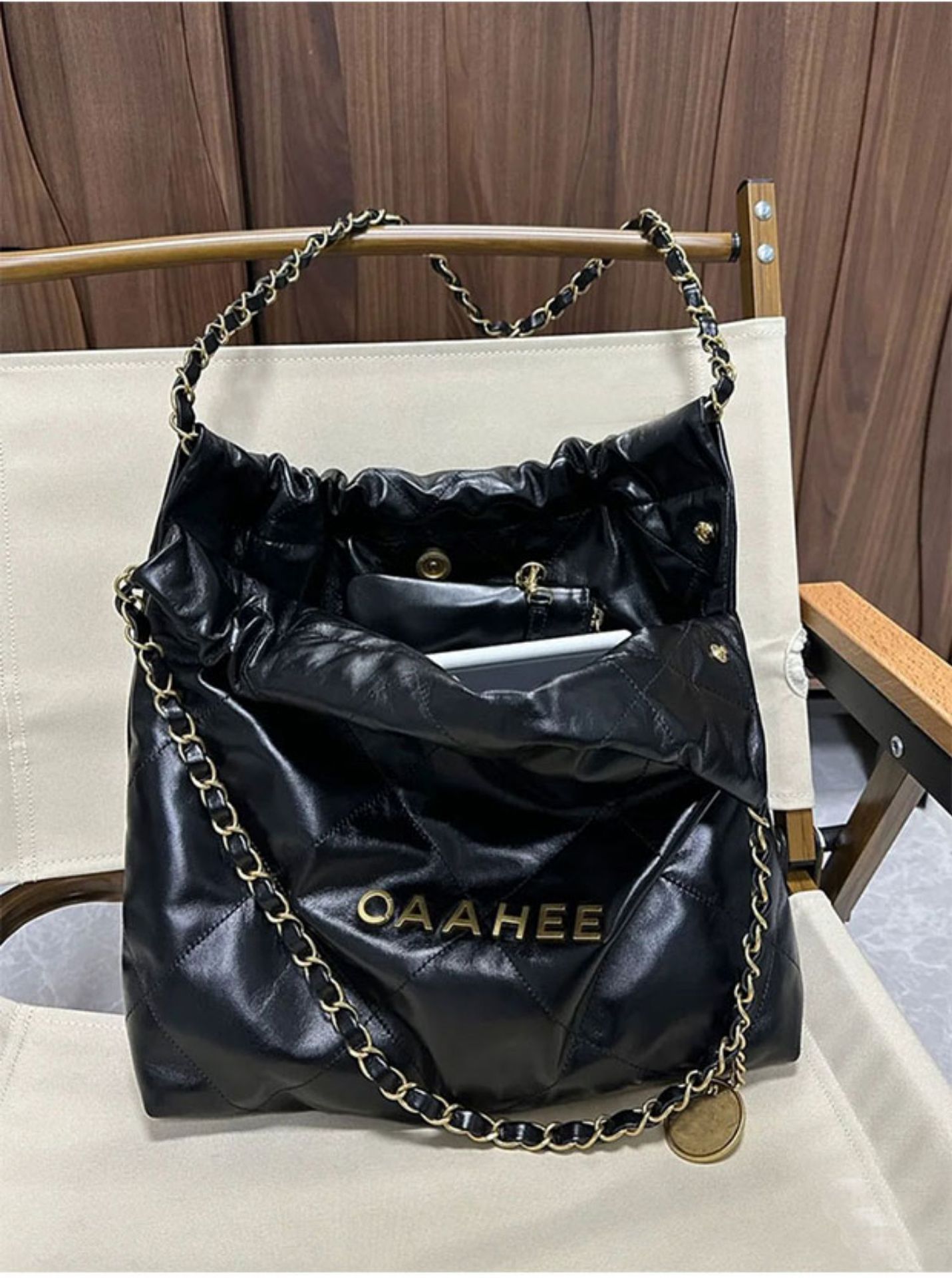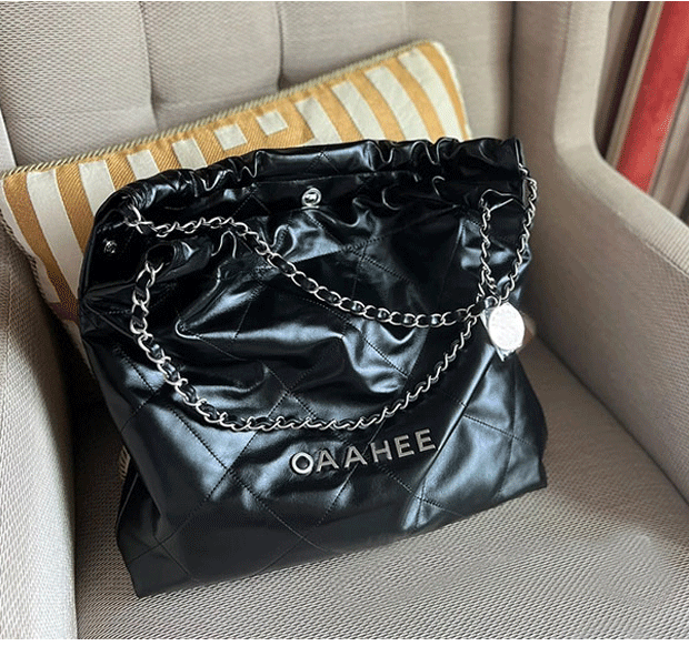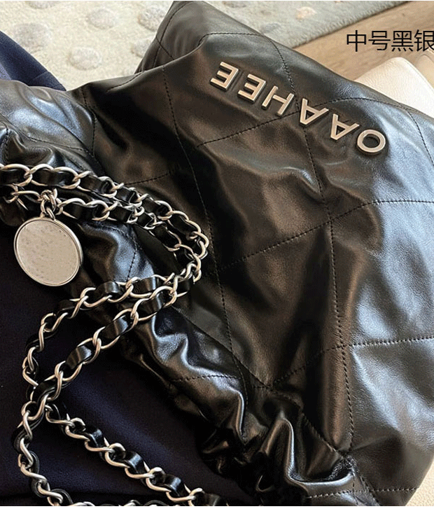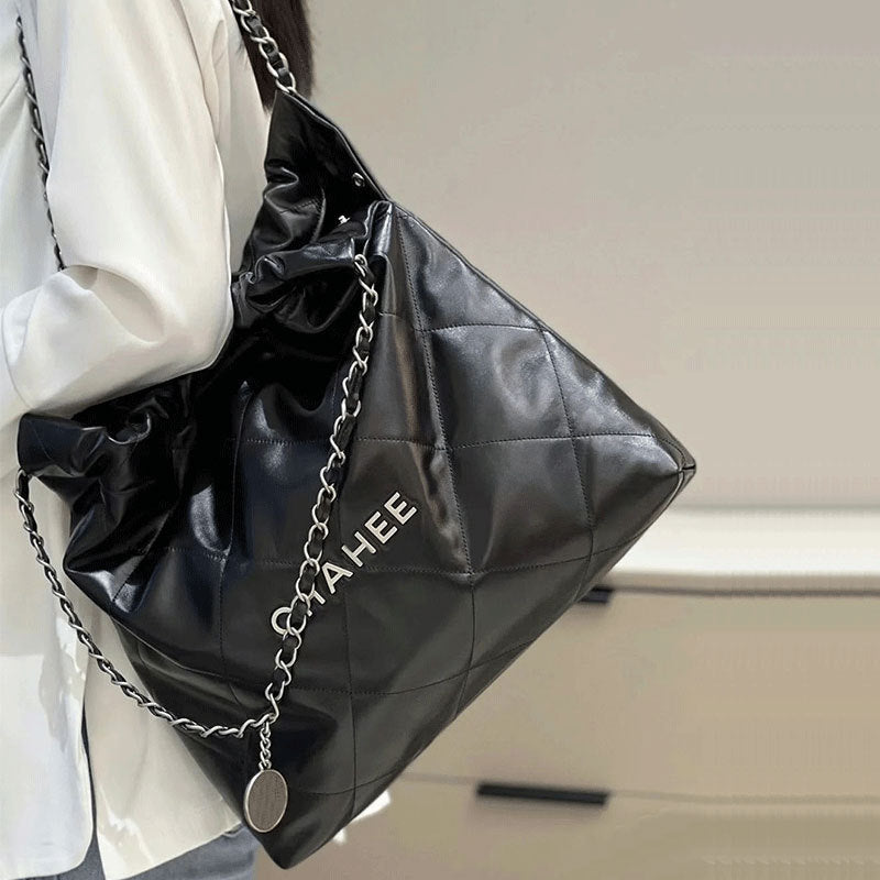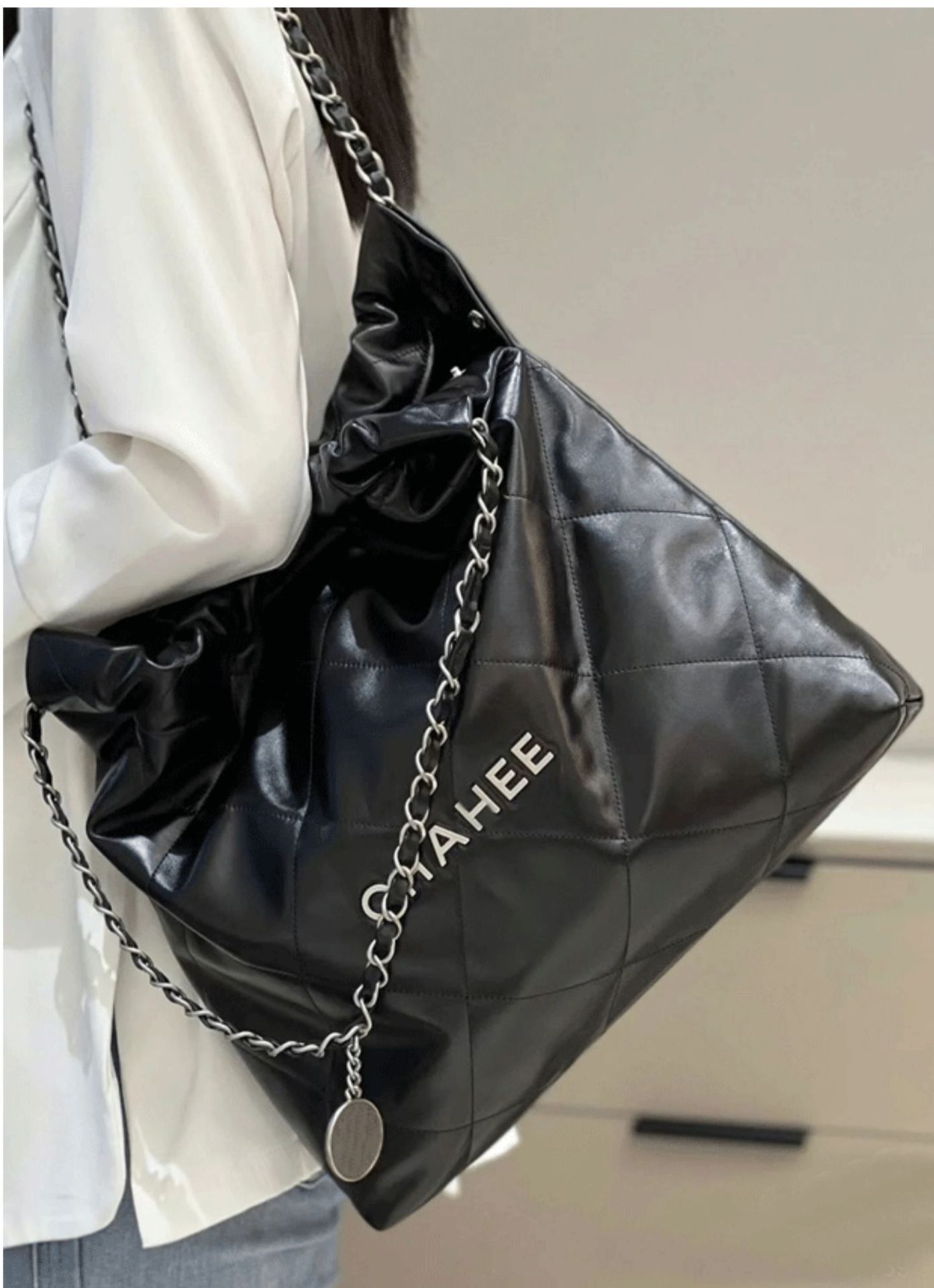 小香黑银垃圾袋包2023新款真皮托特包高级感大容量单肩菱格链条包