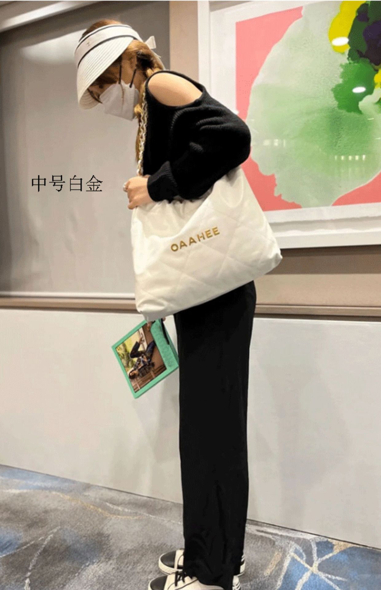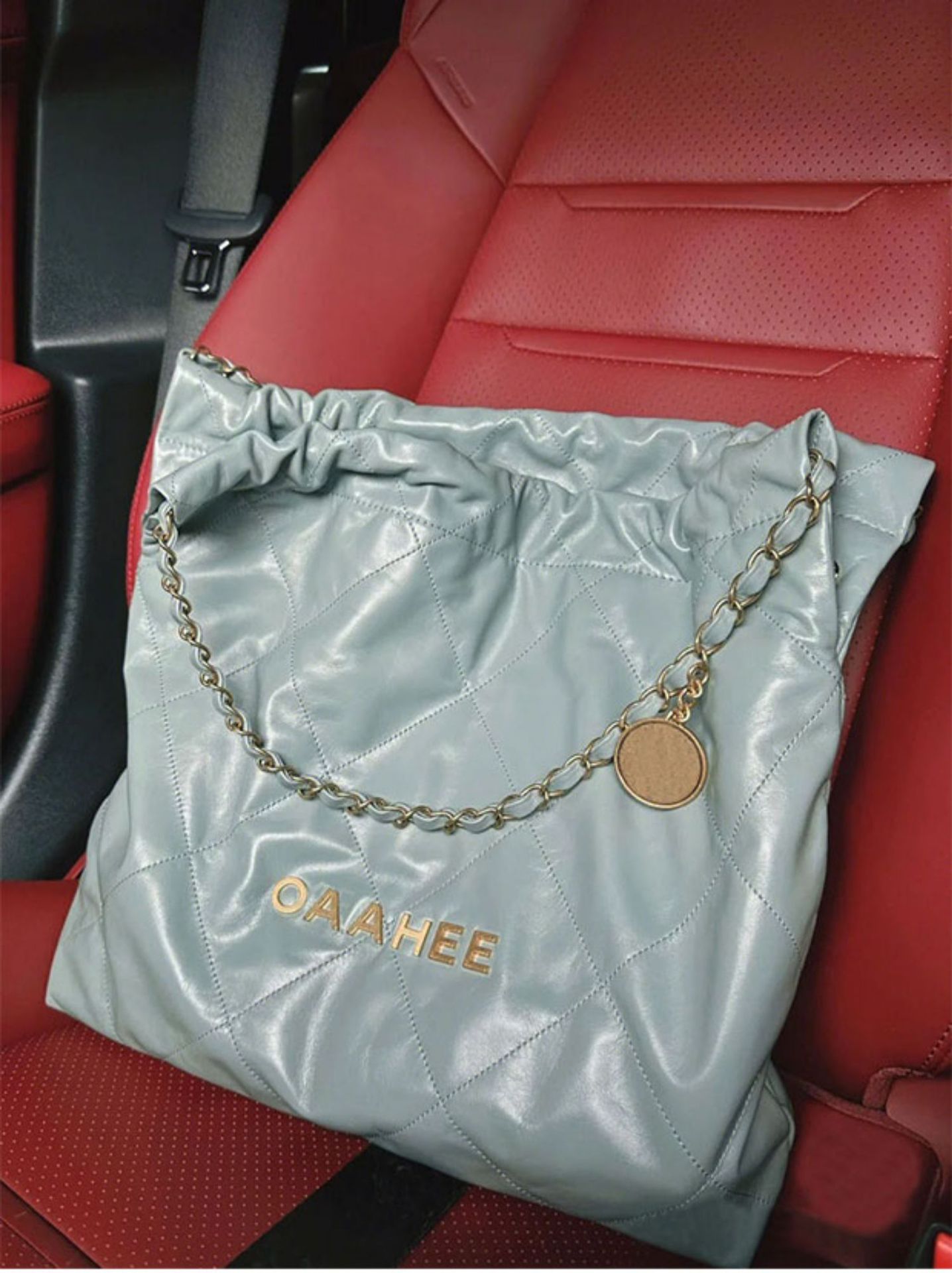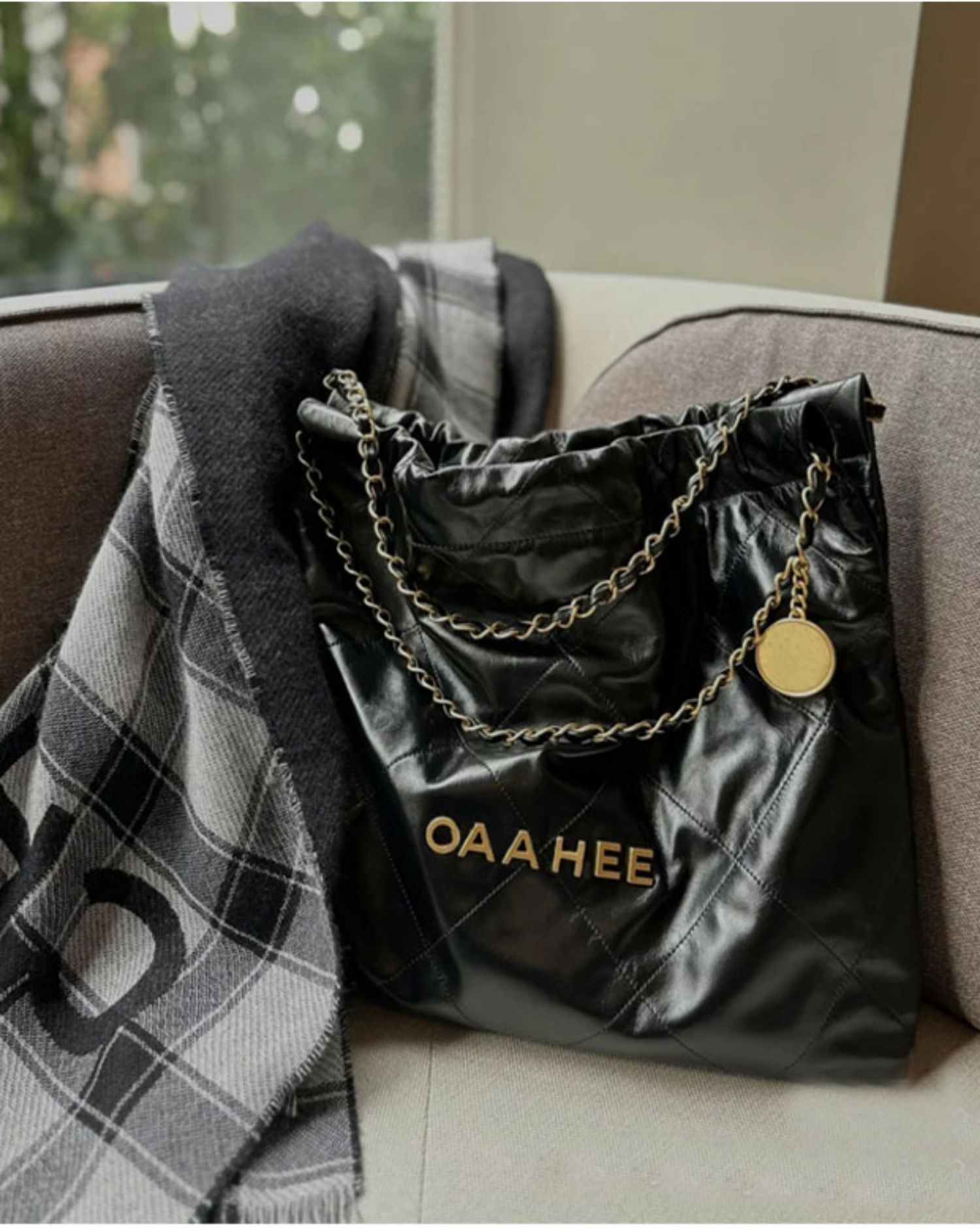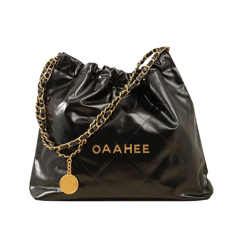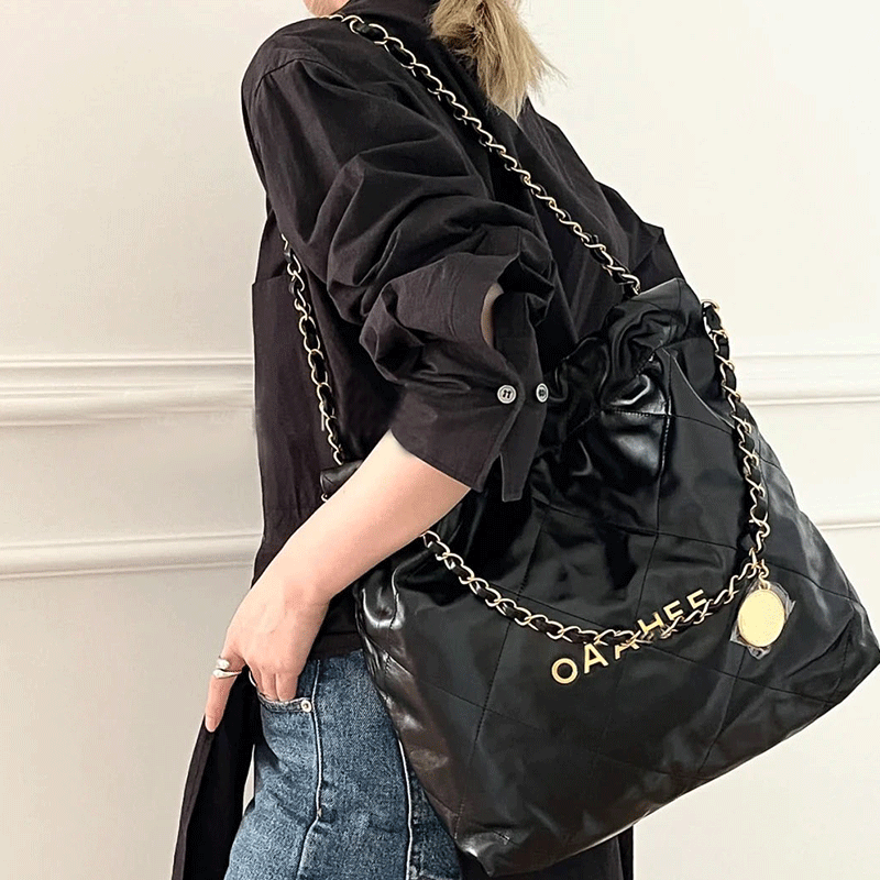 小香黑银垃圾袋包2023新款真皮托特包高级感大容量单肩菱格链条包