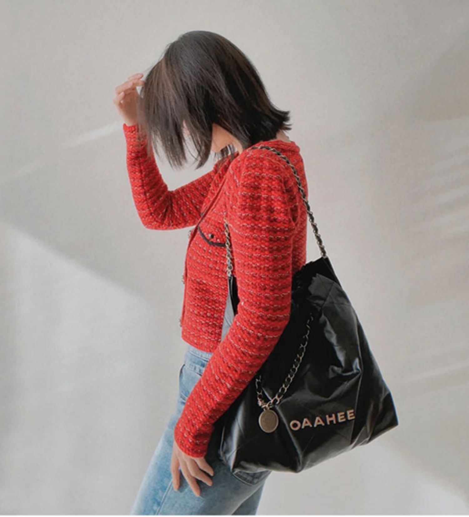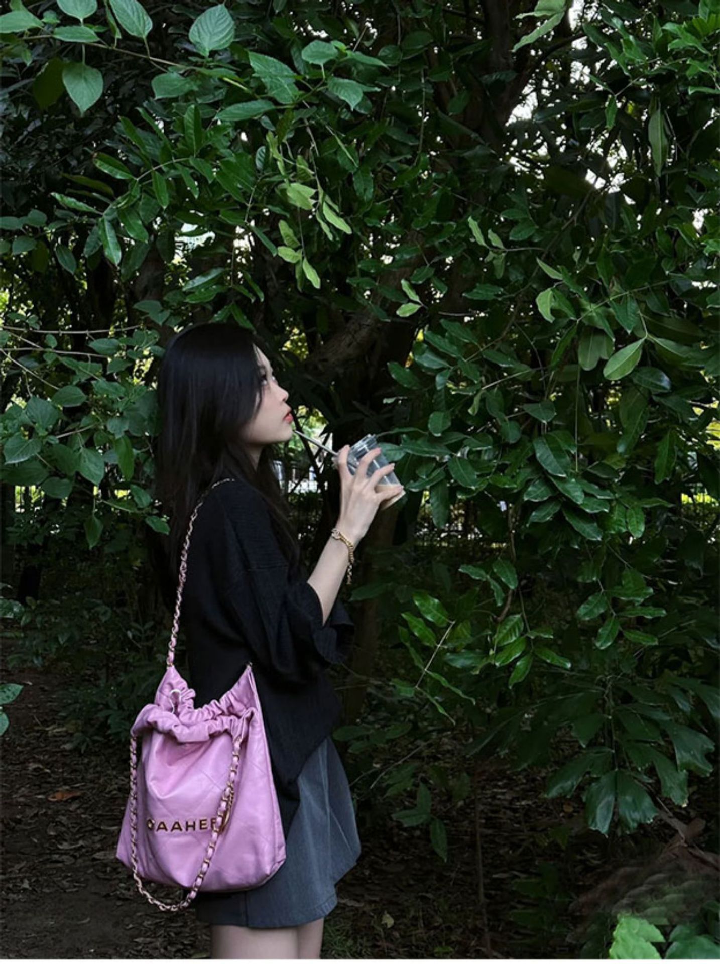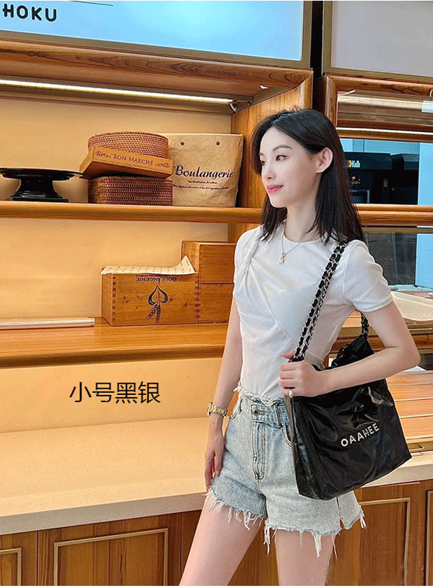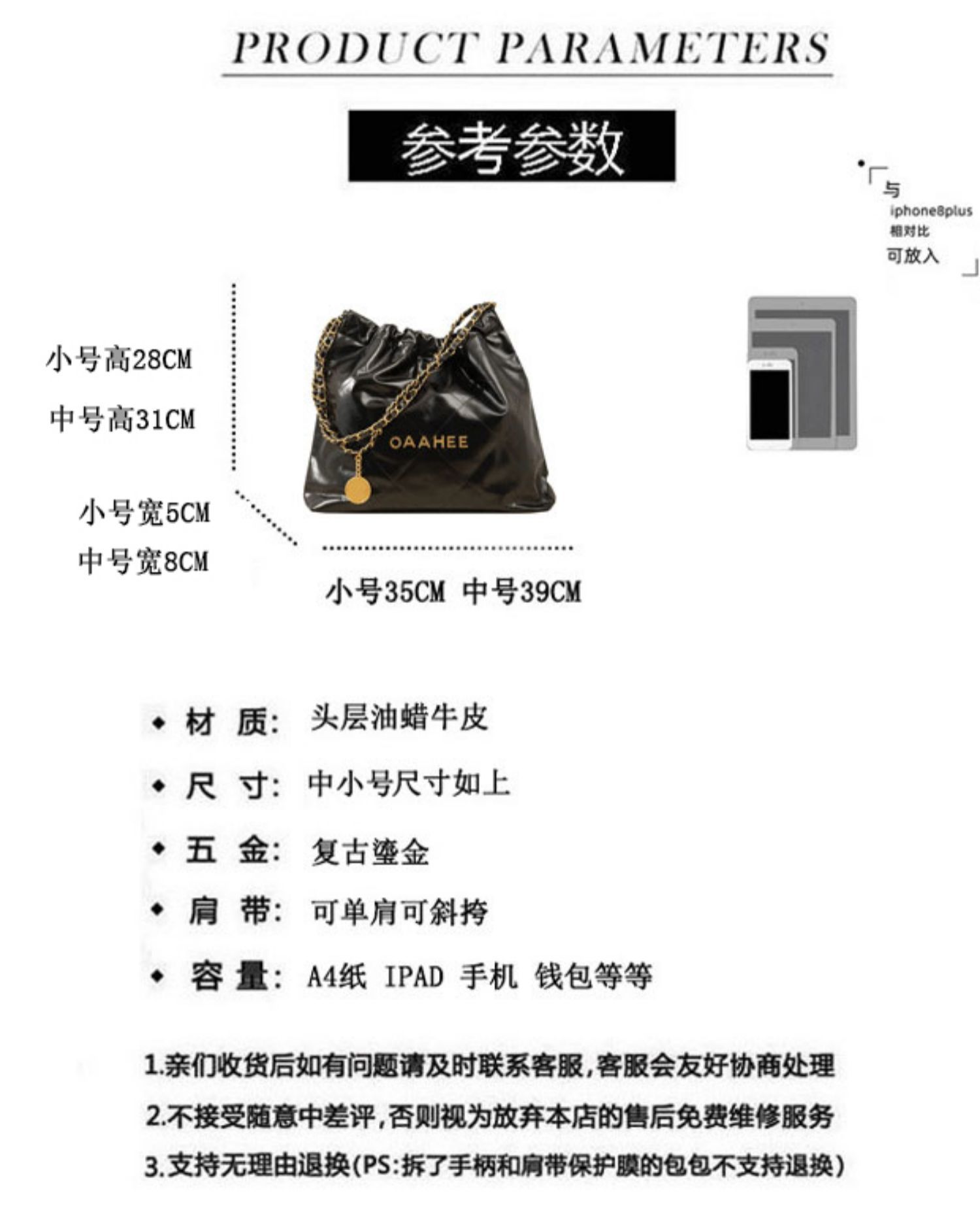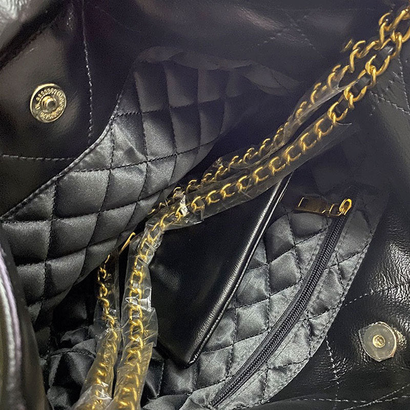 小香黑银垃圾袋包2023新款真皮托特包高级感大容量单肩菱格链条包