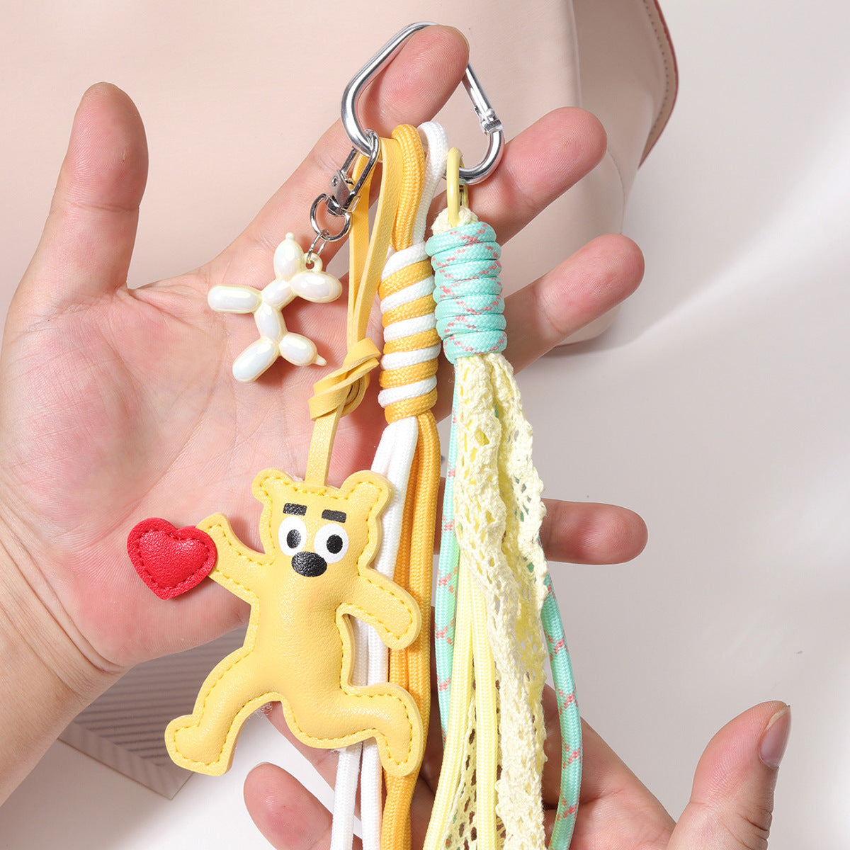 工厂原创配搭PU皮革欢乐点赞爱心小熊包包挂件气球狗编制挂绳定制