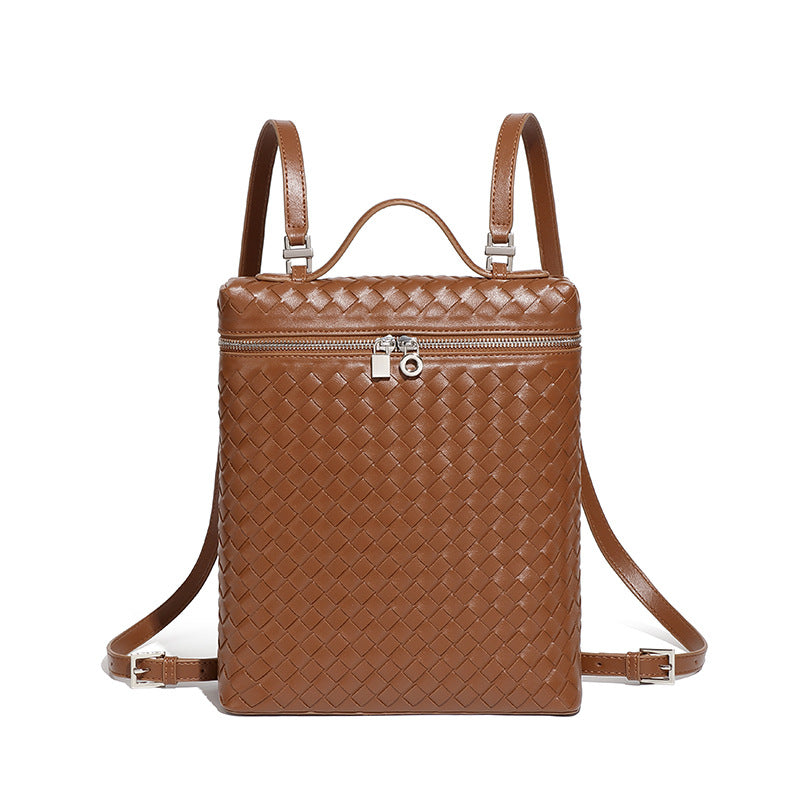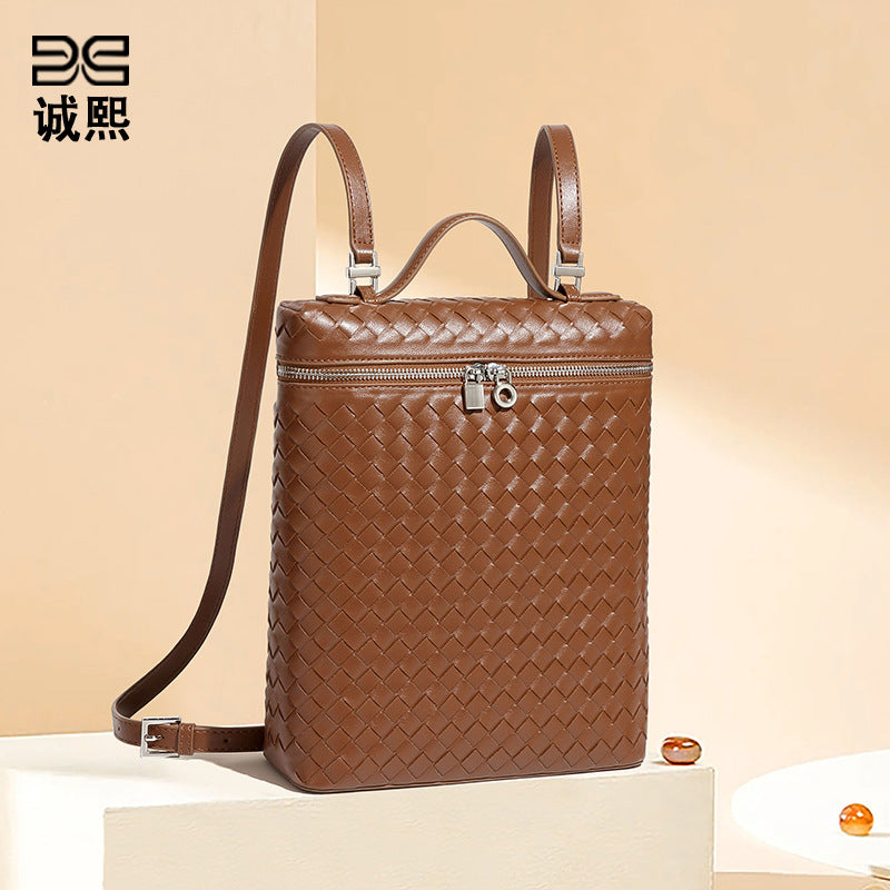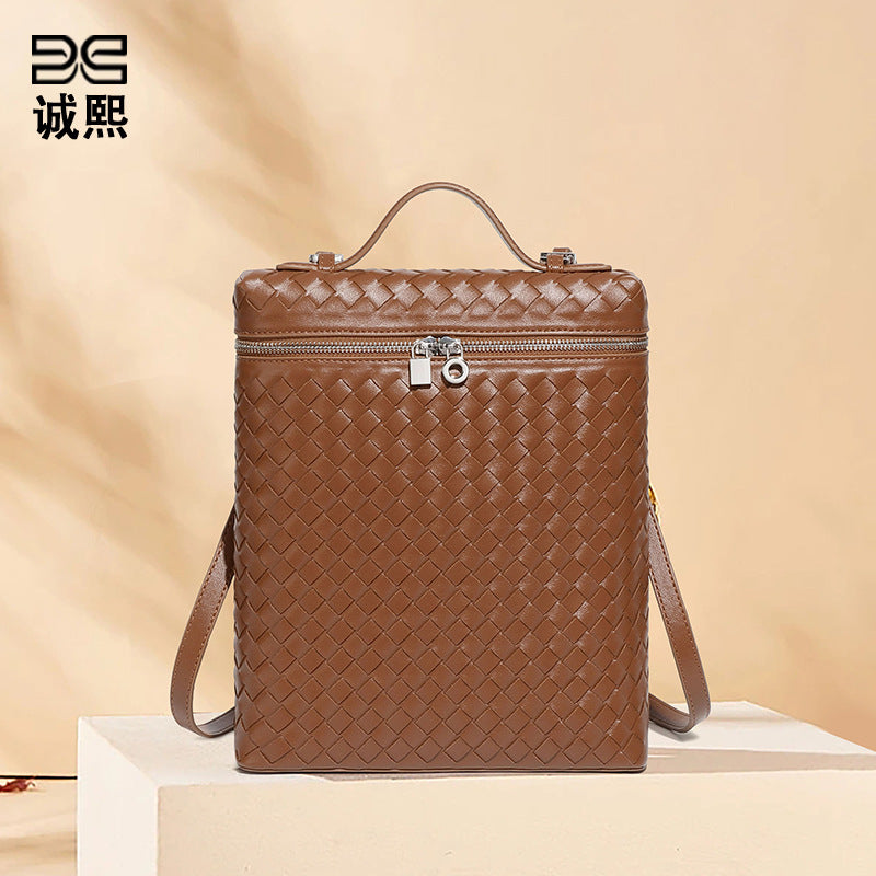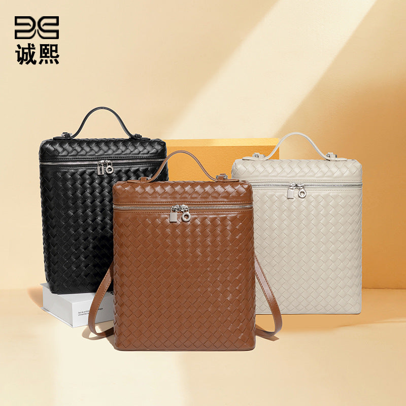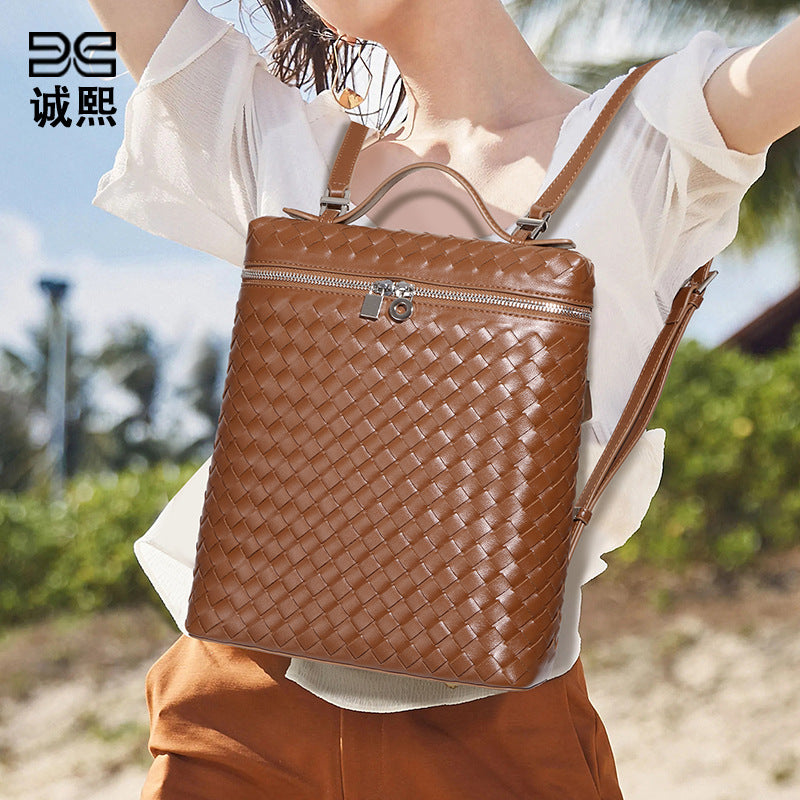 工厂定制时尚手工编织包潮流大容量通勤百搭双肩包旅行男女士背包