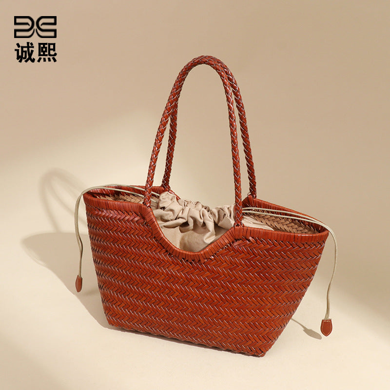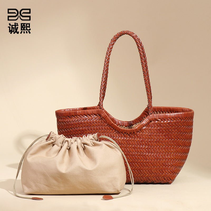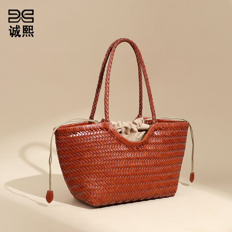 工厂定制真皮手提女包高级感单肩大容量托特包复古休闲百搭腋下包