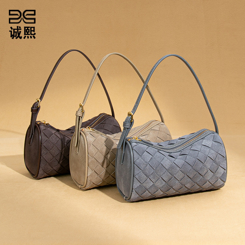 工厂批发磨砂新款手提包麂皮绒潮流单肩腋下包手工编织斜跨枕头包