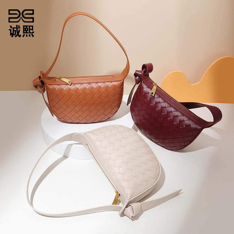 工厂现货批发编织女包高级感马鞍包手提单肩腋下包时尚小众半月包