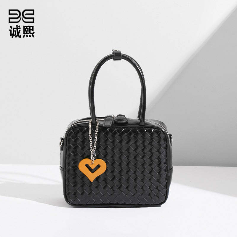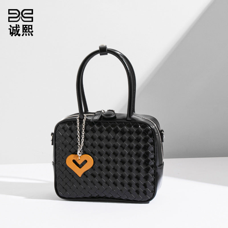 工厂直销新款包包手工编织质感爱心吊坠饼干包单肩手提斜挎小方包
