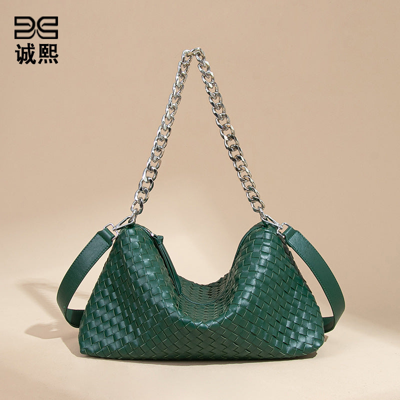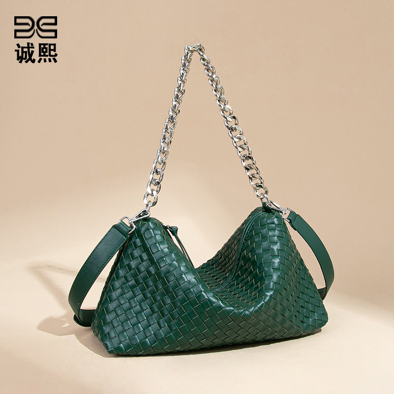 工厂2025新款手工编织包时尚链条大容量单肩腋下包个性百搭手提包