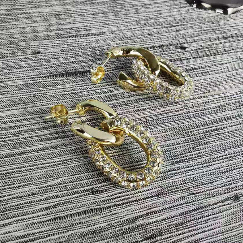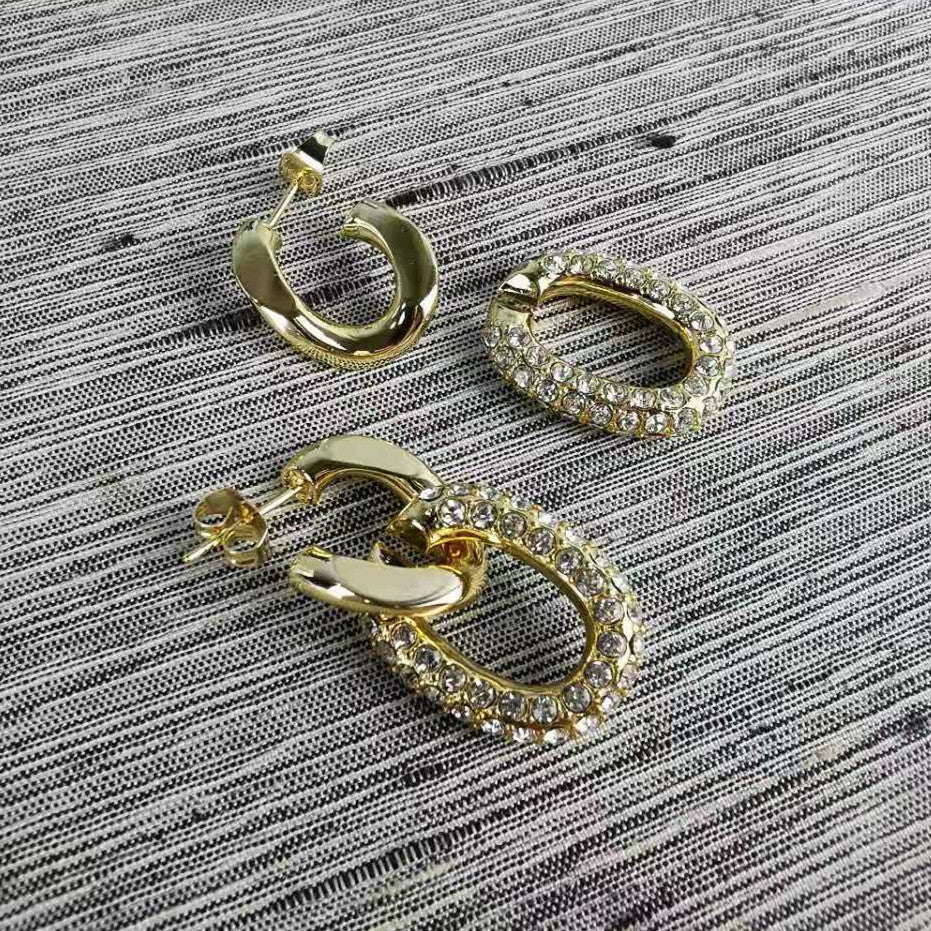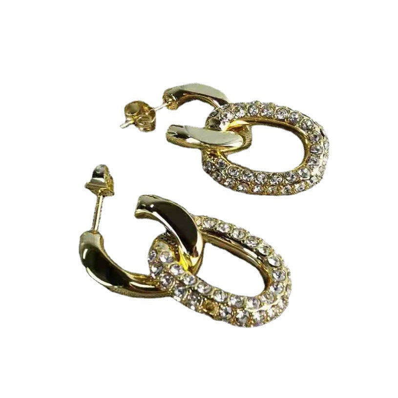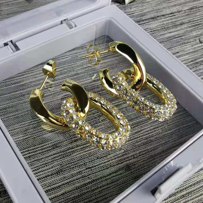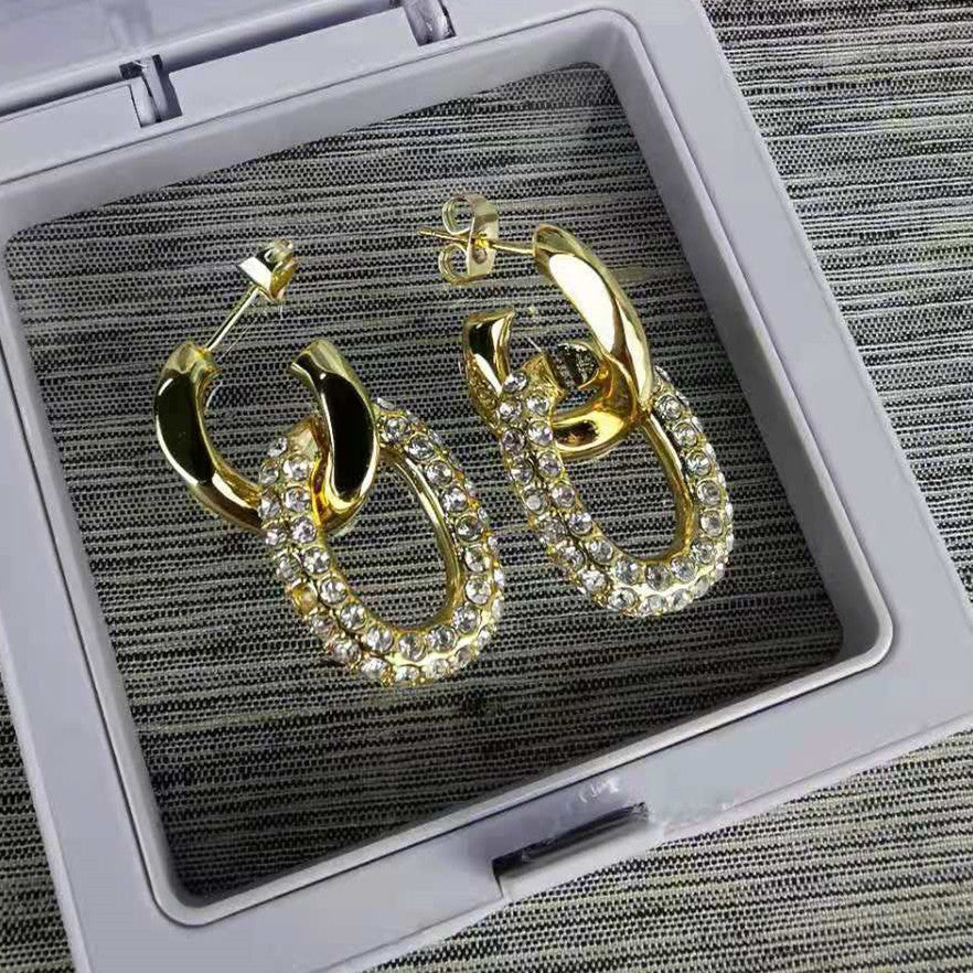 巴家新款双环闪钻耳钉复古高级感拼接个性洋气饰品可拆卸二戴耳环