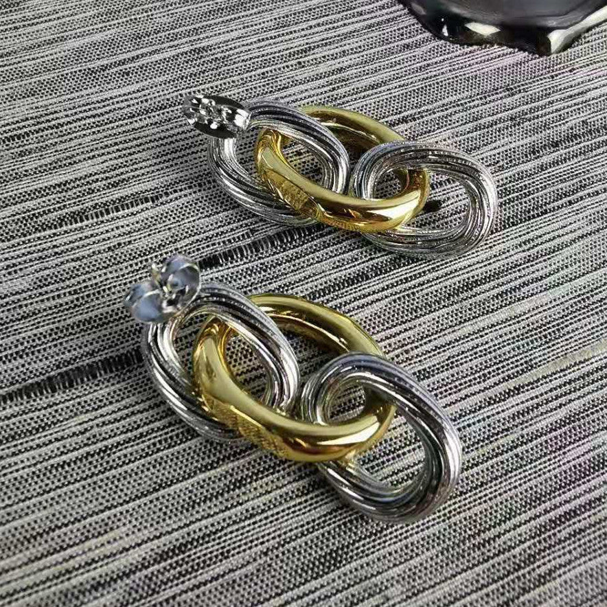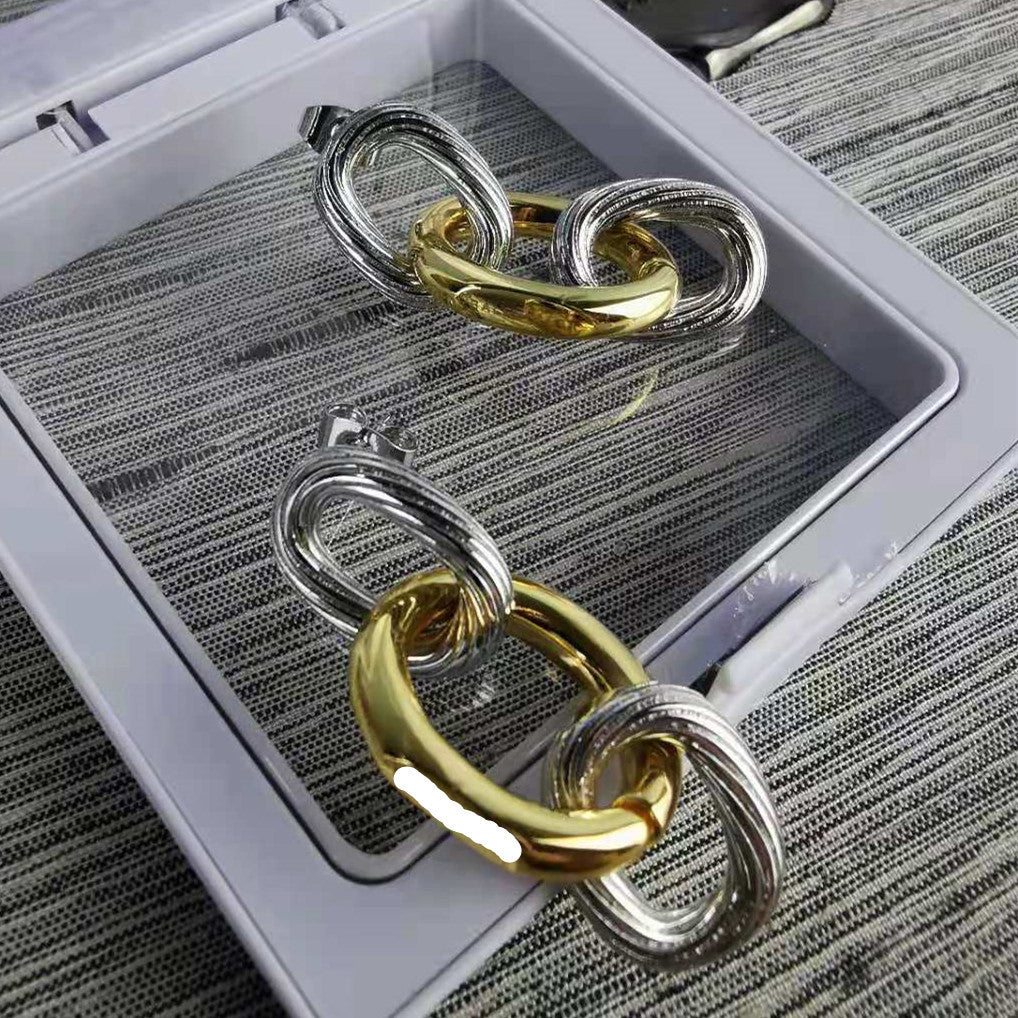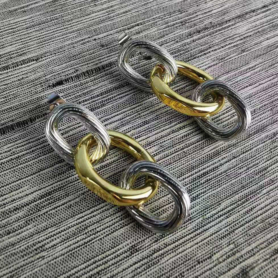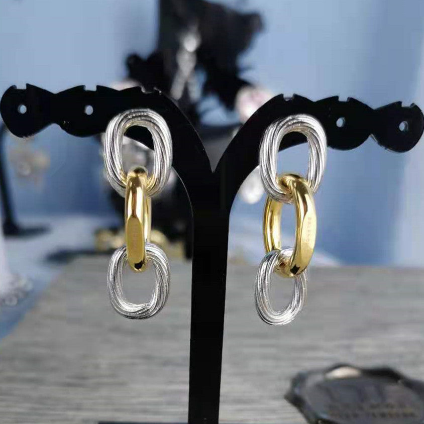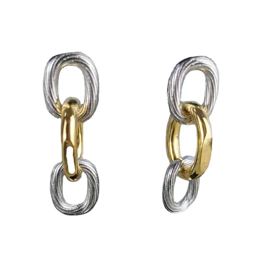 巴家新款链条耳环耳坠ins简约时尚复古拼色椭圆环三环扣耳钉女