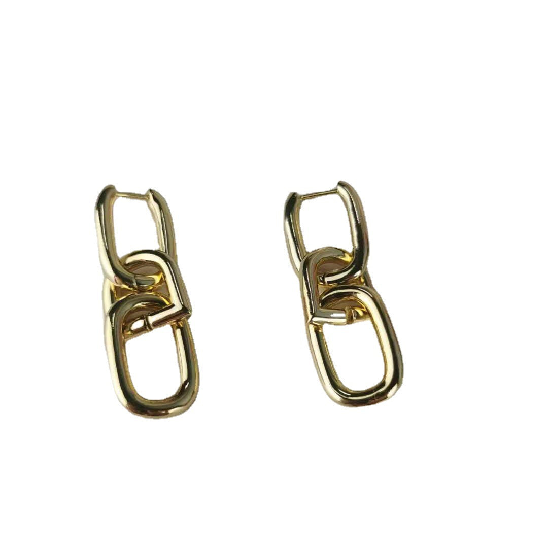 巴家欧美新款粗链条节耳坠耳环气质百搭耳圈法式复古款耳饰女