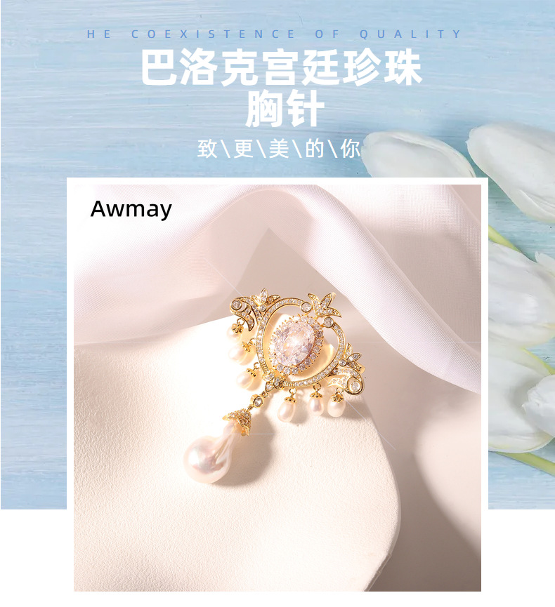 巴洛克宫廷珍珠胸针女高级感高端小众批发高档别针气质衣服西装