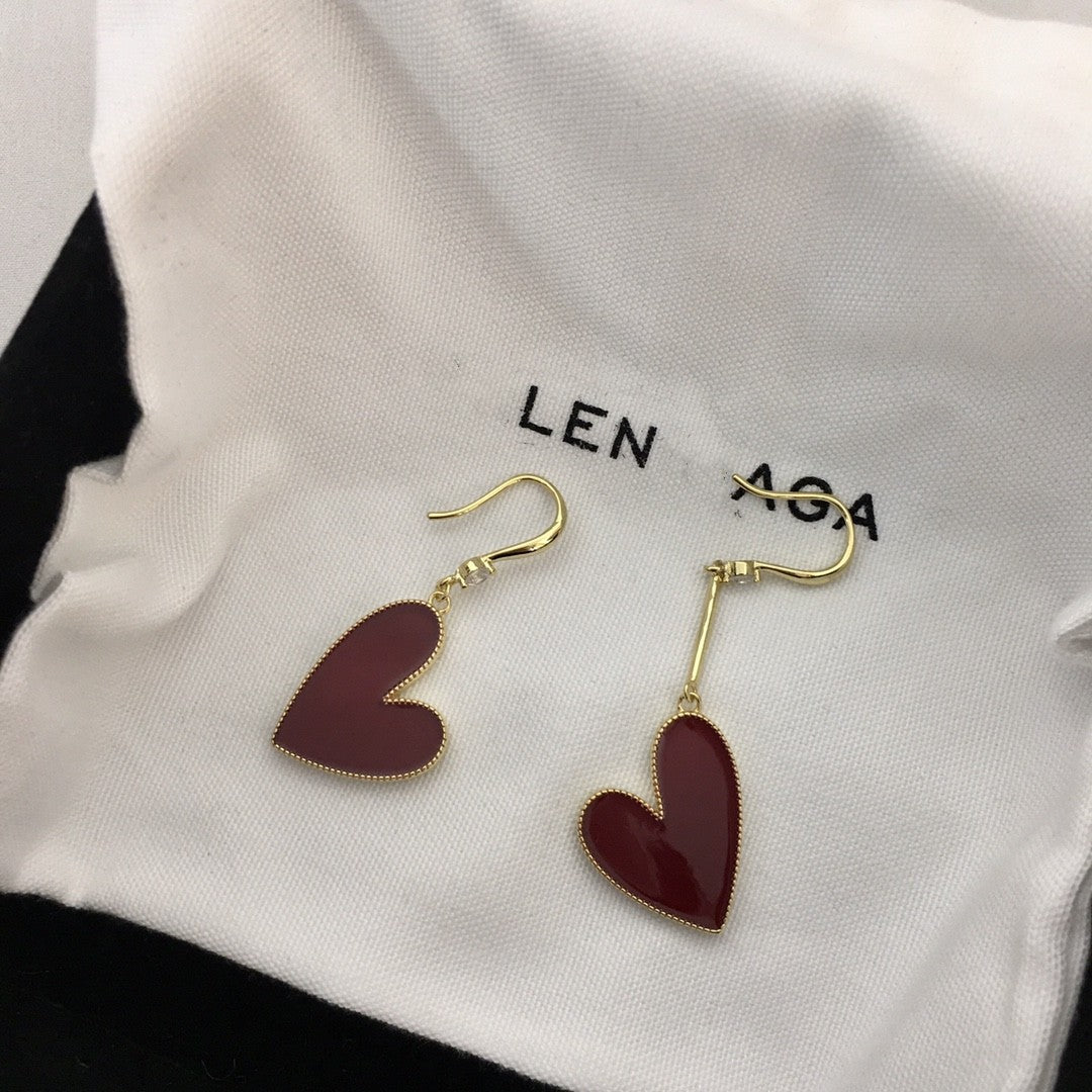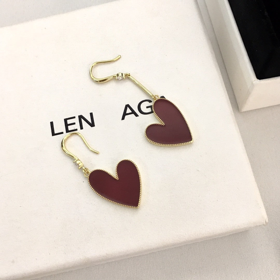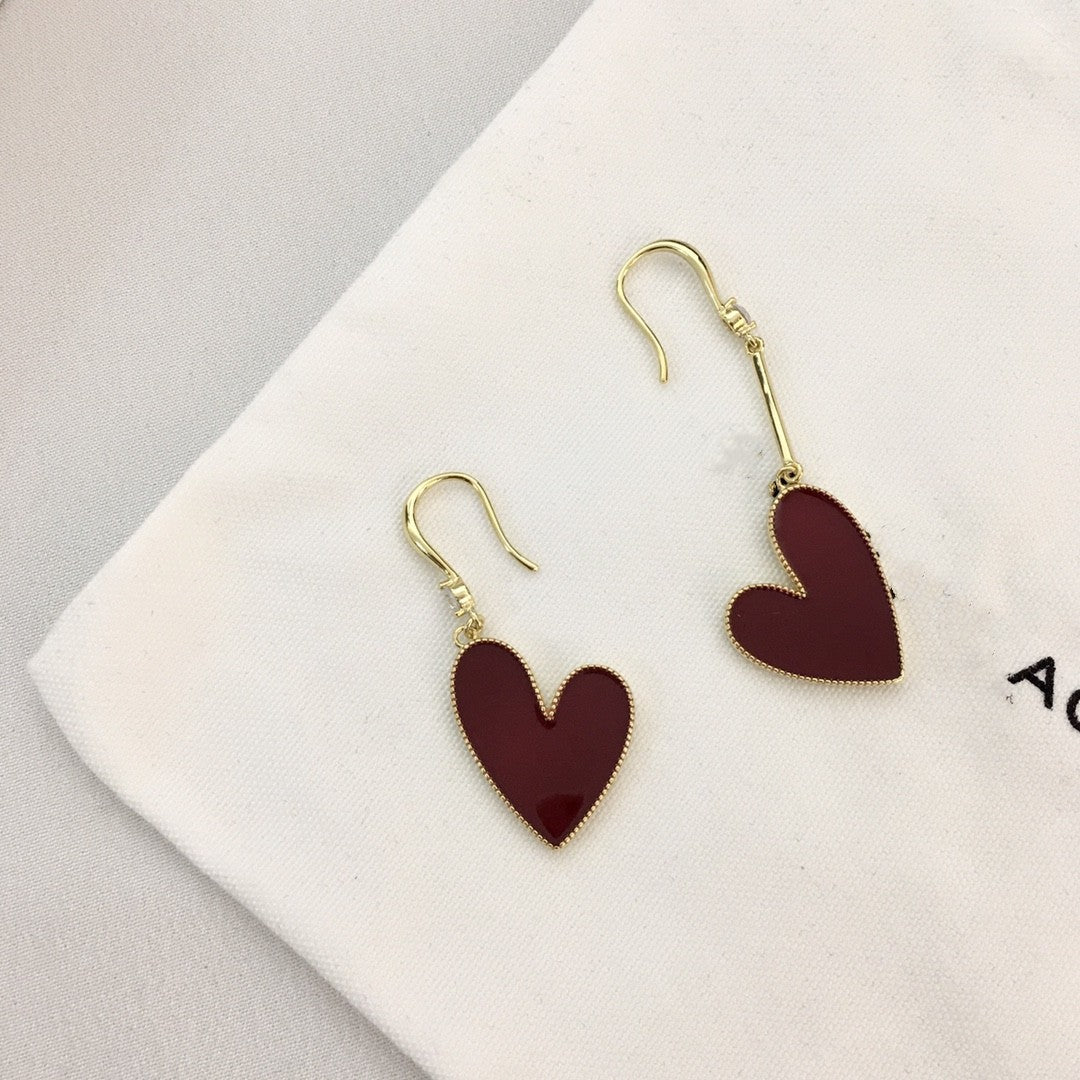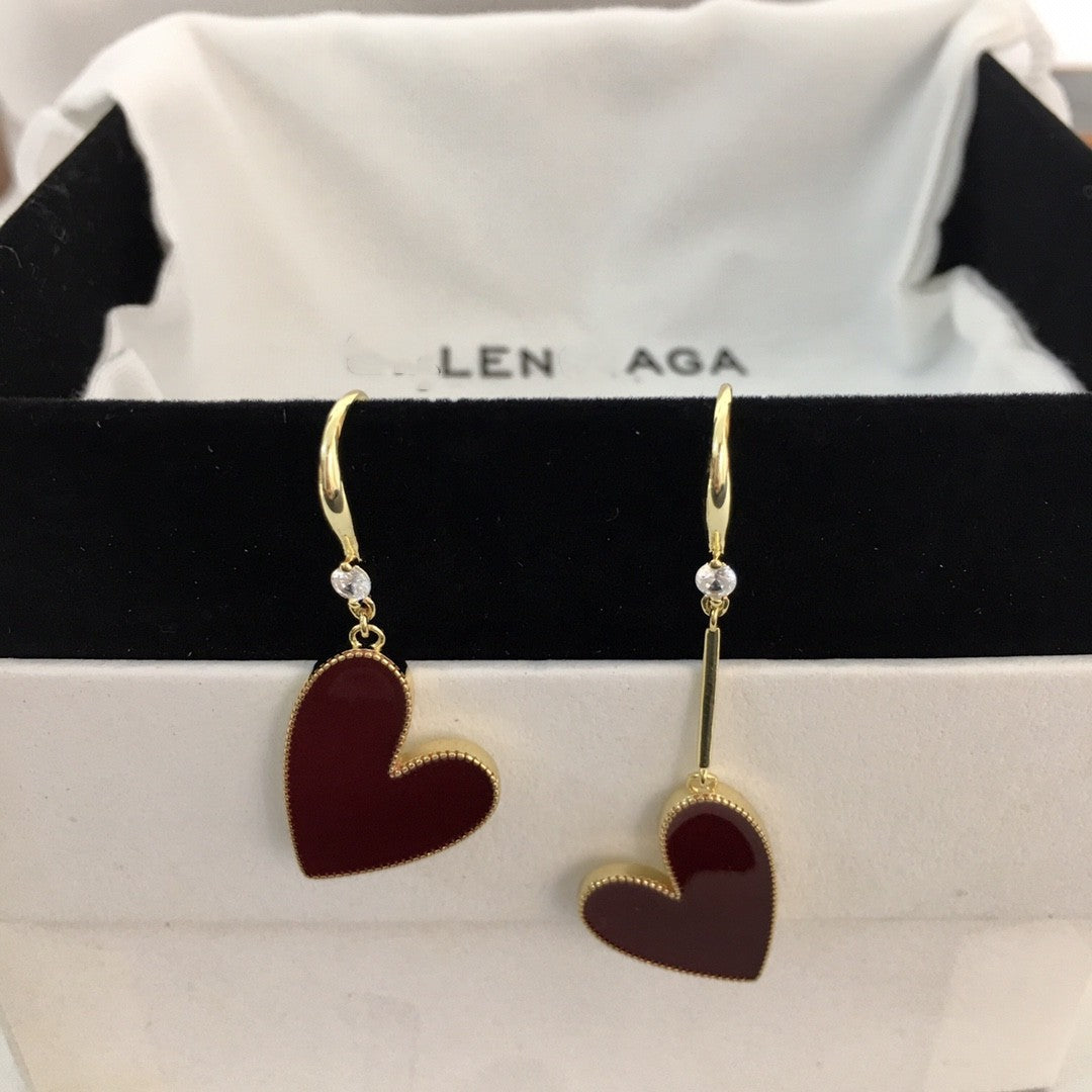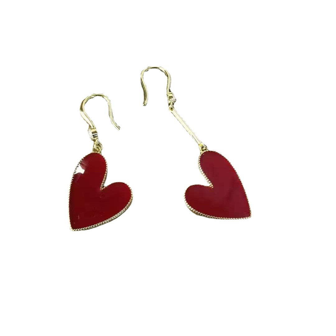 巴黎家新款红色桃心不对称耳钩爱心滴胶耳环甜美气质INS风高级
