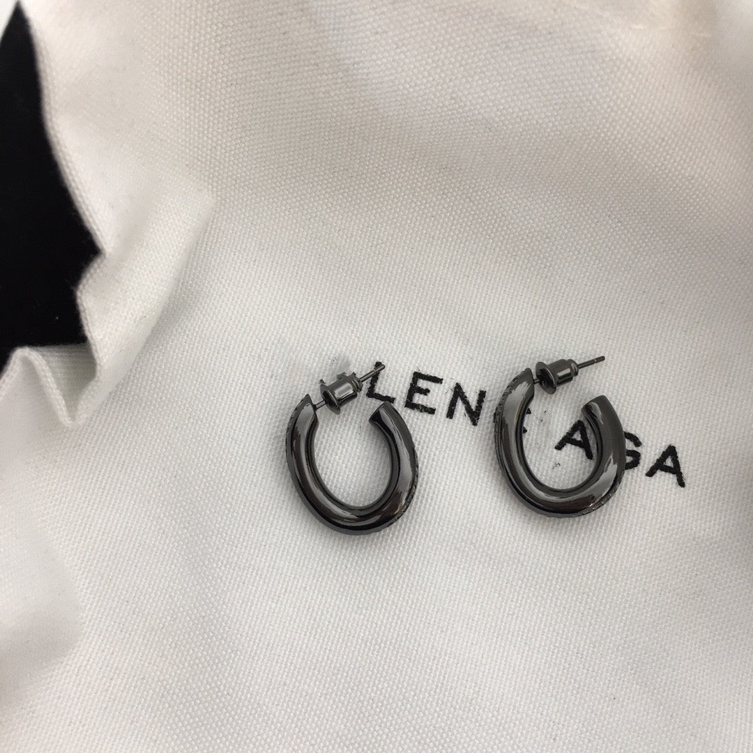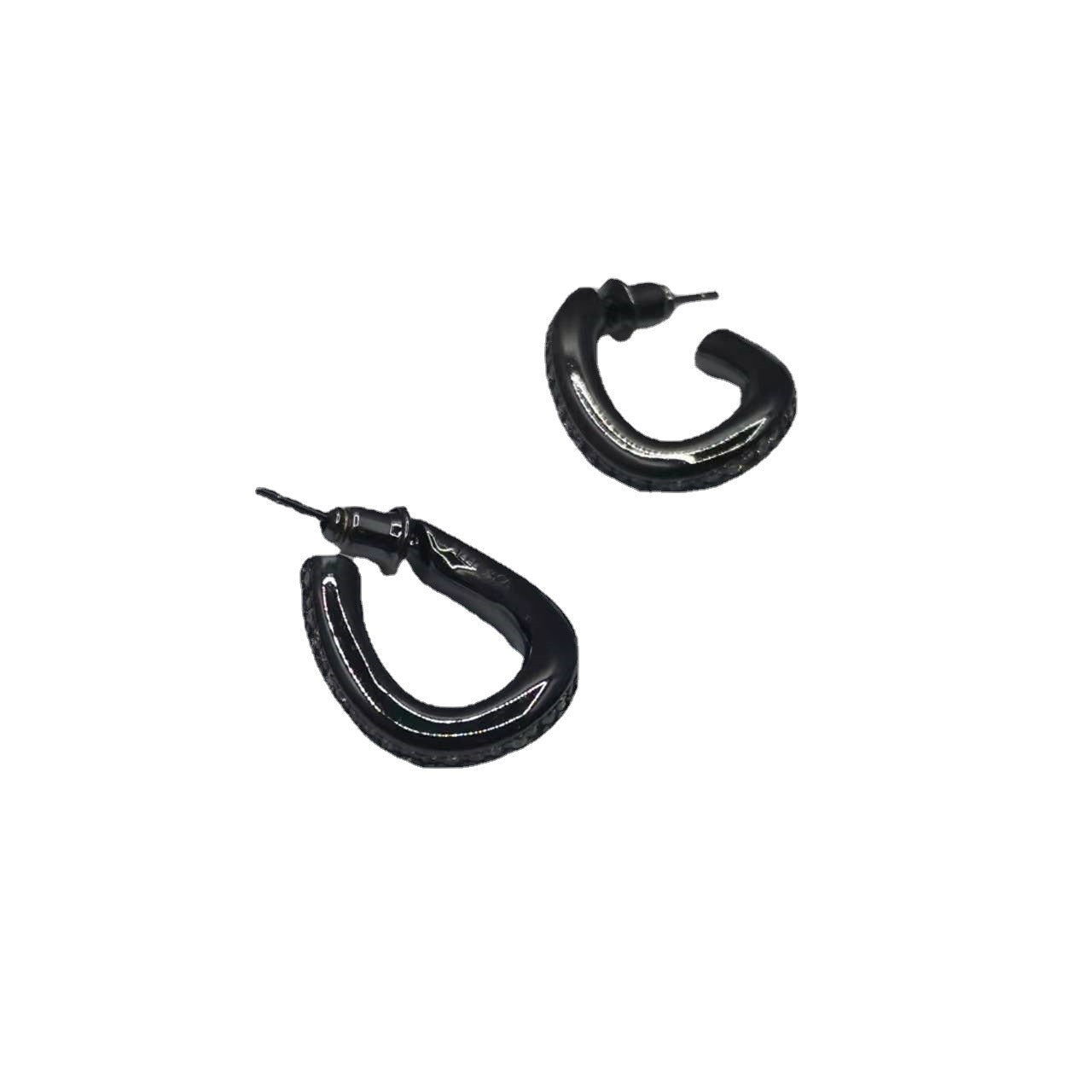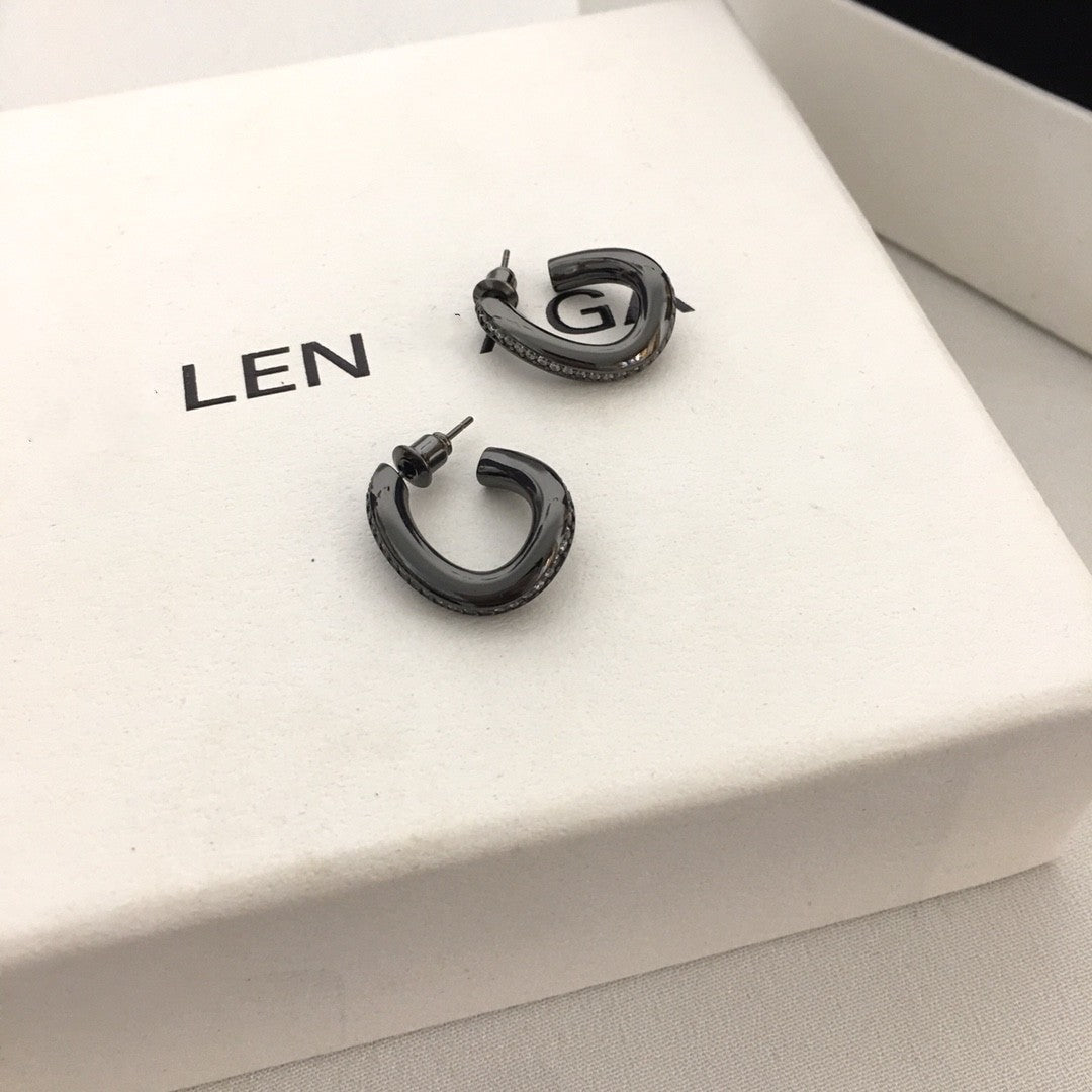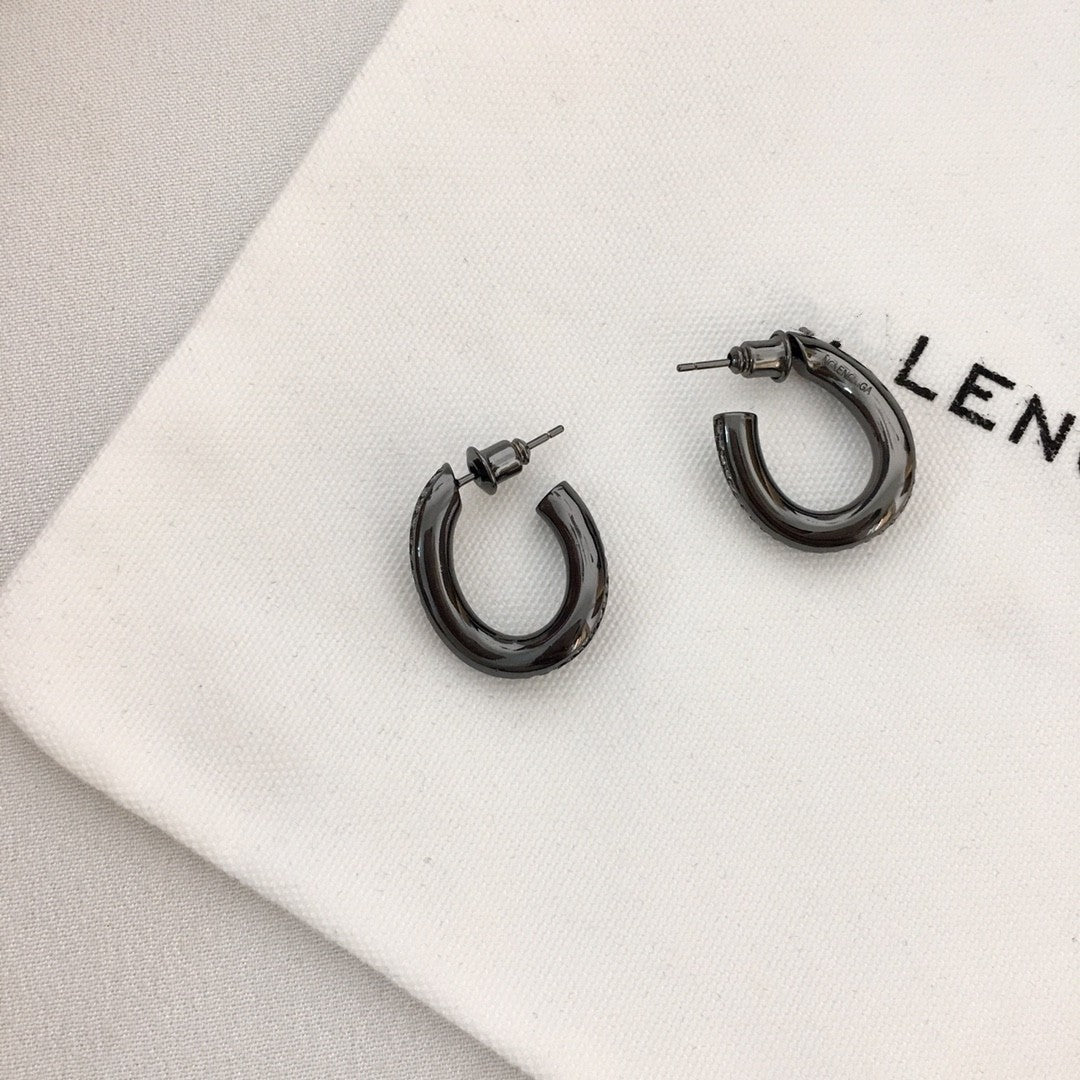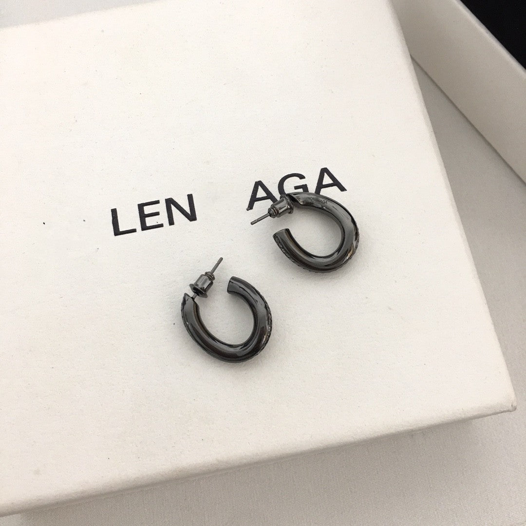 巴黎家21新款BB枪黑色U形不规则耳钉女高级感气质镶钻几何形耳环