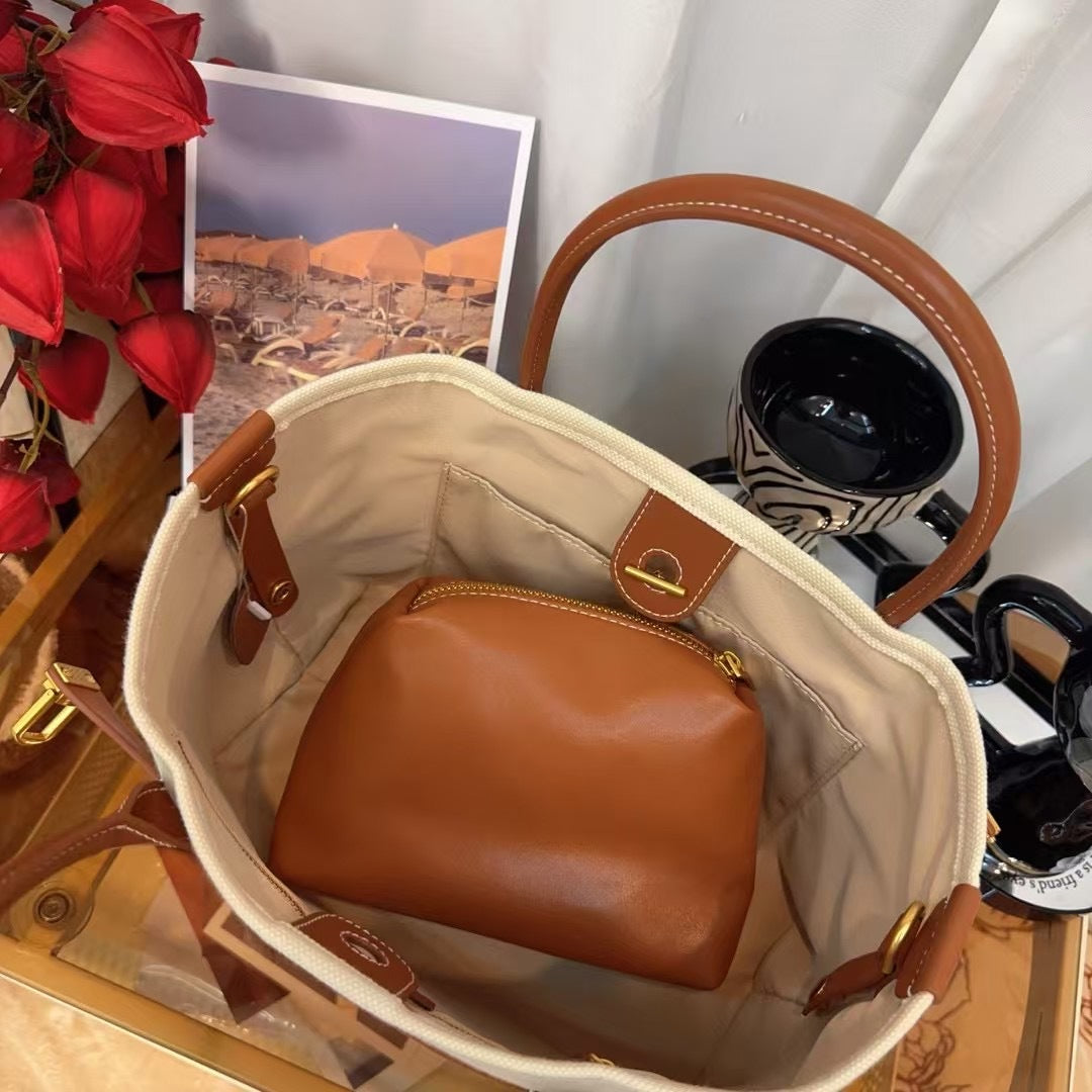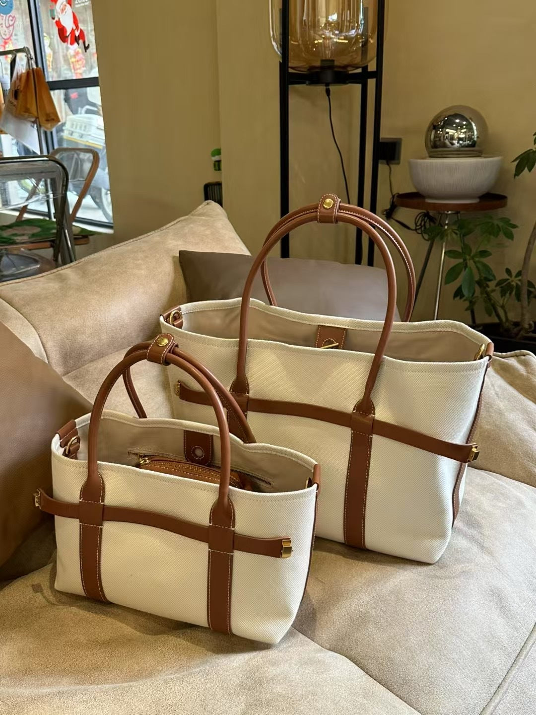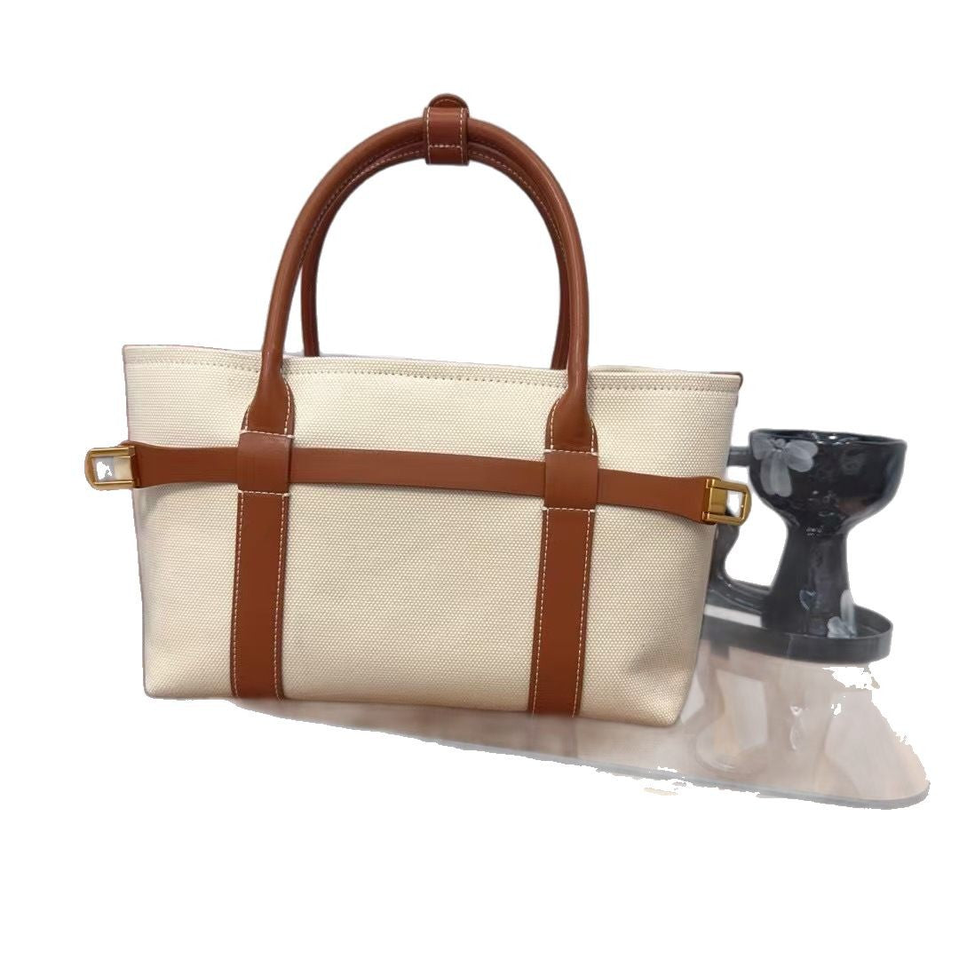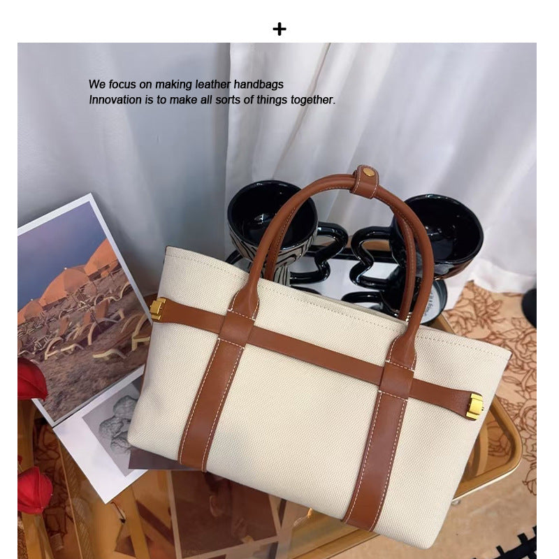 帆布托特包包女2025新款高级感小众设计撞色手提包大容量通勤百搭