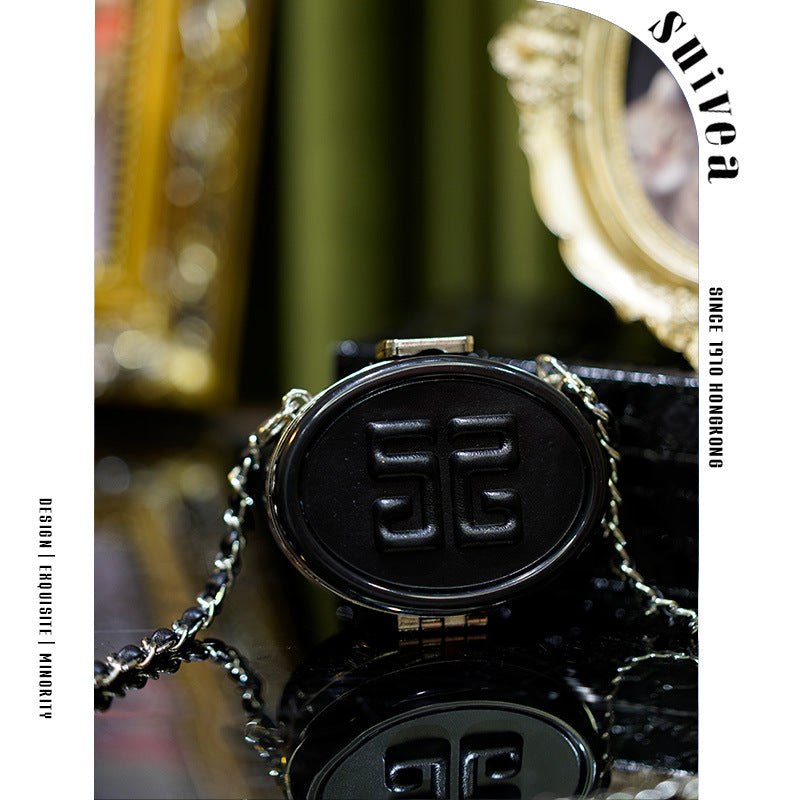 带镜子化妆盒口红包简约斜跨迷你小包个性链条百搭 ins少女唇膏盒