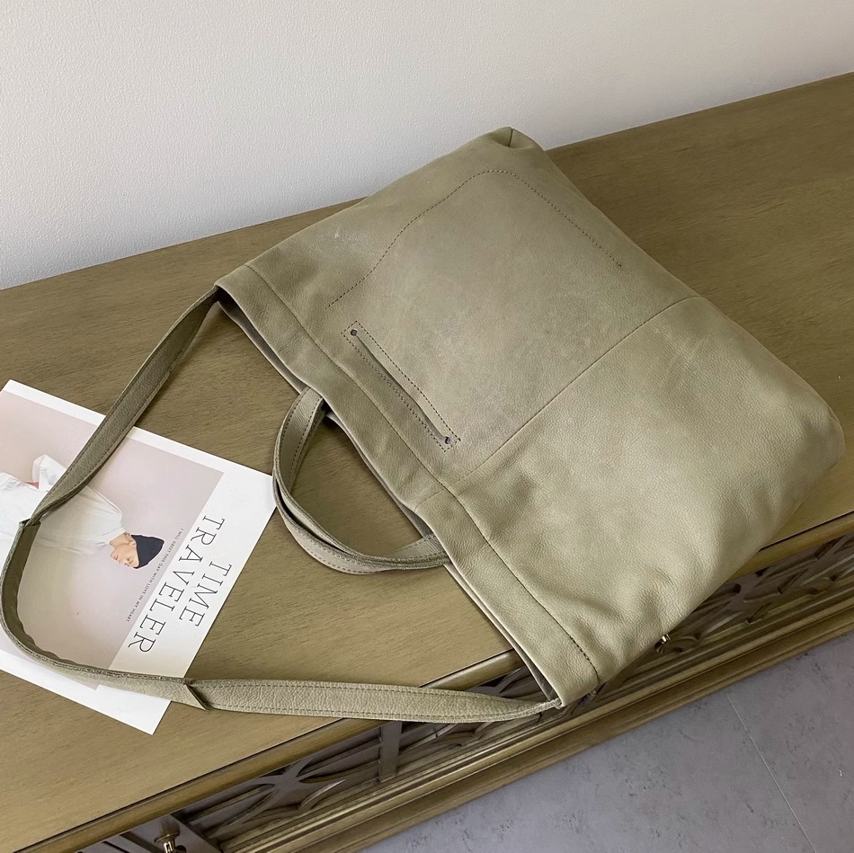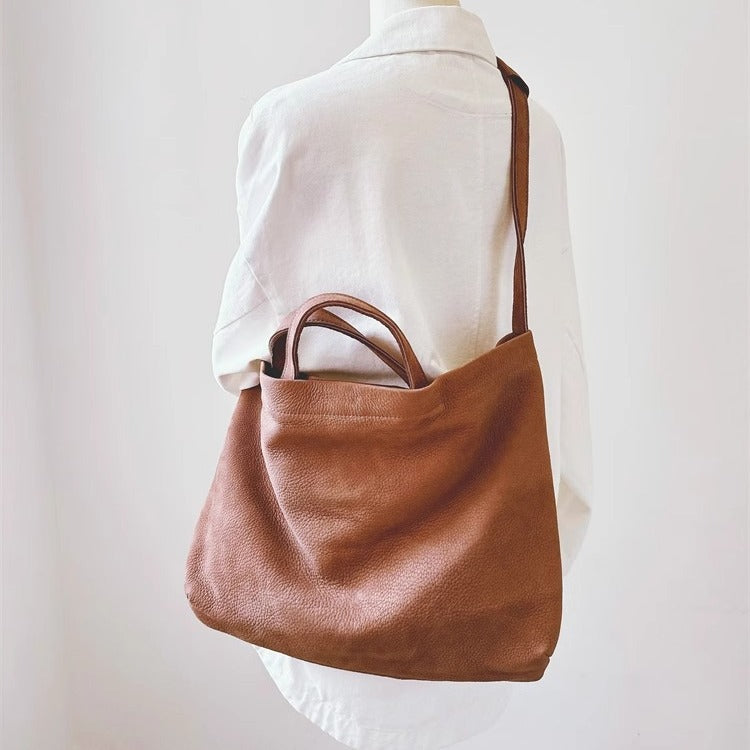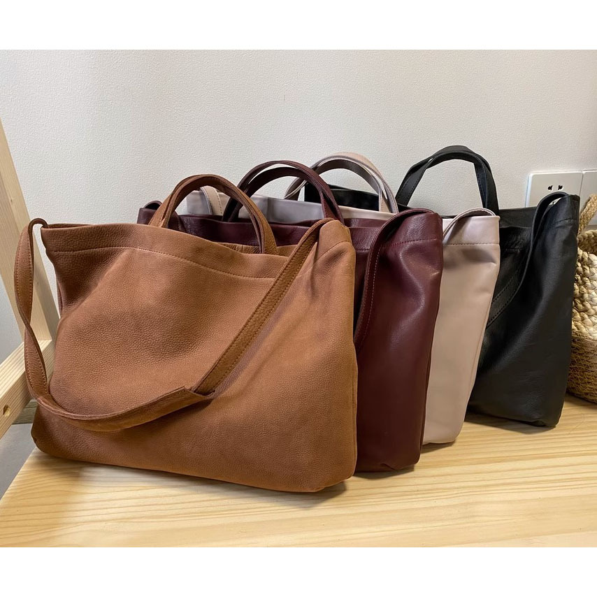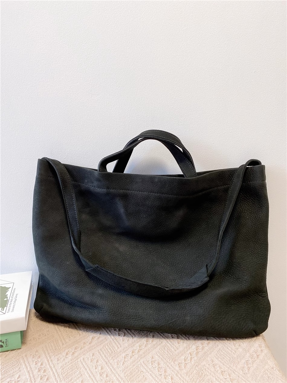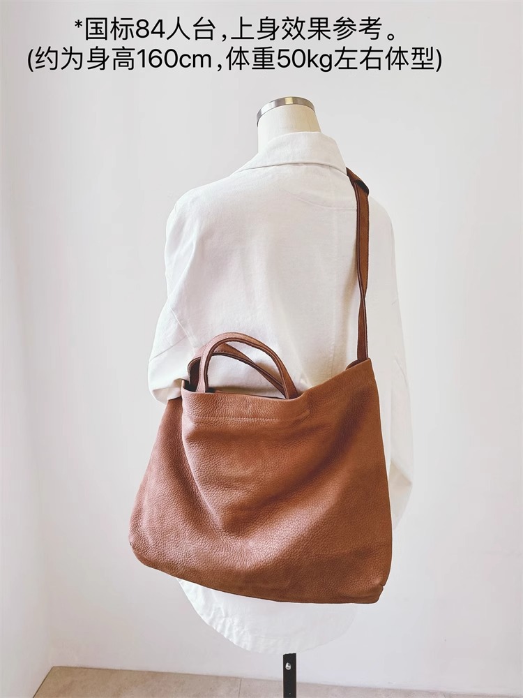 慵懒风头层牛皮大包女托特软皮单肩包女包手提购物袋日系复古直播