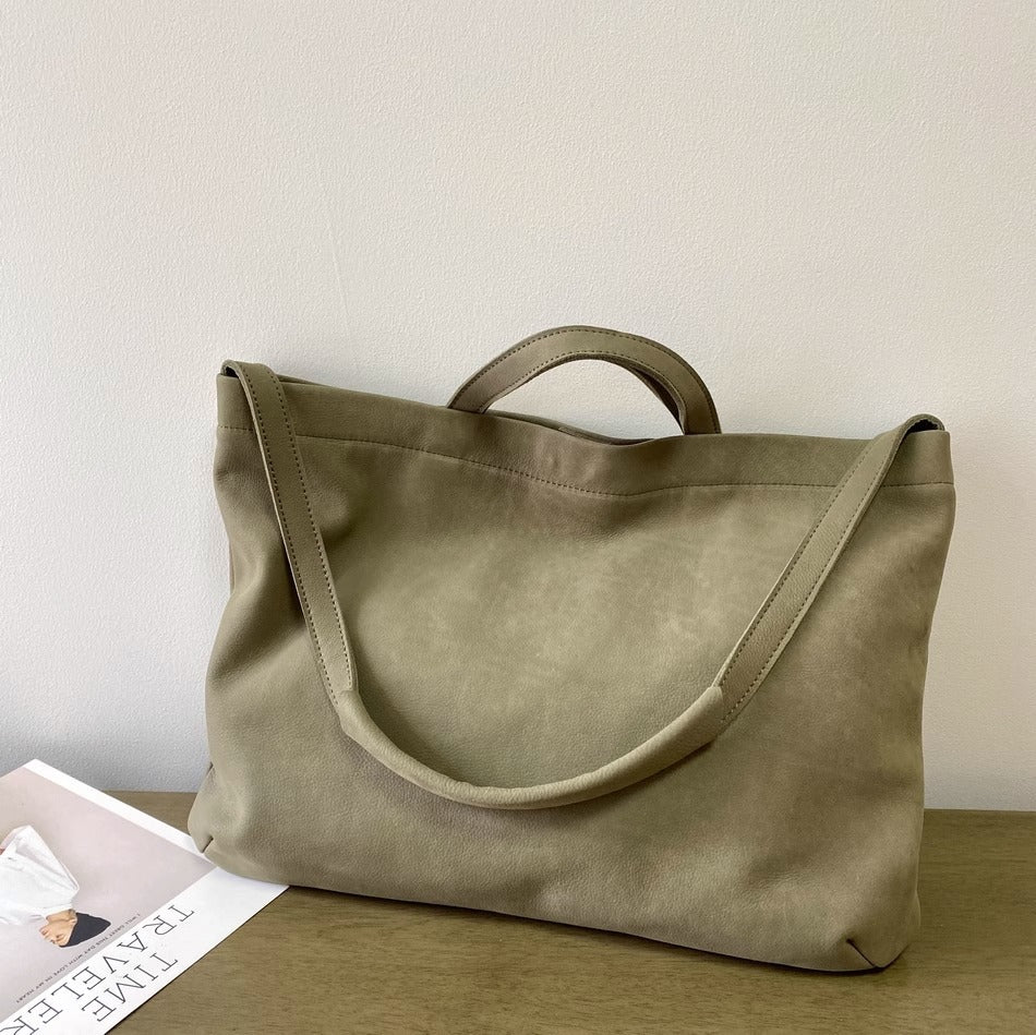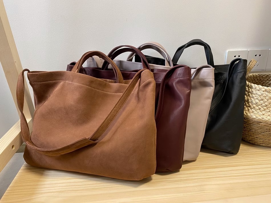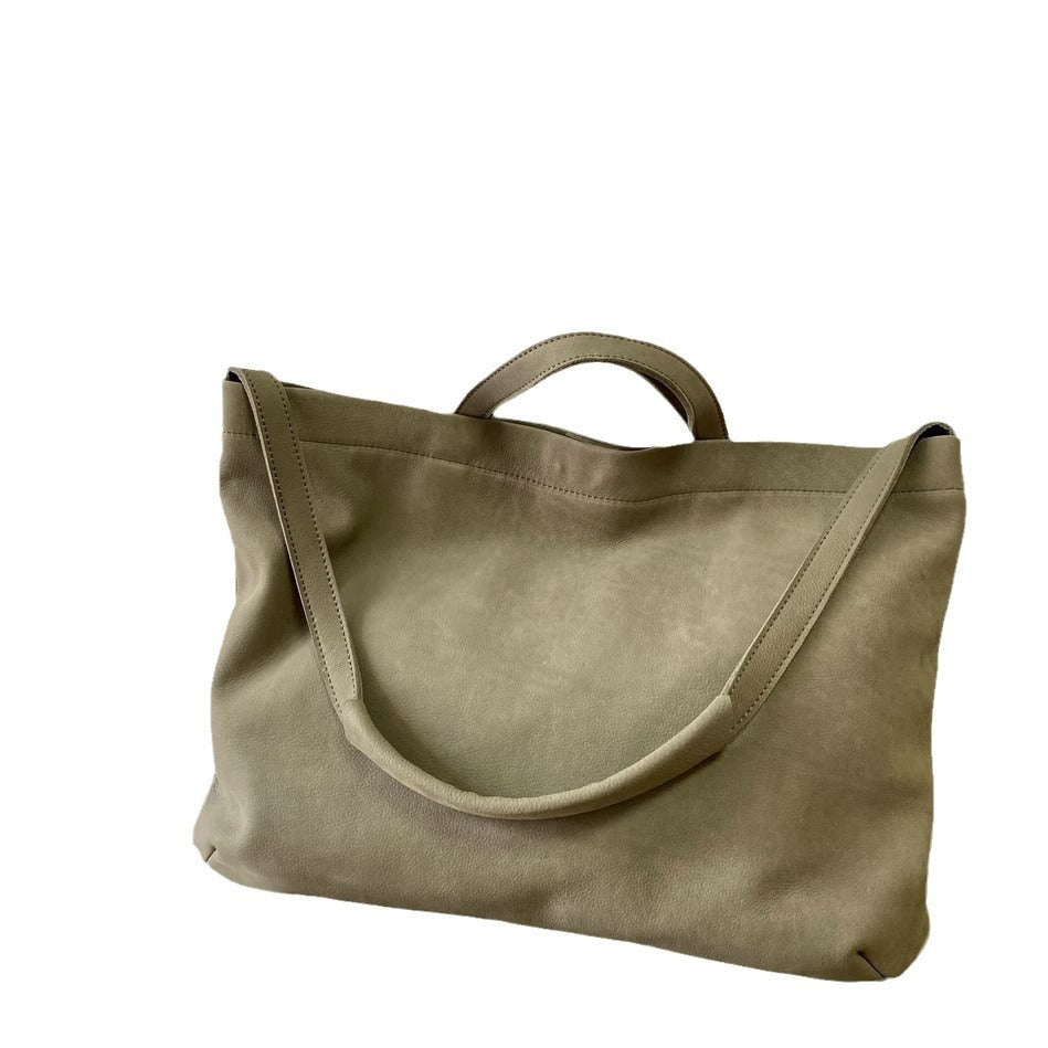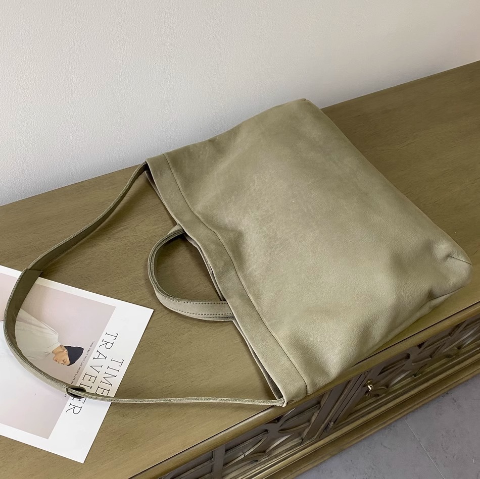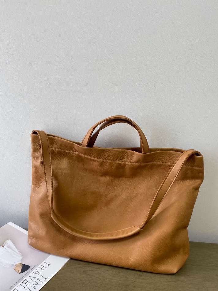 慵懒风头层牛皮大包女托特软皮单肩包女包手提购物袋日系复古直播