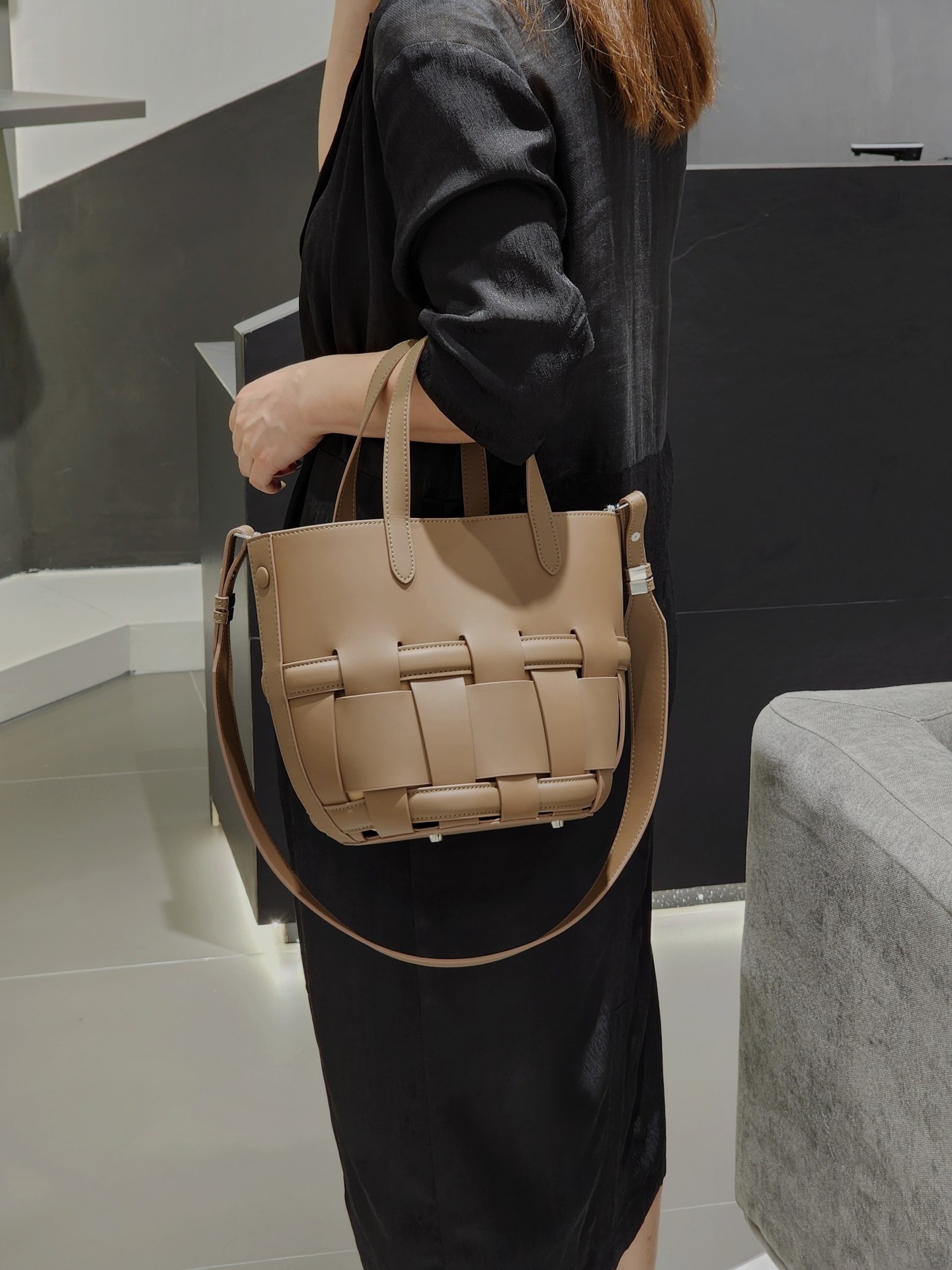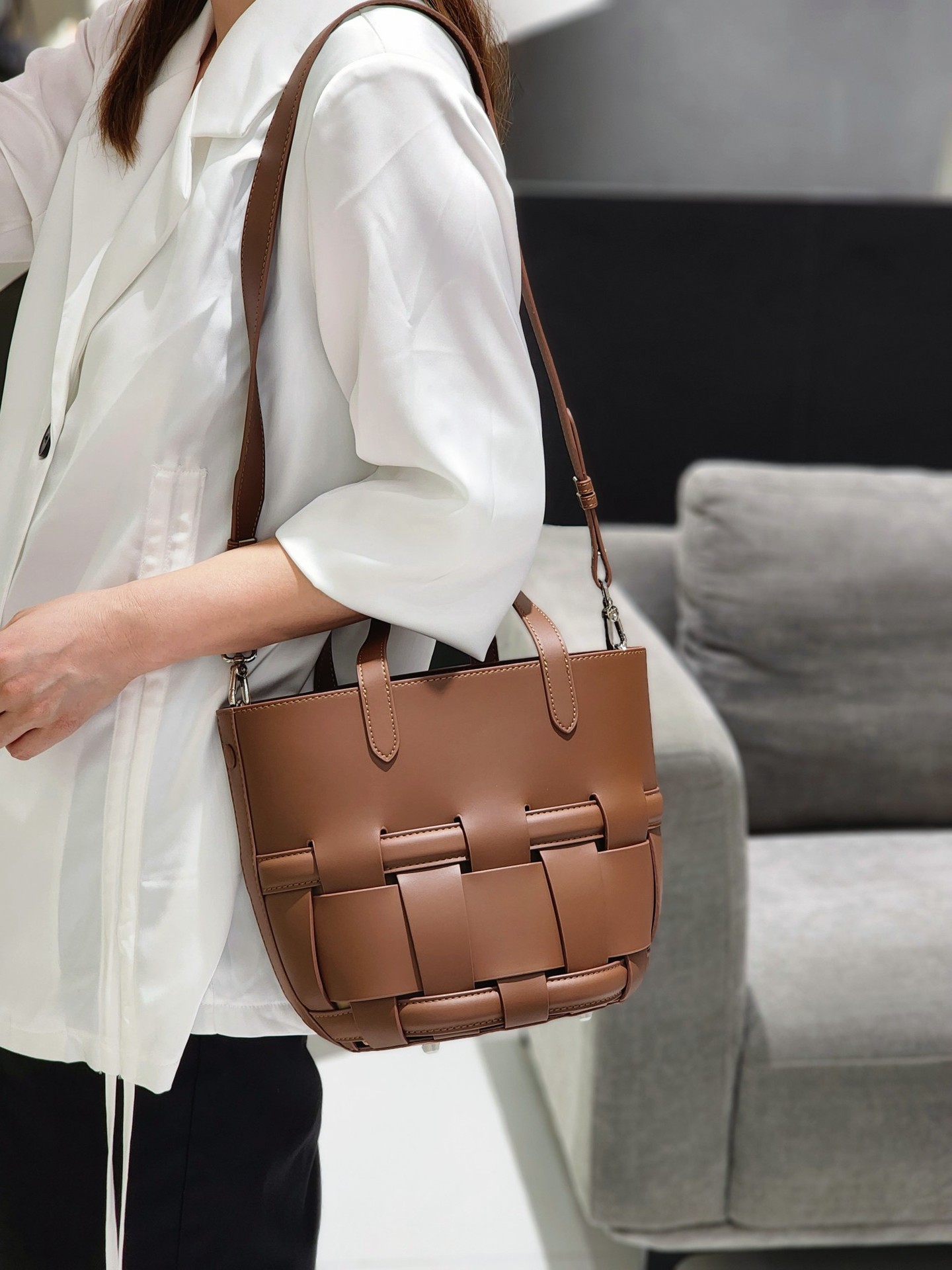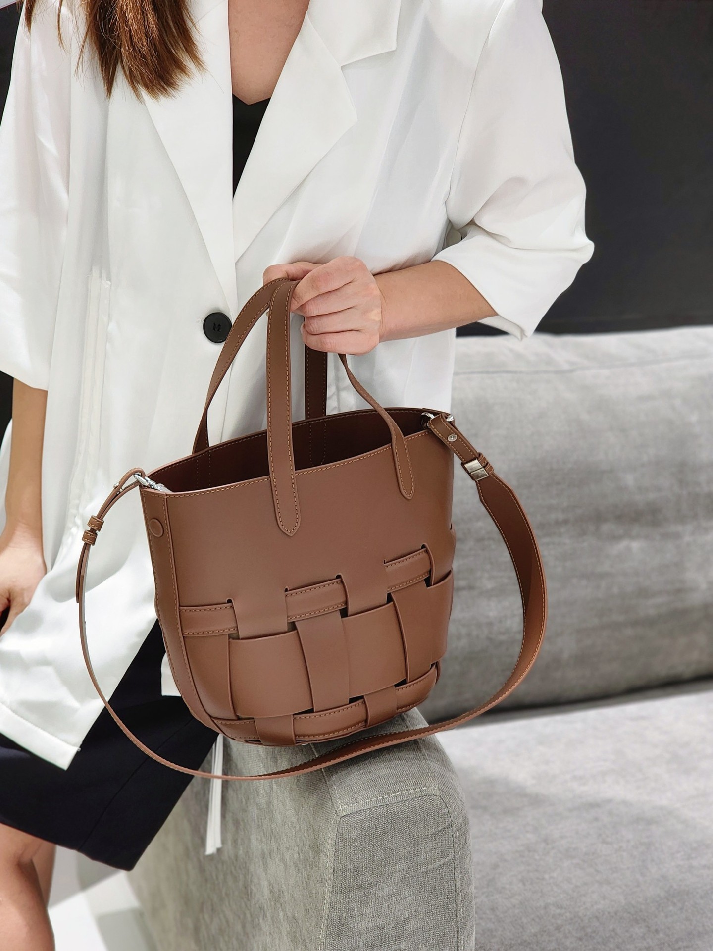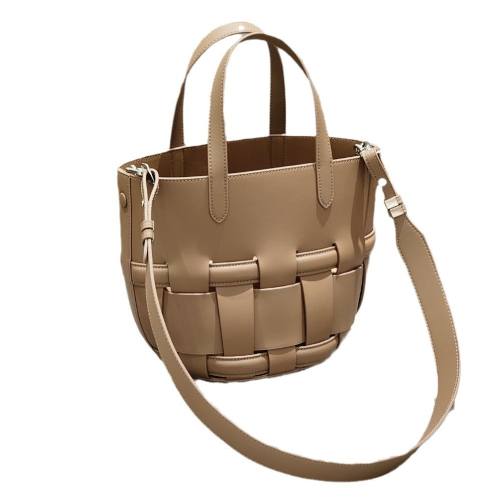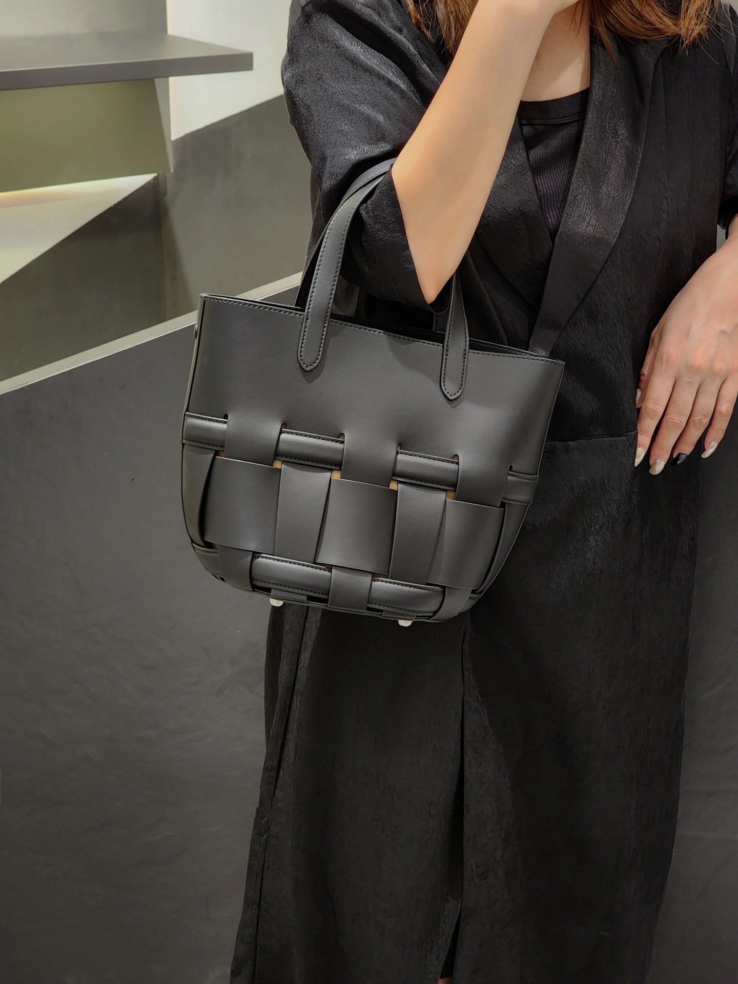 手工编织牛皮托特包时尚镂空手提包大容量单肩包女包外贸一件代发