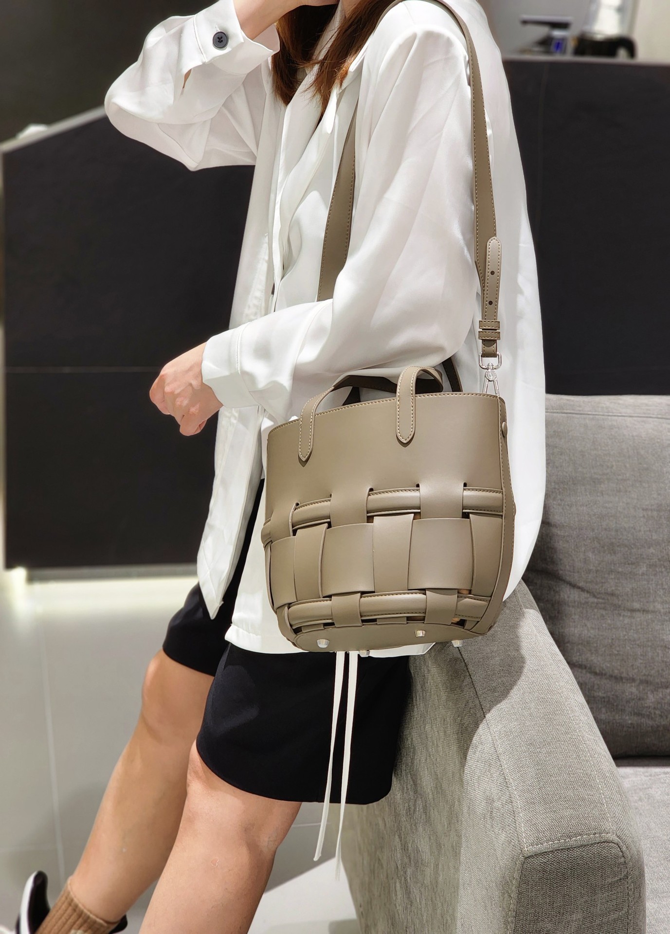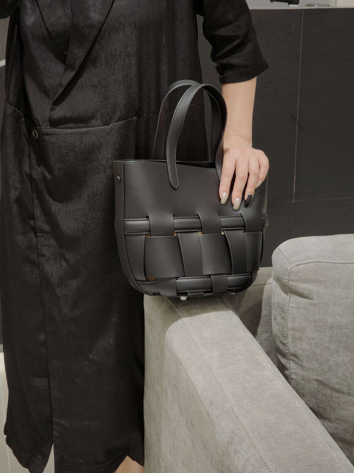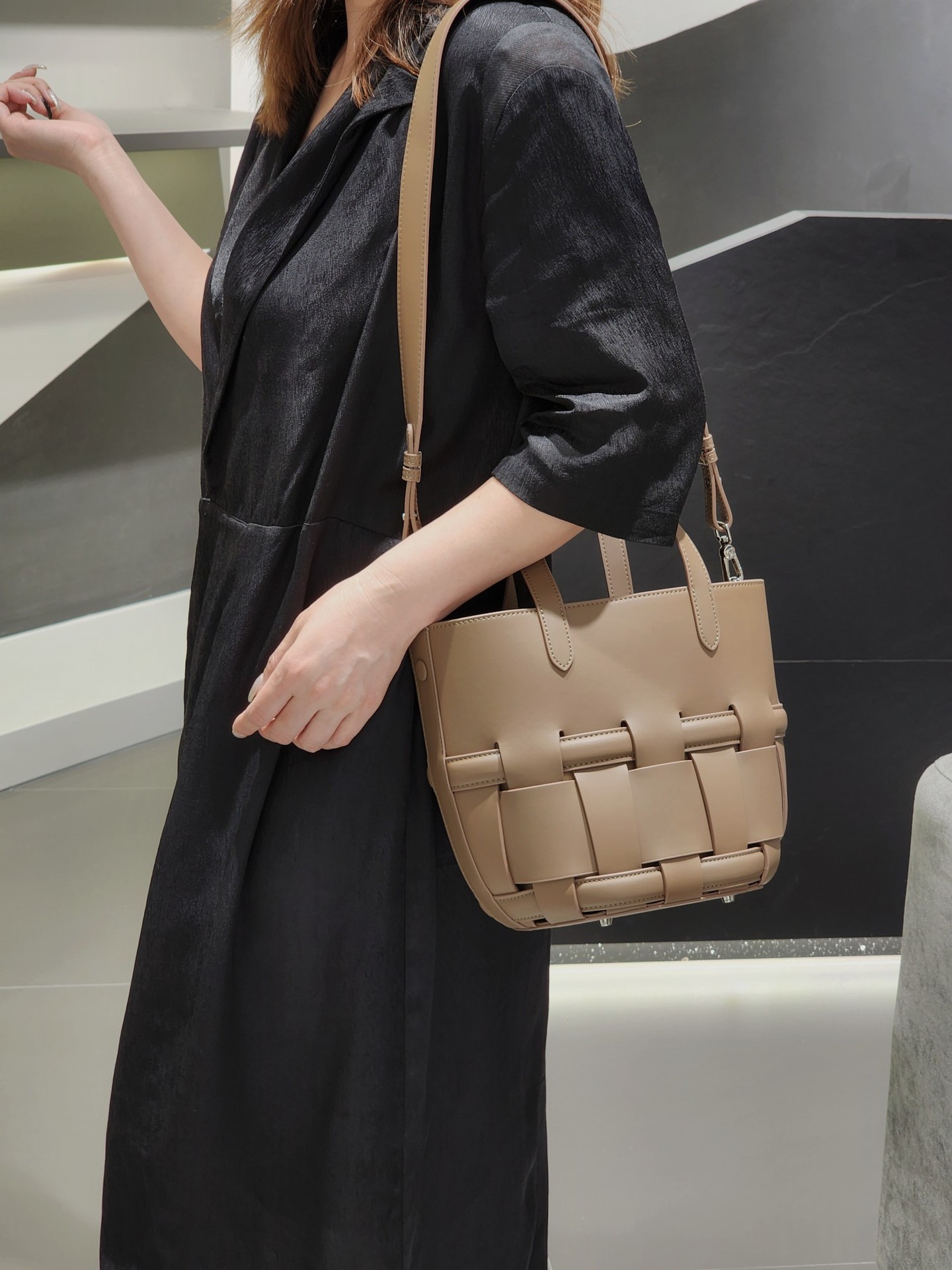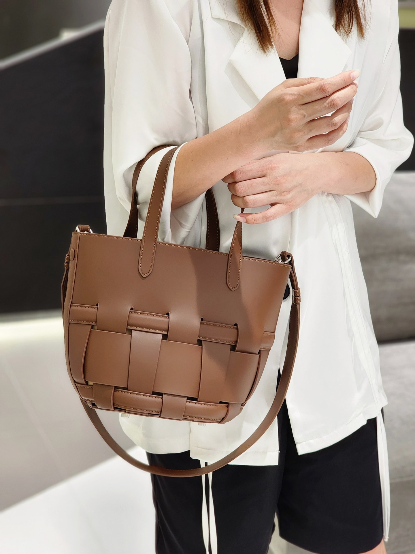 手工编织牛皮托特包时尚镂空手提包大容量单肩包女包外贸一件代发