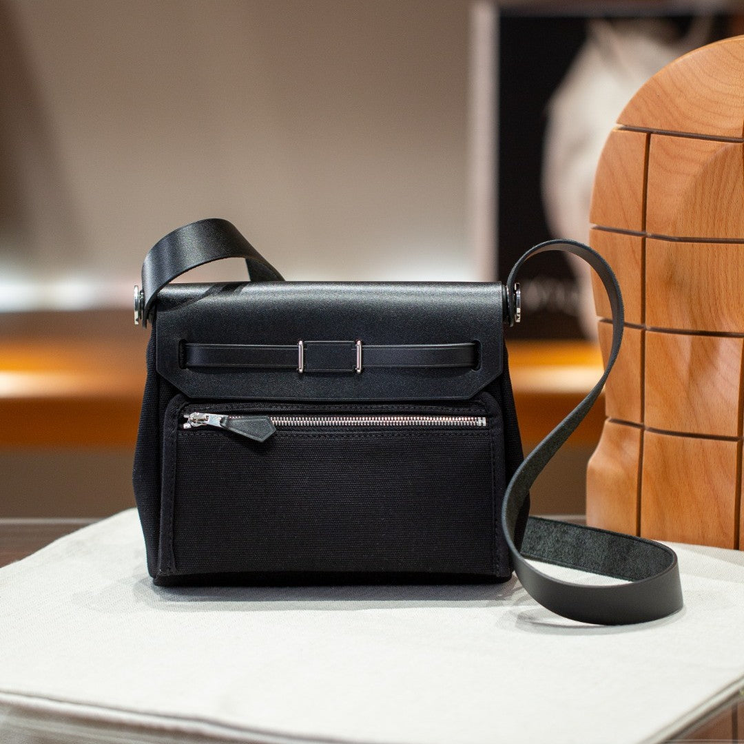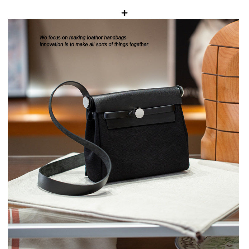 手工miniherbag真皮内缝凯莉包牛皮帆布拼色撞色手提包单肩斜挎包