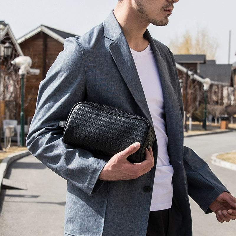 手拿包男2021新款编织男包韩版休闲真皮手抓包大容量牛皮男士手包